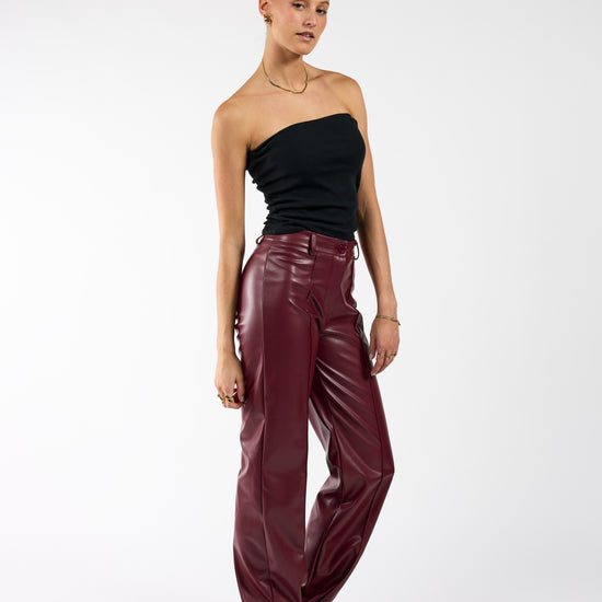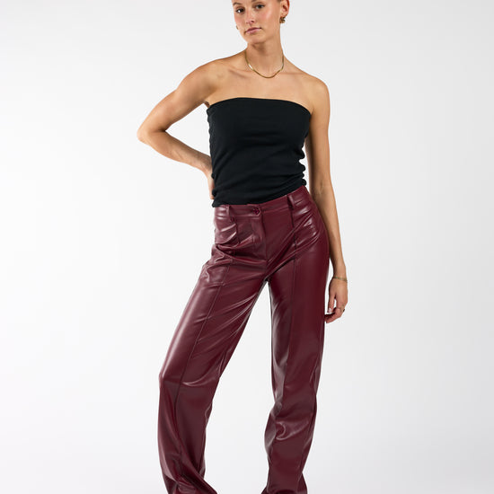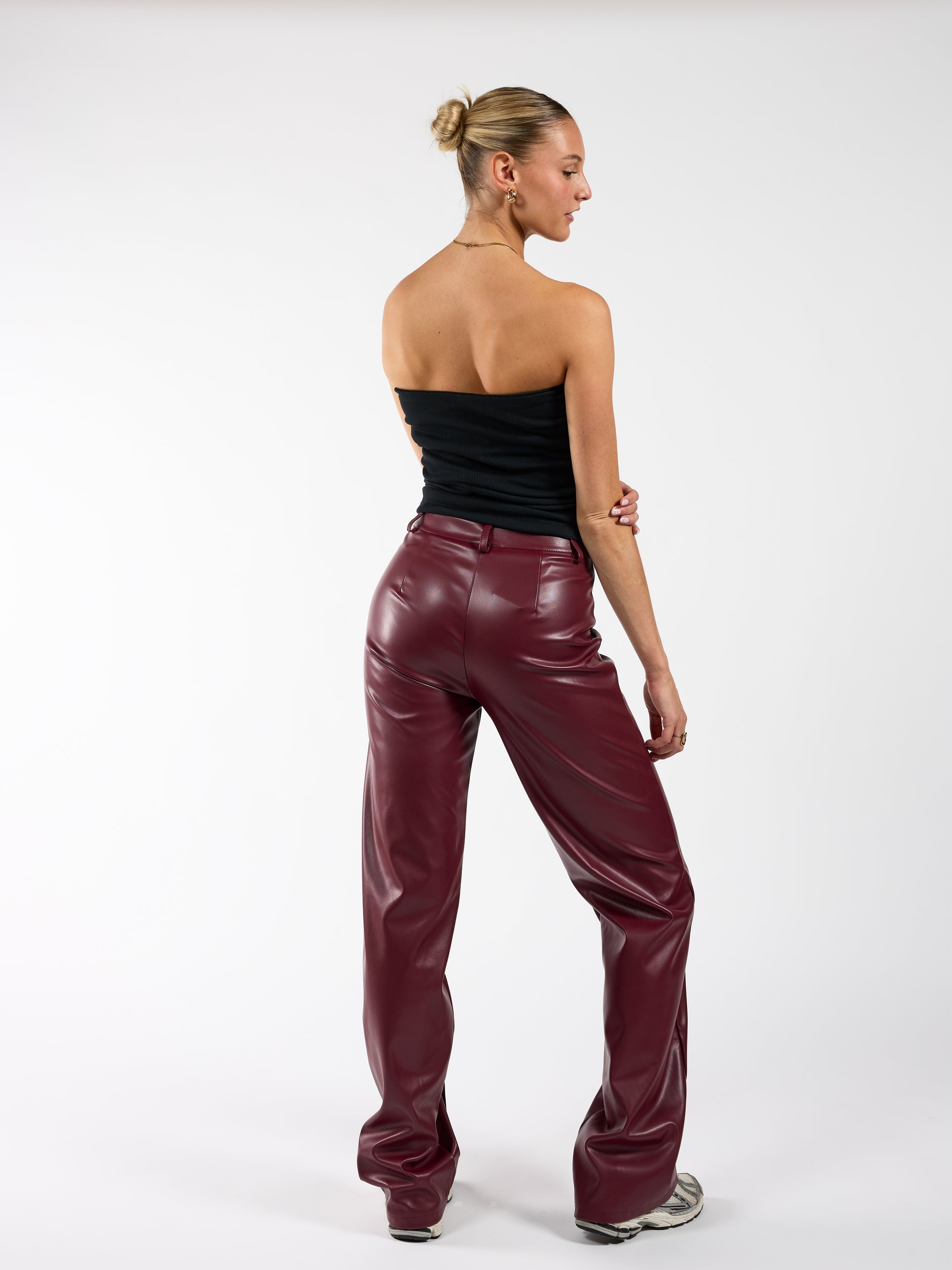 The perfect PU pants for tall girls between 1.75m and 2.00m. These straight-leg trousers have a clean look without pockets, a subtle press fold at the front and close with a zip and button. Thanks to the PU fabric, your outfit immediately gets a luxurious look and you can combine the trousers endlessly, whether you go for a casual look with sneakers or a chic look with heels. A true wardrobe essential that shouldn't be missing in your closet.
