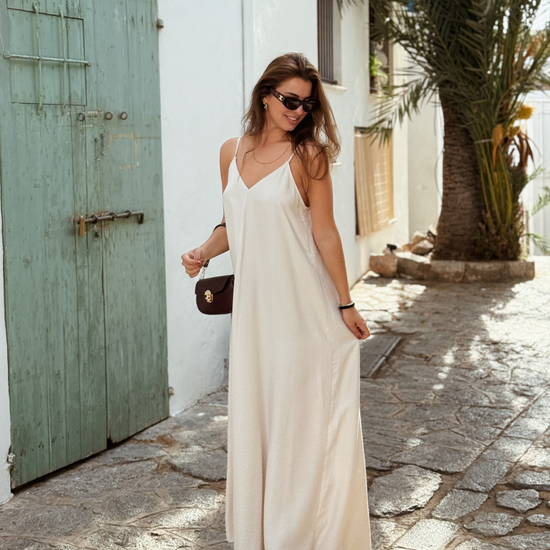 The Anna maxi dress immediately gives you the ultimate summer feeling. Elegant, airy, and perfect for tall girls who love a flowy, feminine look. The dress is extra long and specifically designed for tall girls, so it fits just right.