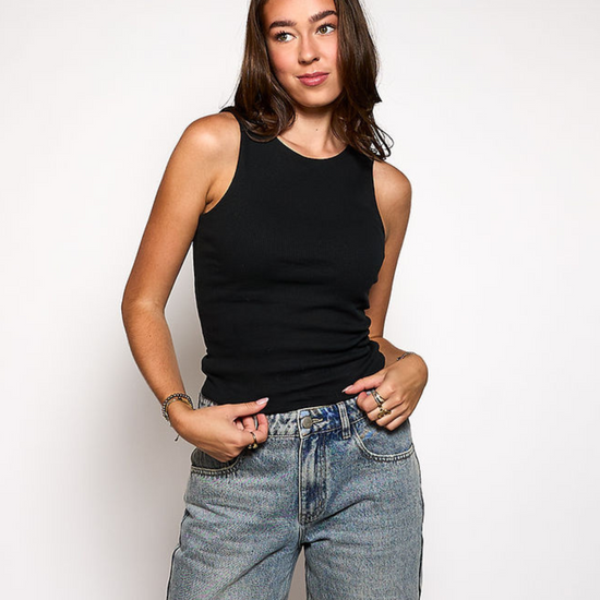 This basic rib tank top Noa is the perfect basic! The tops have an extra layer on the inside so they are not see-through and can also be worn bra-less. In addition, they are elastic and fit wonderfully!