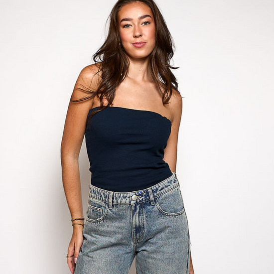 This basic rib tube top is the perfect basic! The tops have an extra layer on the inside so they are not see-through and can also be worn bra-less. In addition, they are elastic and fit wonderfully! The top is available in several colors.