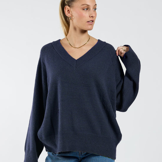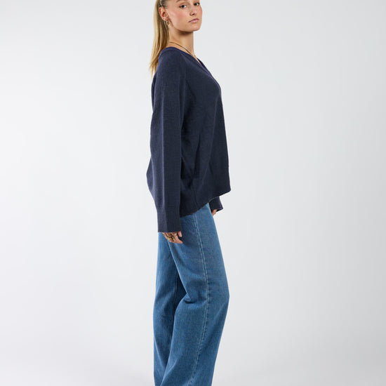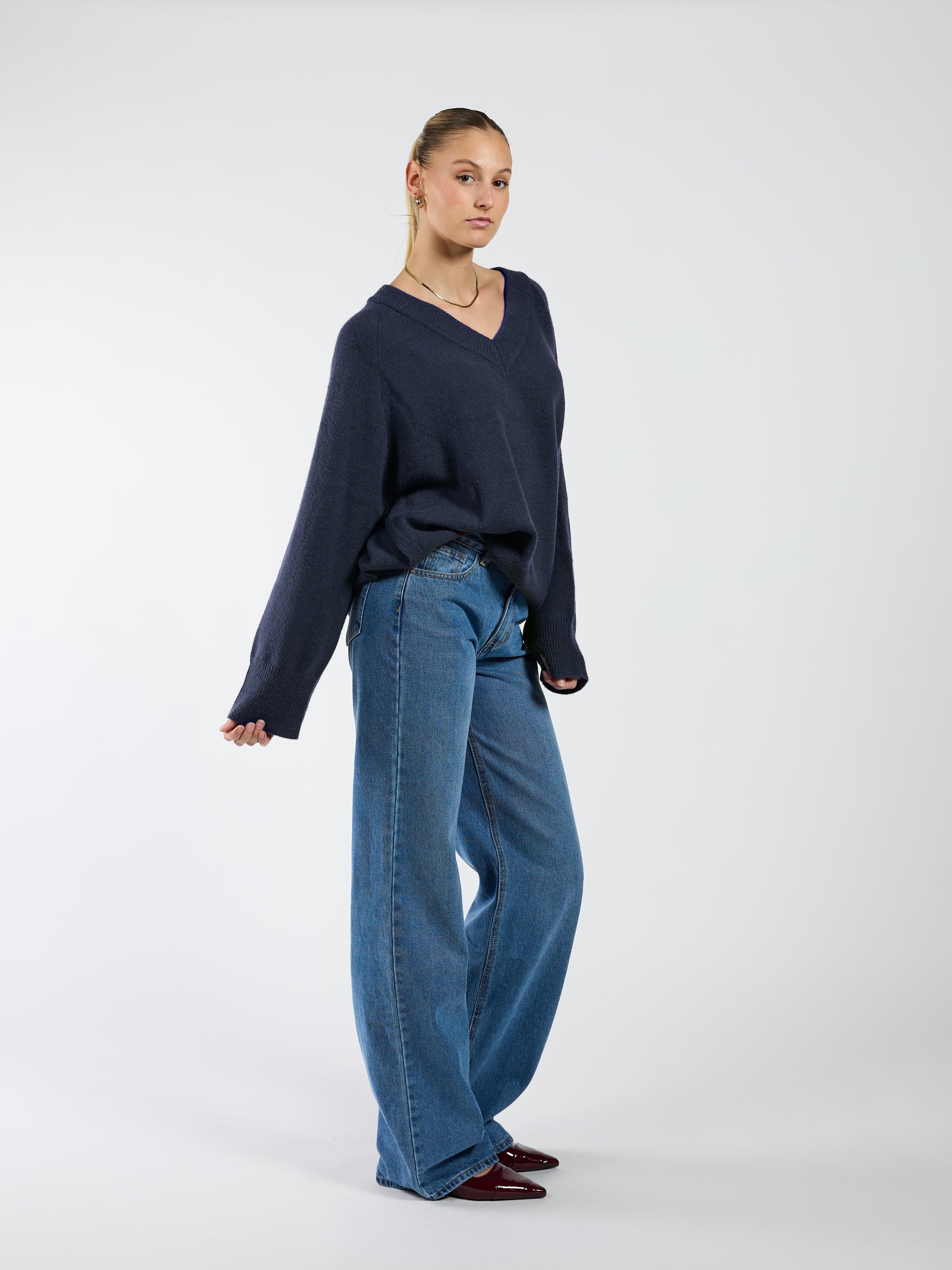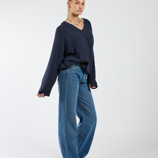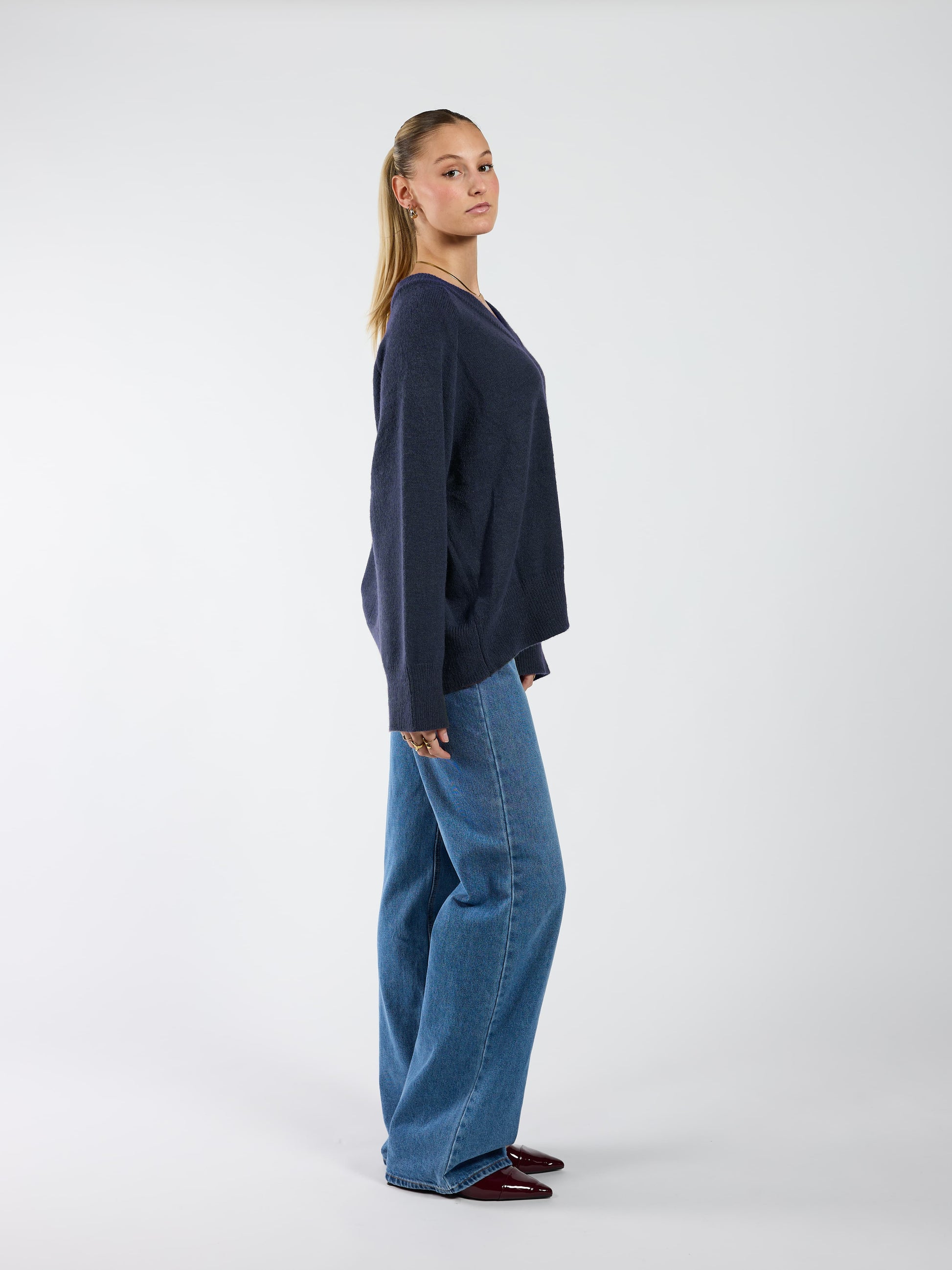 Your new favorite knitwear, but with a feminine V-neck. The Chloé V-Knit in navy is a true fall must-have.