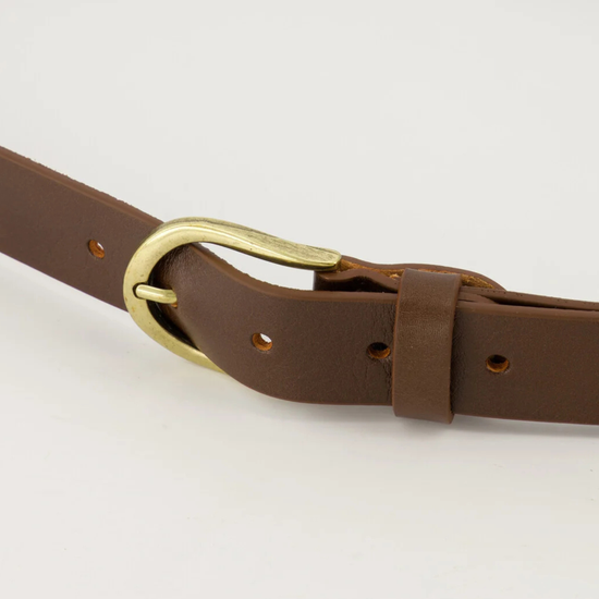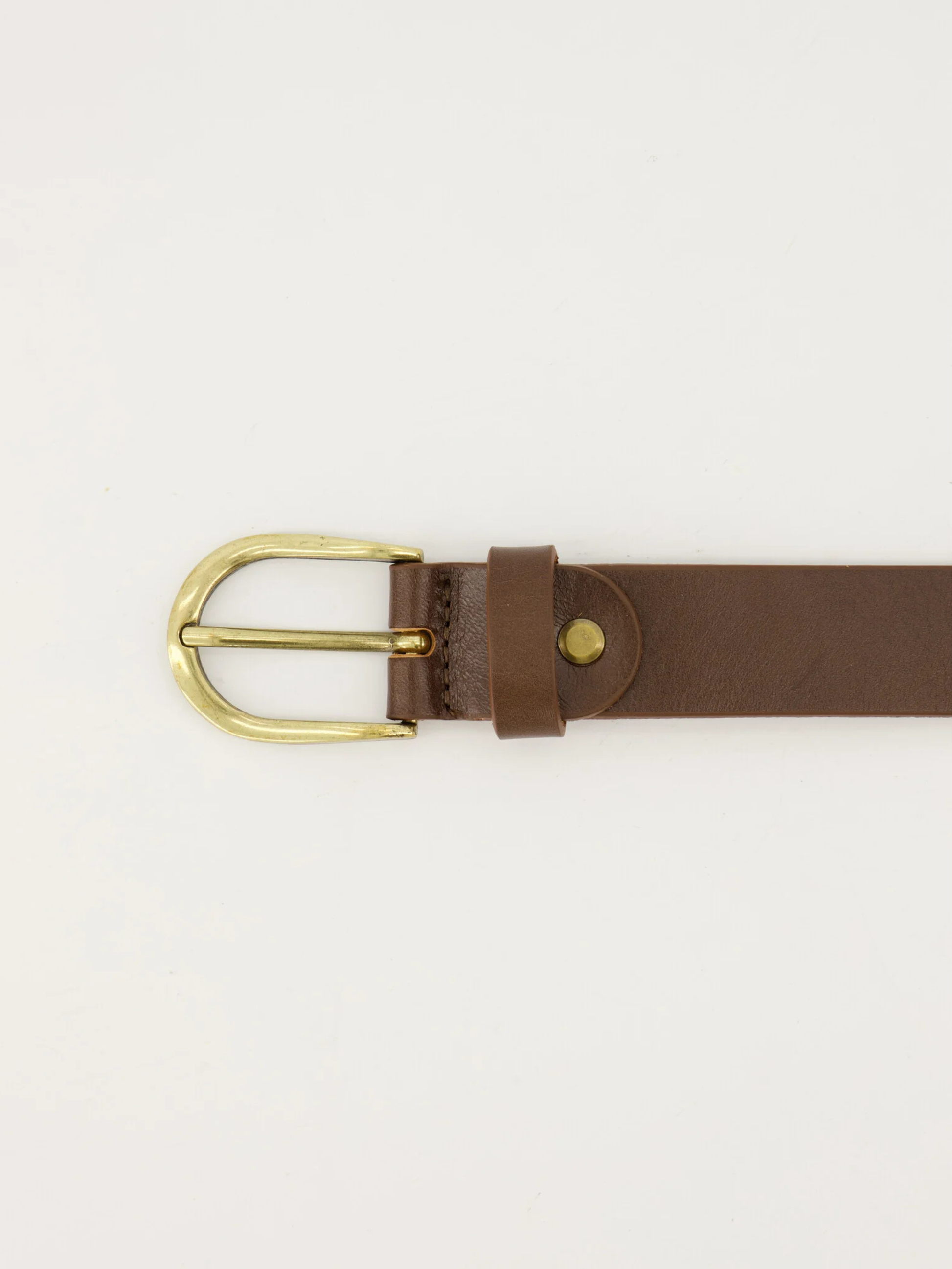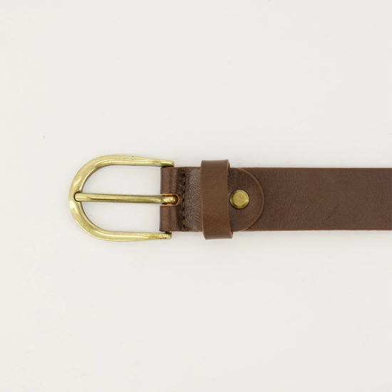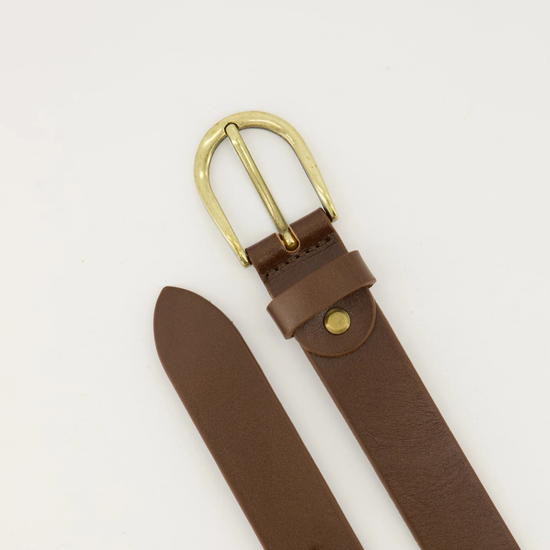 The strap is made of genuine leather and is 4 cm wide. The belt has a gold-colored buckle and is available in sizes 85 and 95. The belt can be shortened using a screw on the head.
