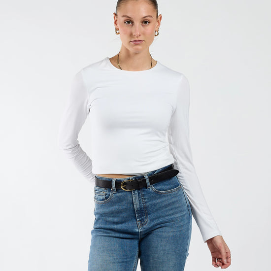 The strap is made of genuine leather and is 4 cm wide. The belt has a gold-colored buckle and is available in sizes 85 and 95. The belt can be shortened using a screw on the head.