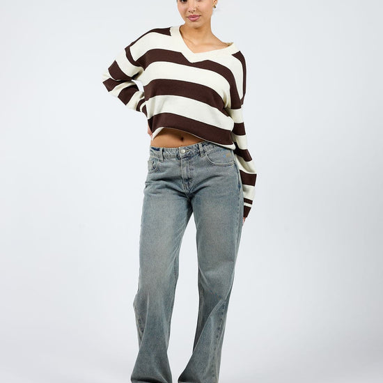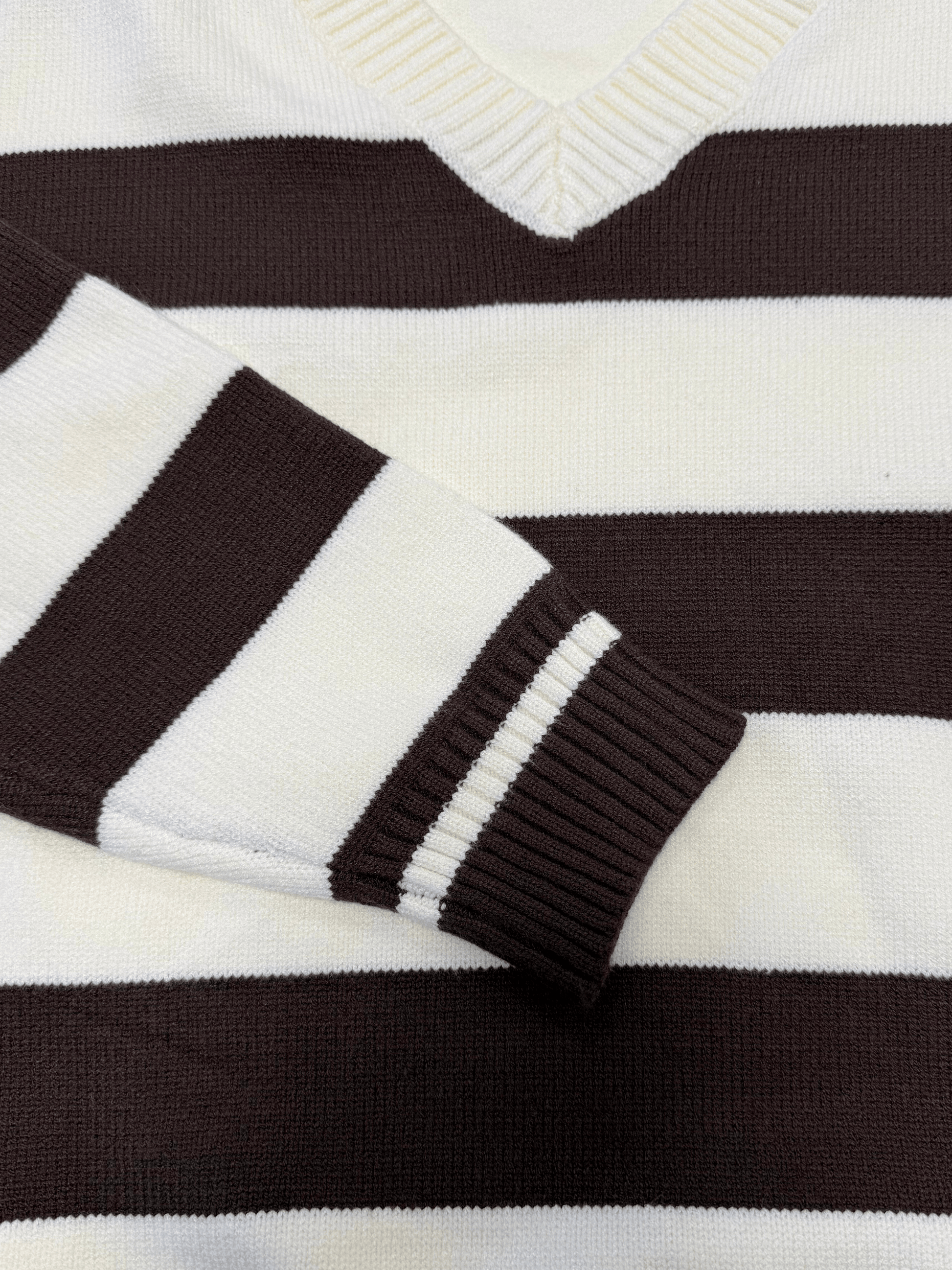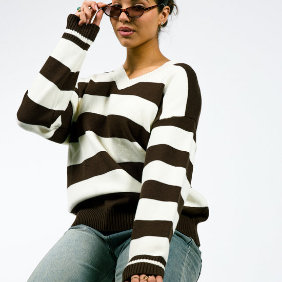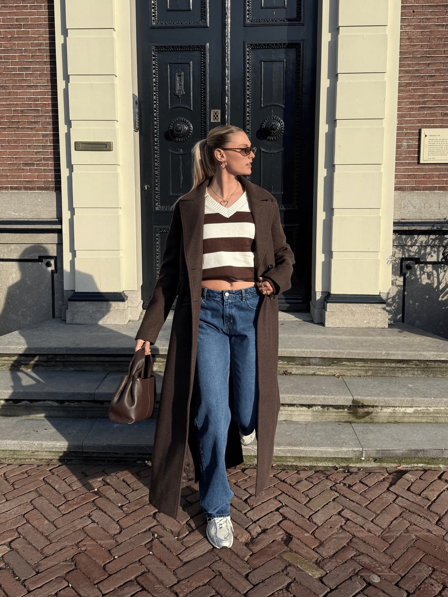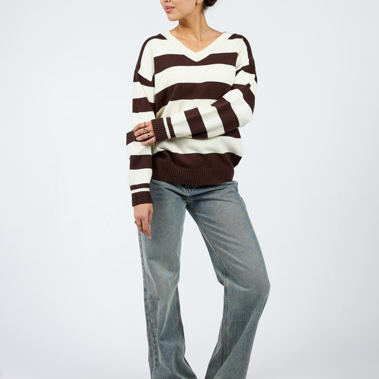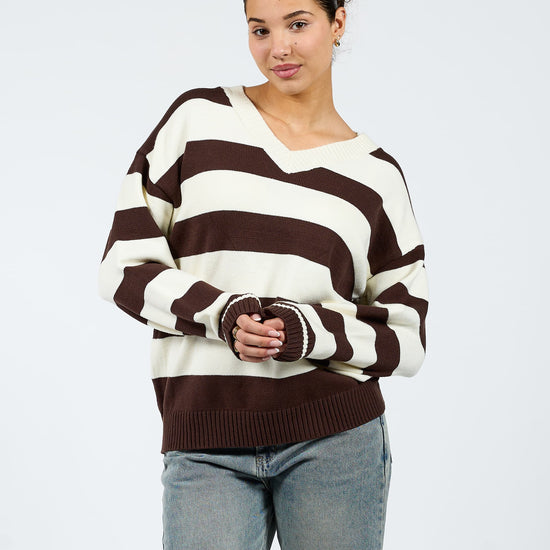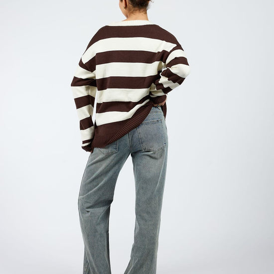 The Ella knitted sweater is one of those pieces that instantly makes you happy. A new favorite in our knitwear collection, it perfectly combines comfort and style. The sweater features a playful stripe pattern and a beautiful V-neck. The fabric feels wonderfully soft, and the slightly oversized fit creates a relaxed and comfortable look.