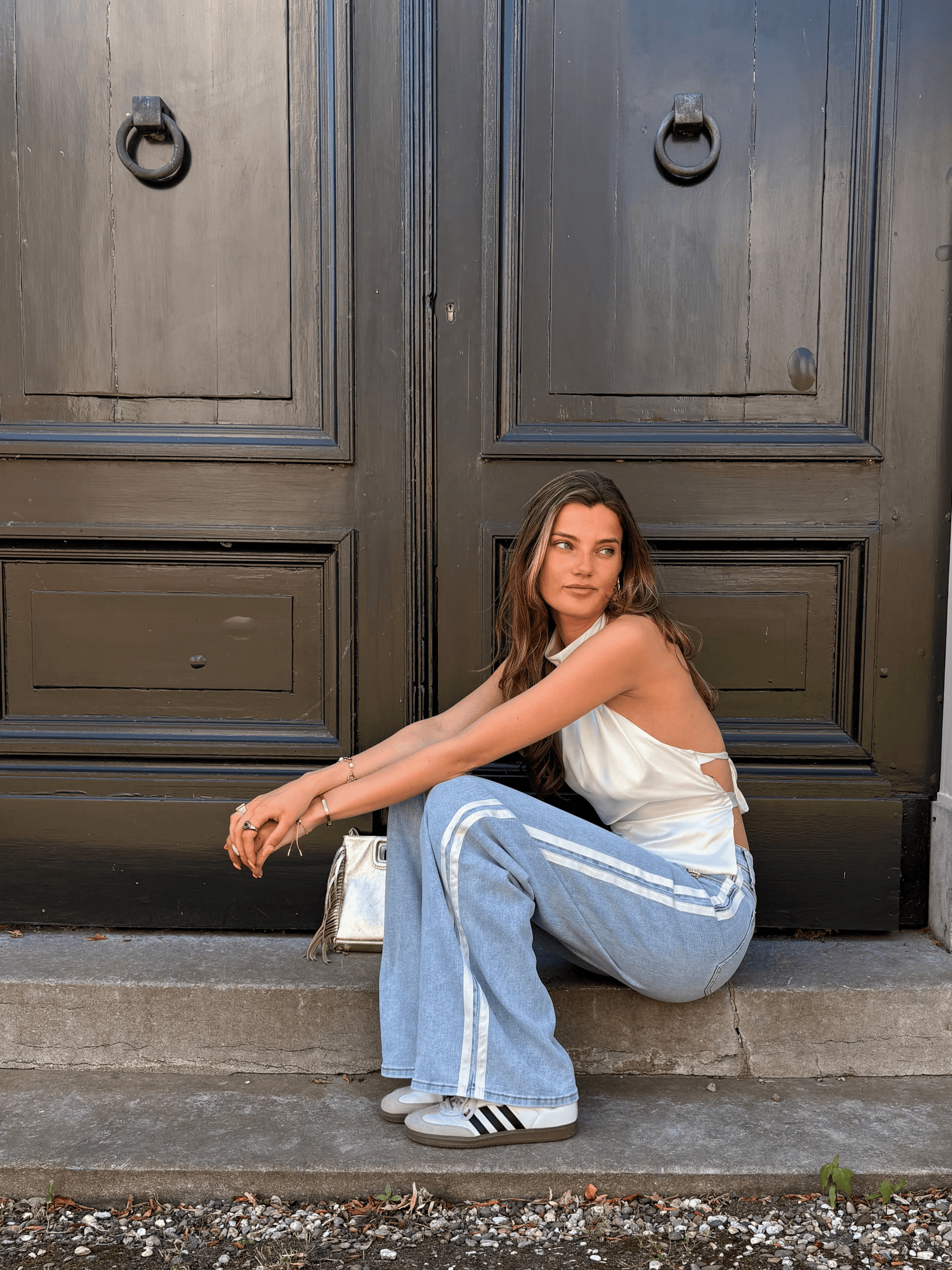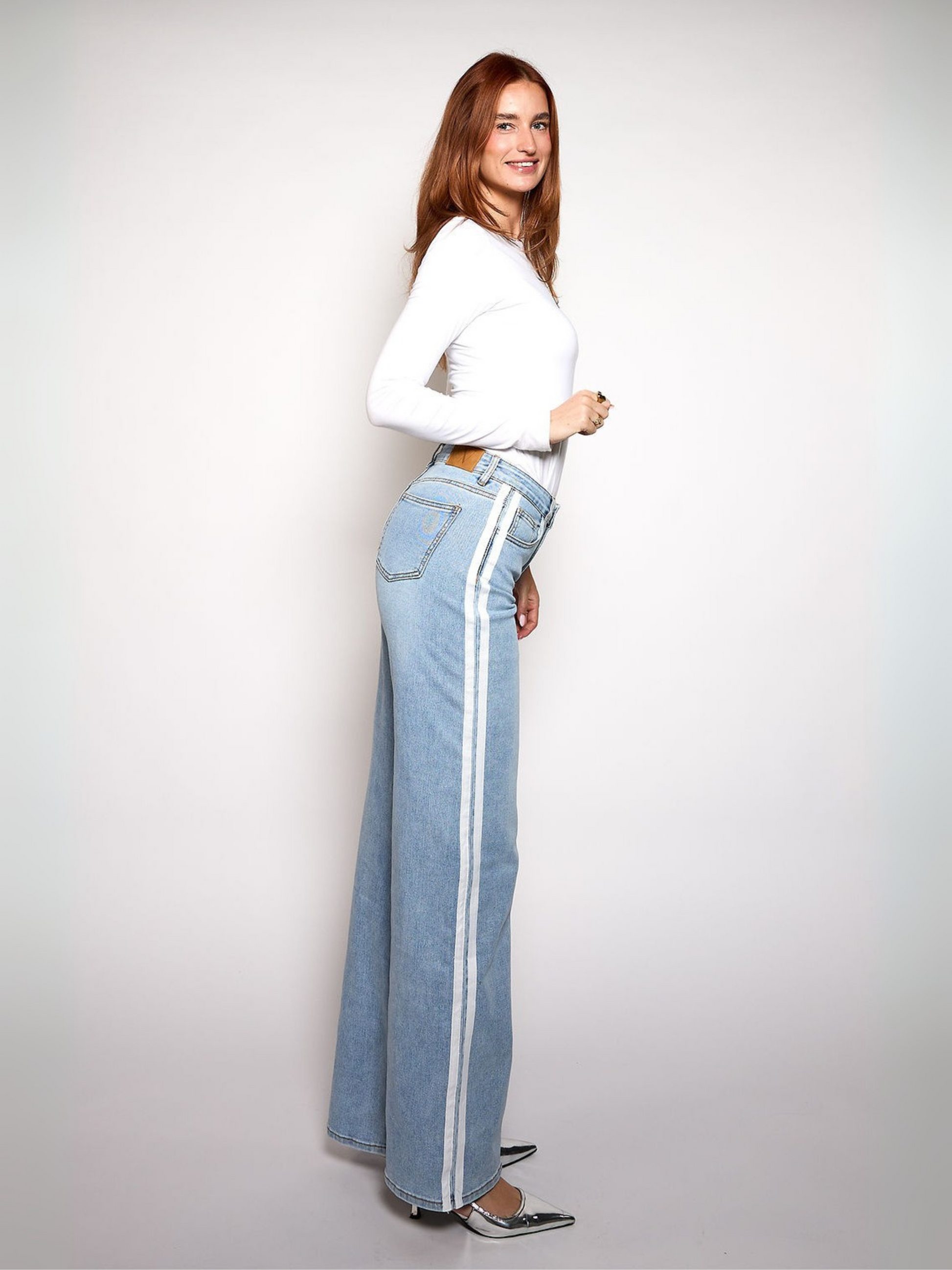 These TALL Jeans with white stripes on the side have a lot of stretch and are the perfect jeans for festival season! It is a mid waist TALL model. Are you tall? We got you! You can wear these pants from 1.75 to 2.00m. Available in length size 36 & 38.