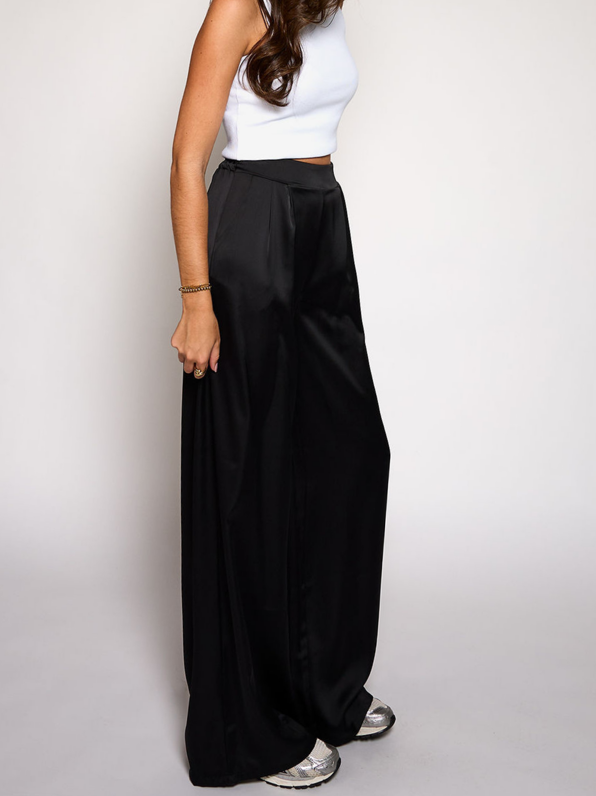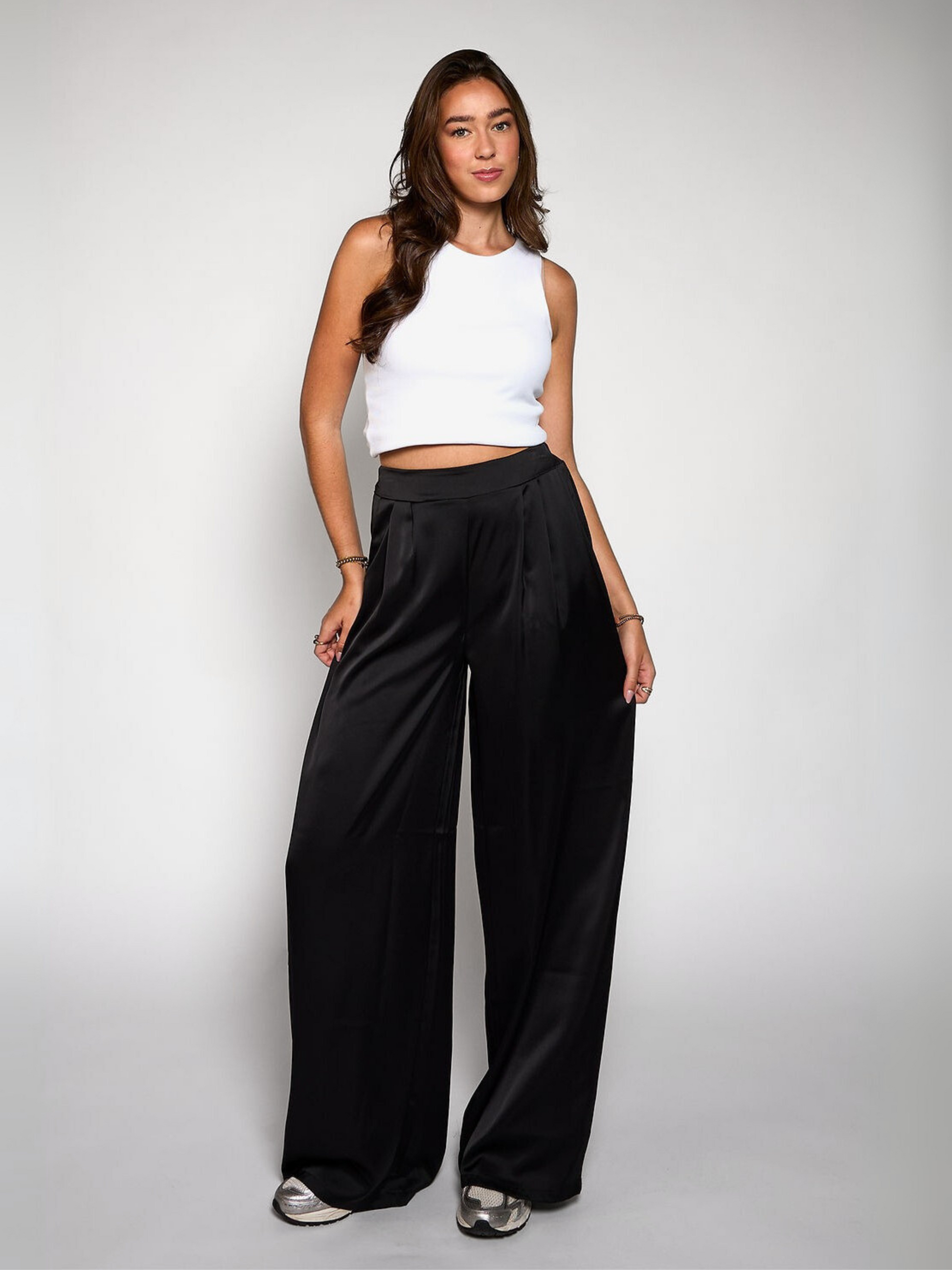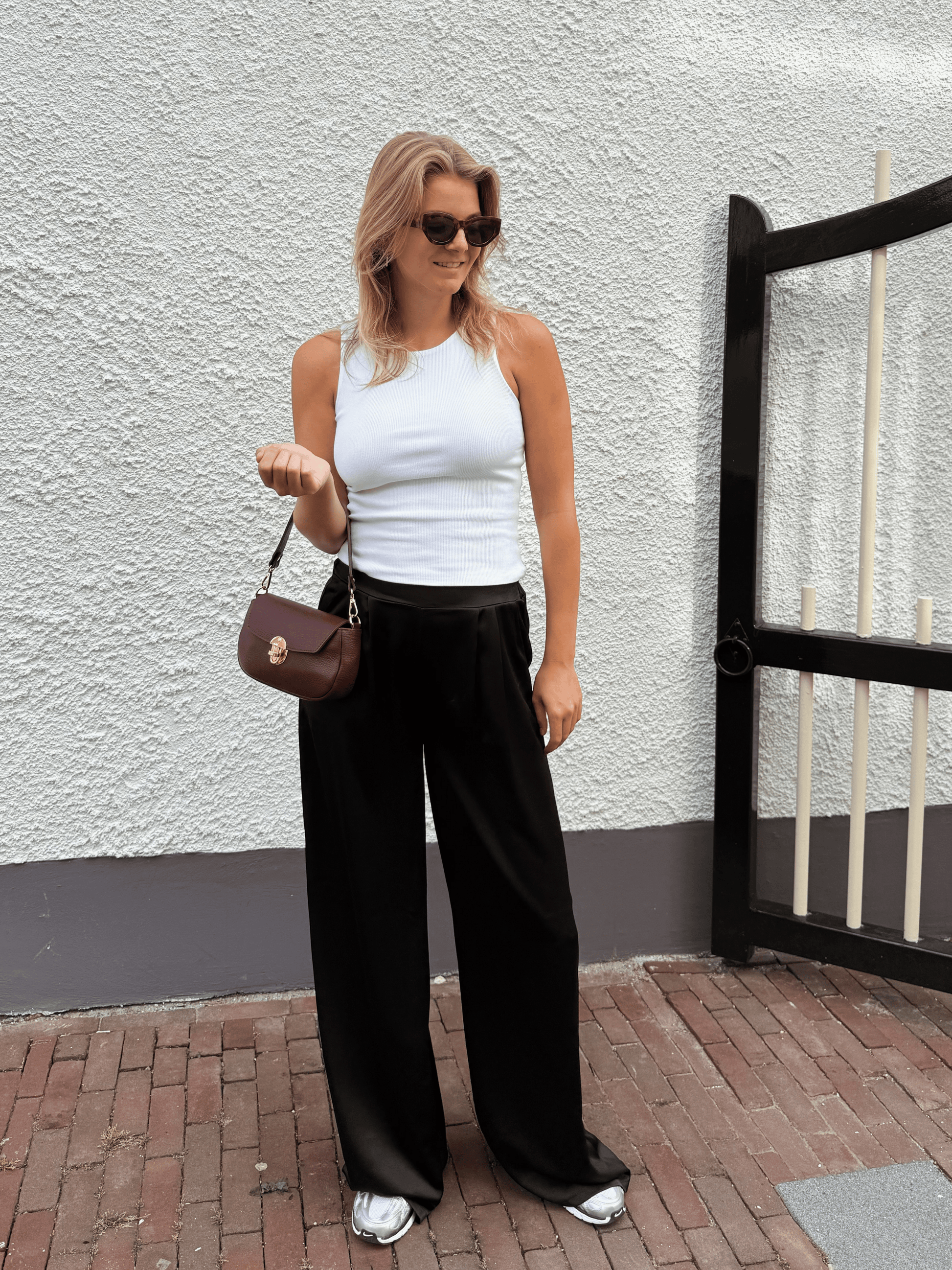 The Gigi Satin Pants are the perfect combination of chic and comfortable. Crafted from a softly flowing satin fabric with elegant pleats at the front and an elasticated waistband at the back for a relaxed, flattering fit. Available in four timeless colors: black, navy, dark brown, and beige. Specially designed for tall women (1.75 m to 2.00 m), with a choice of two lengths.