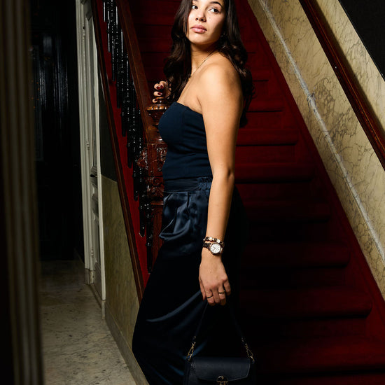 The Gigi Satin Pants are the perfect combination of chic and comfortable. Made from a soft satin fabric with elegant pleats at the front and an elastic band at the back for a relaxed, flattering fit. Available in four timeless colours: black, navy, dark brown and beige. Specially designed for tall women (1.75 m to 2.00 m), with a choice of two length sizes.