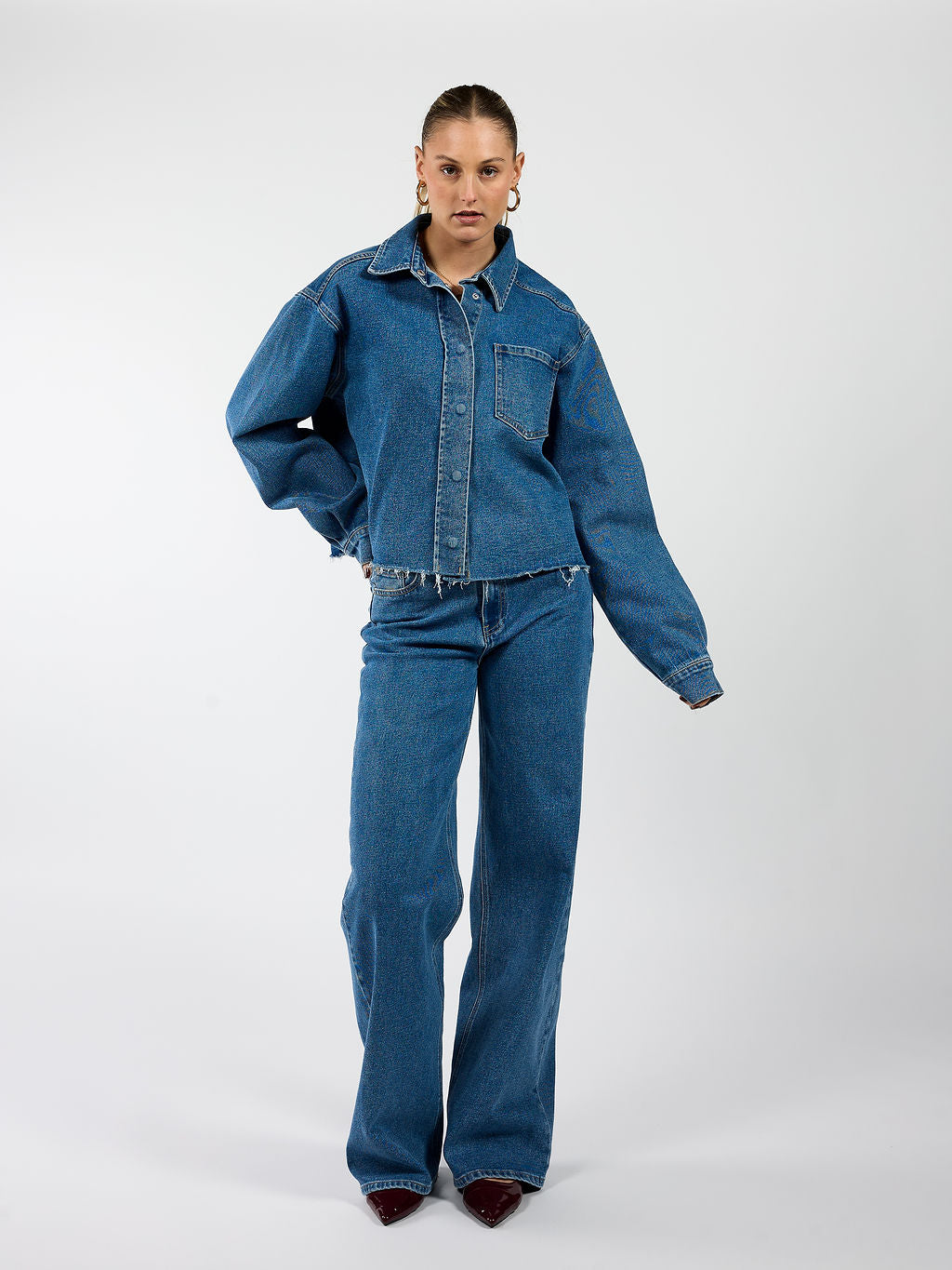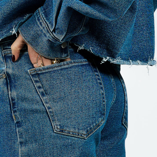 The Indy Mid Waist Super Wide Leg Jeans are your new go-to denim for everyday wear. The mid-waist fits beautifully, and the extra-wide legs give them a relaxed look. The durable denim ensures they stay in shape and are comfortable to wear. Pair them perfectly with the Indy jacket for a cool co-ord set! Or style them with a basic top, a knit, or a blazer for an effortless look.