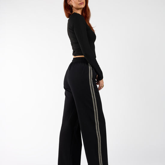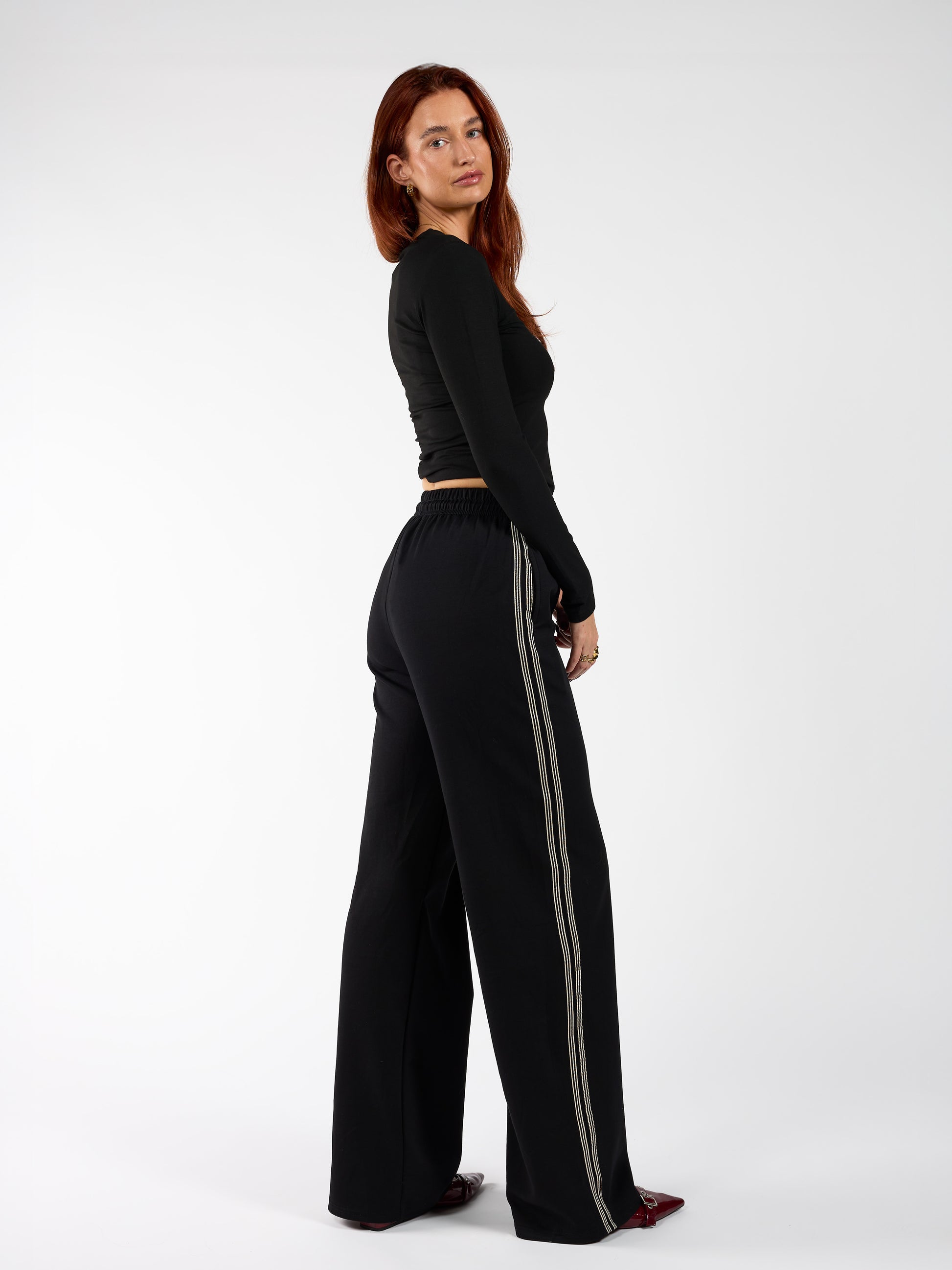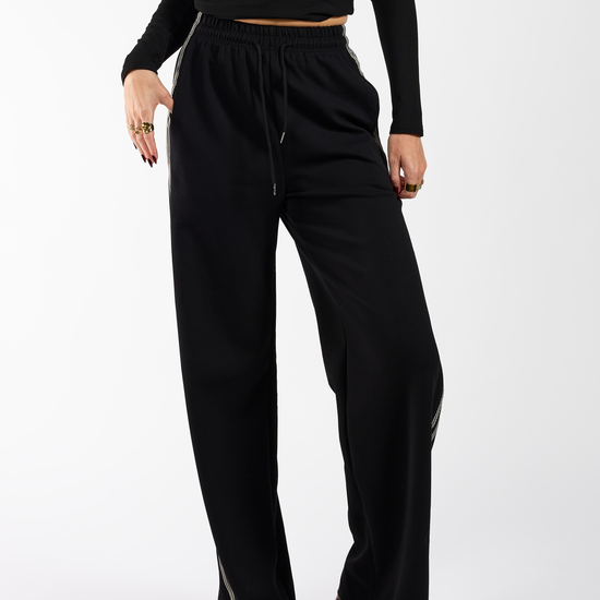 Tall girl approved 🖤 These black comfy pants are the perfect mix of sporty and comfortable. The straight fit and side stripes create a timeless look that can be styled endlessly. Specially designed for tall girls between 1.75m and 2.00m to ensure a perfect fit. A classic that no wardrobe should be without!