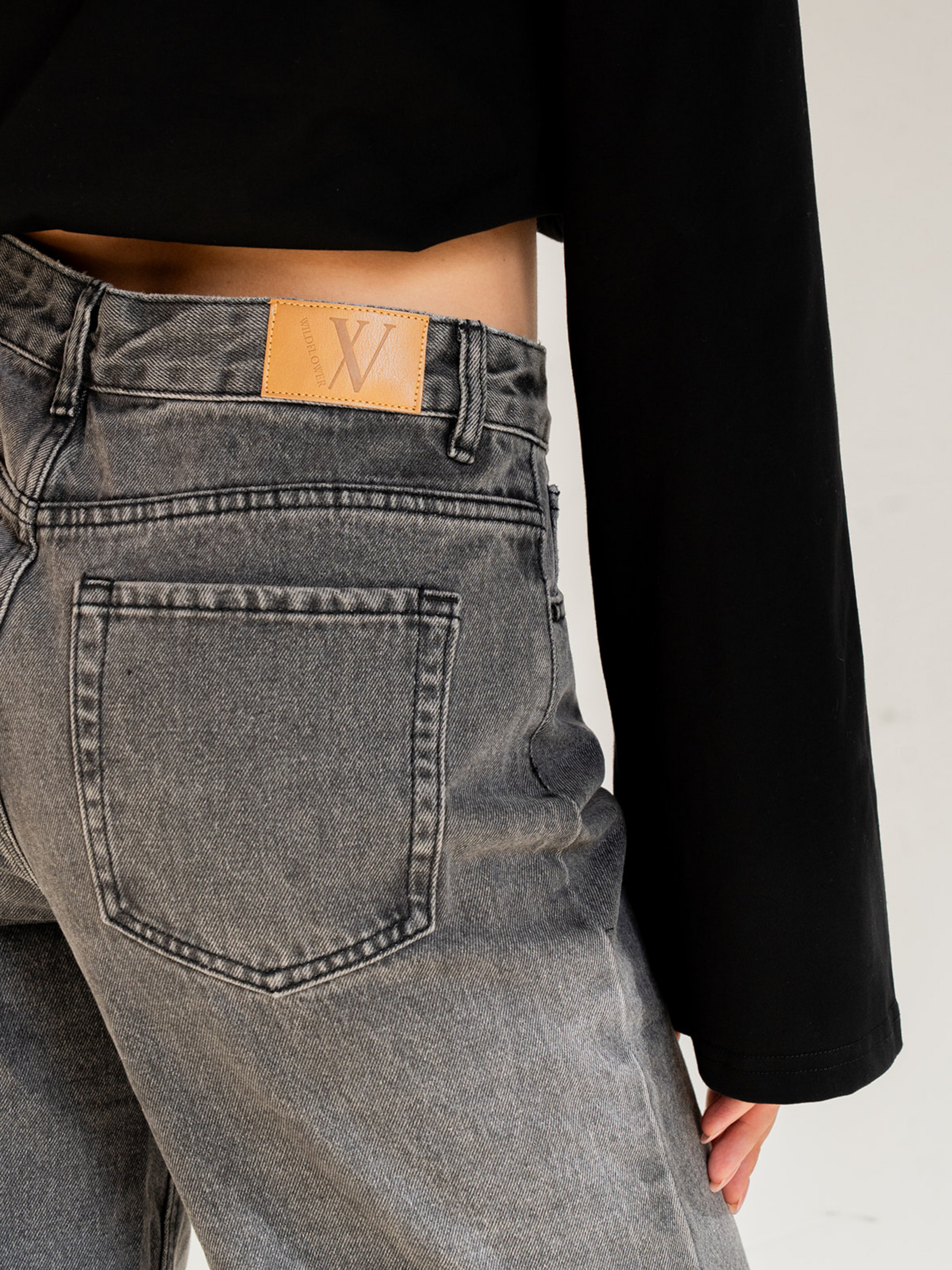 Jade Super Wide Leg Jeans | Mid waist | Dark gray |