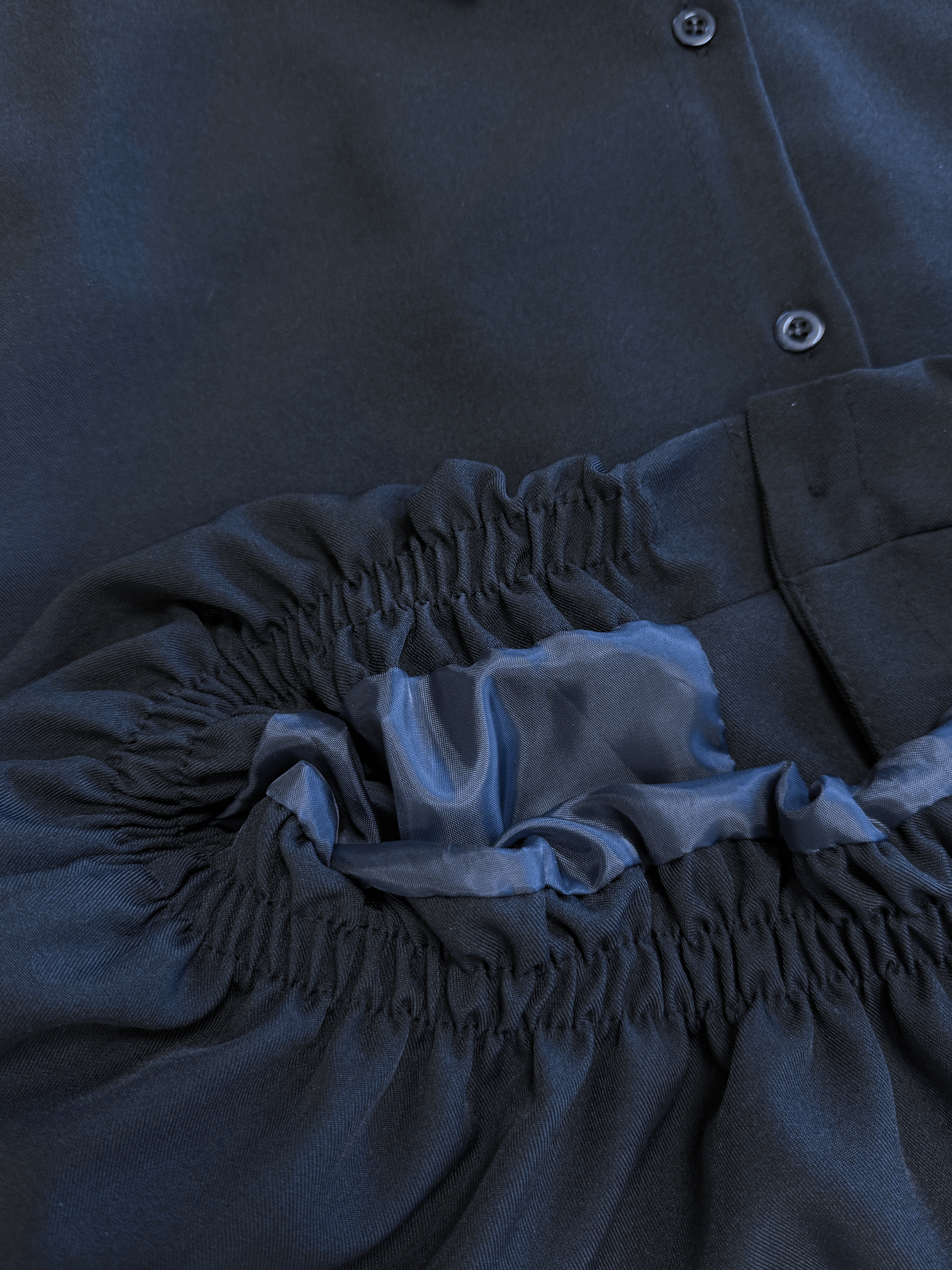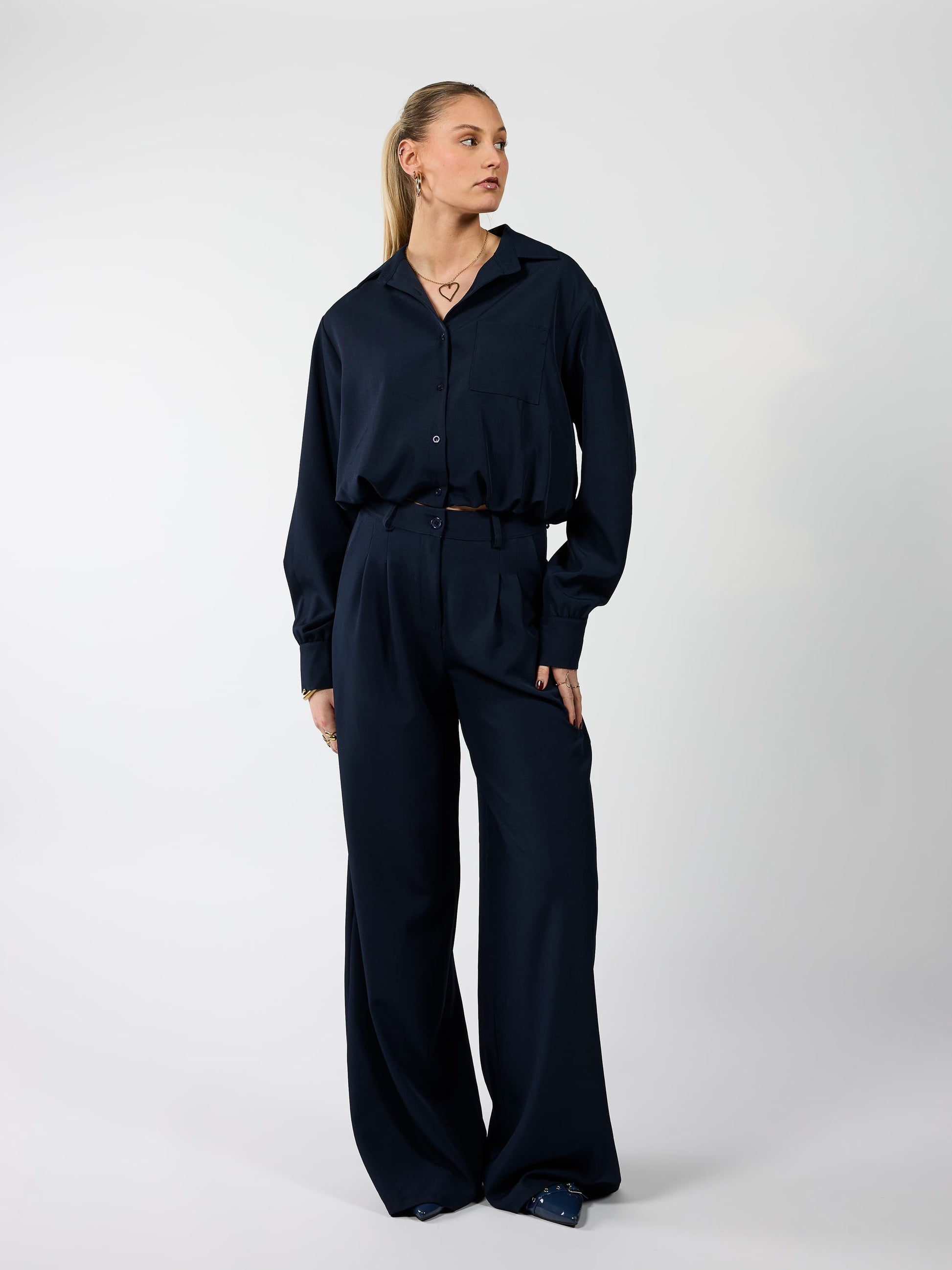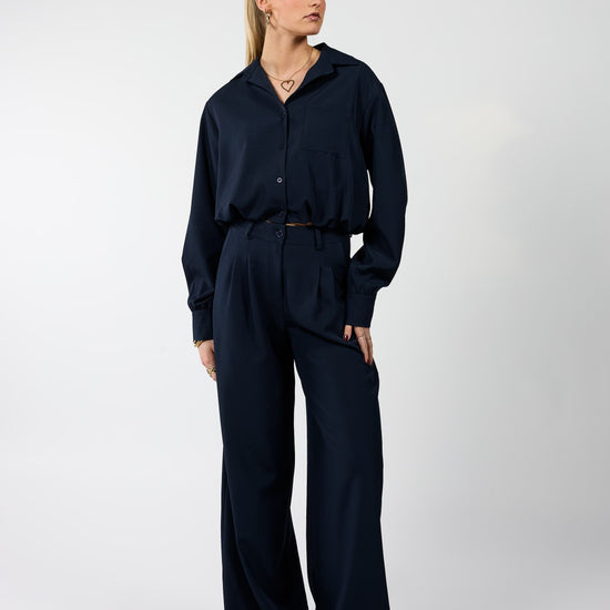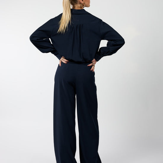 The blouse is lined and has extra-long sleeves, specially designed for tall girls so the fit is beautifully proportioned. Wear the Jip blouse with the matching Jip trousers for a cool coordinated look, or pair it with your favorite jeans for an everyday look. The Jip set is available in navy and bordeaux.