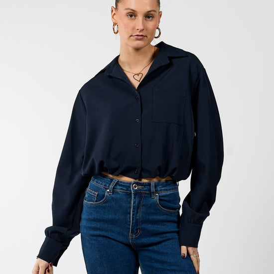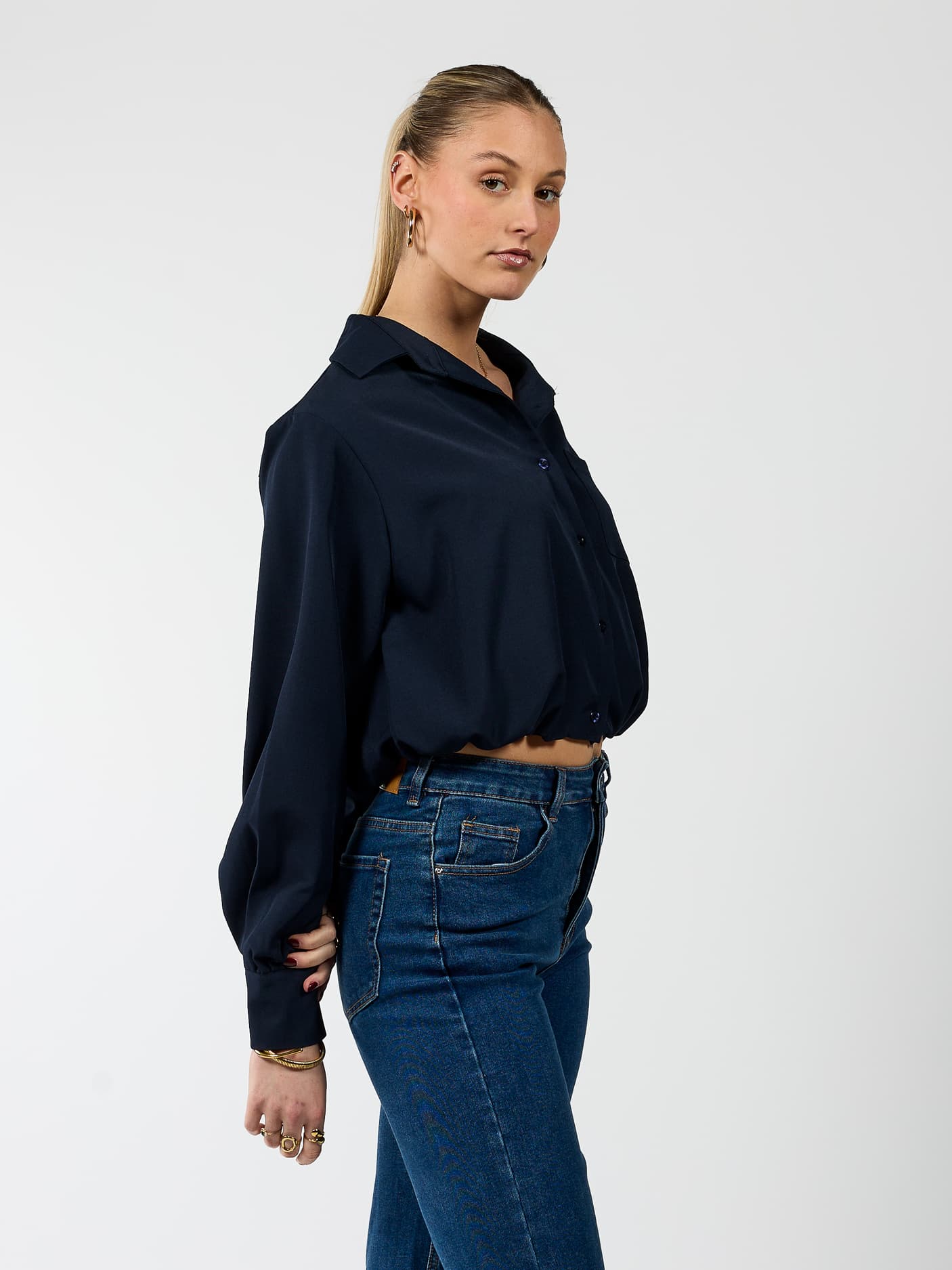 New co-ord favorite! The Jip blouse is the perfect mix of trendy and comfy. The cropped fit combined with the elastic hem creates a playful look, while the collar and chest pocket add a cool touch. Thanks to the button closure, you can wear the blouse open or closed.