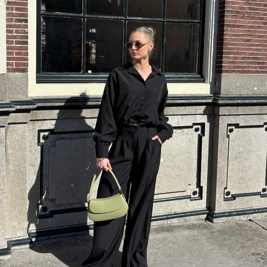 New co-ord favorite! Jip trousers are the perfect choice for anyone who loves volume and a statement fit. The high waist fits beautifully, and the super wide leg creates a powerful, elegant look. Pleats at both the front and back add extra movement and enhance the fit.