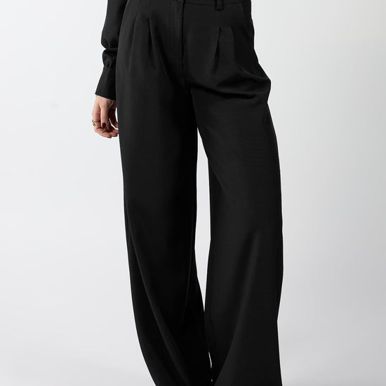 Jip | Pleated Wide Leg Trousers | Black | Tall