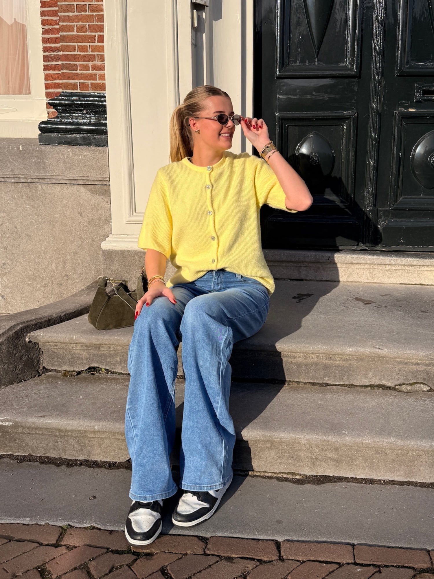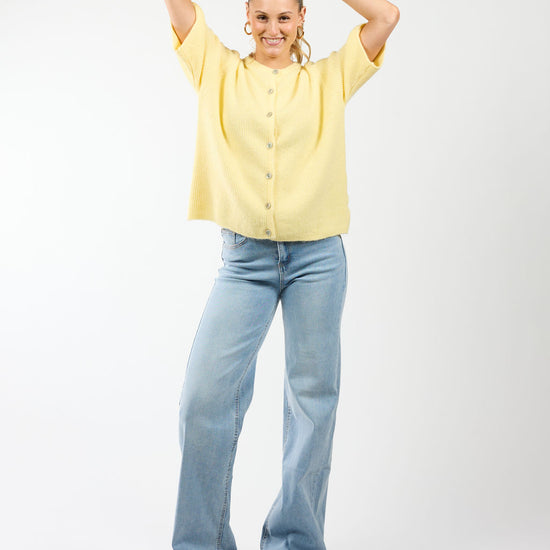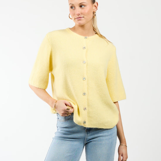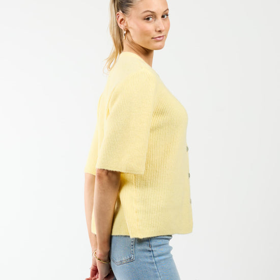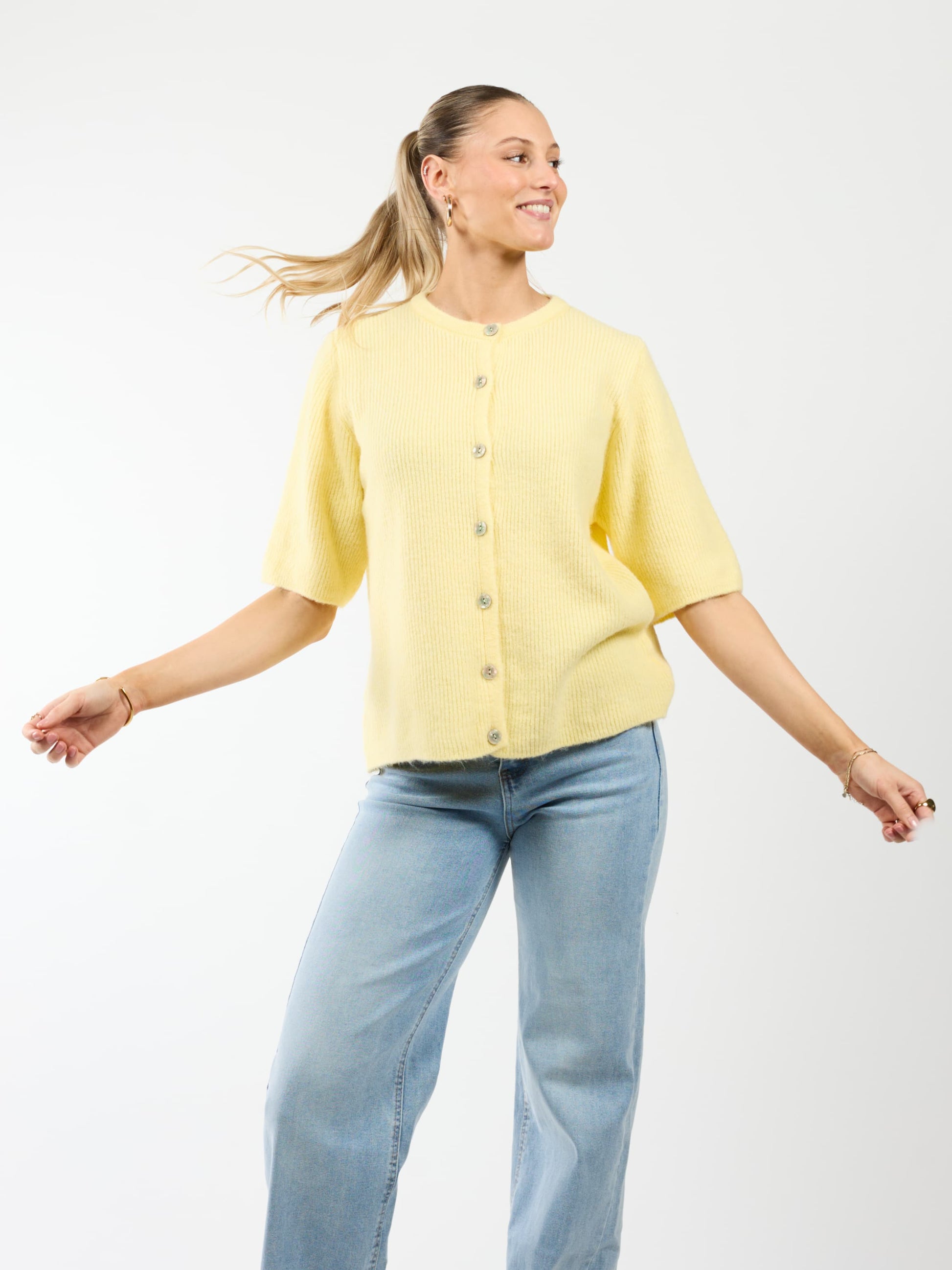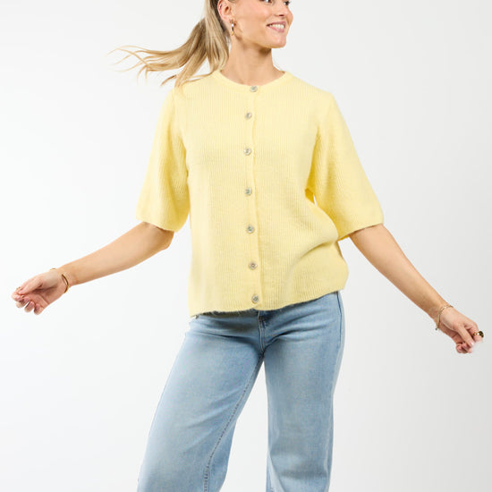 Lena Knitted Cardigan with Buttons | Yellow | Tall