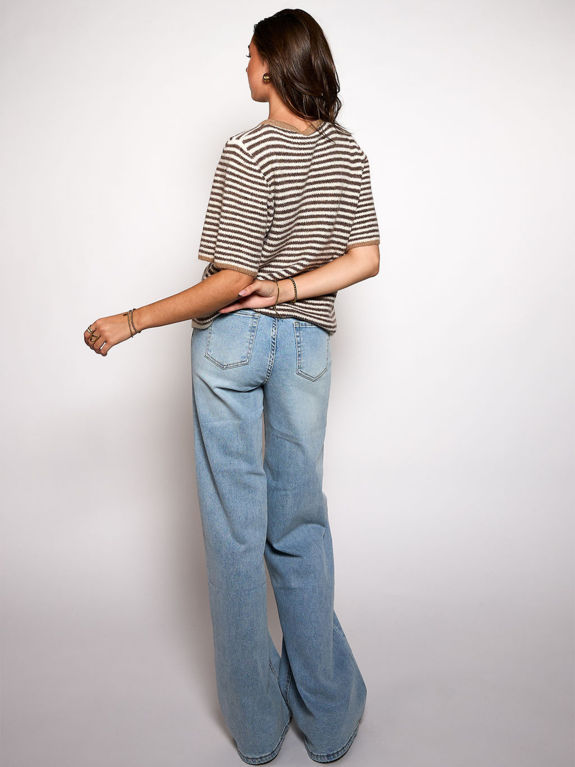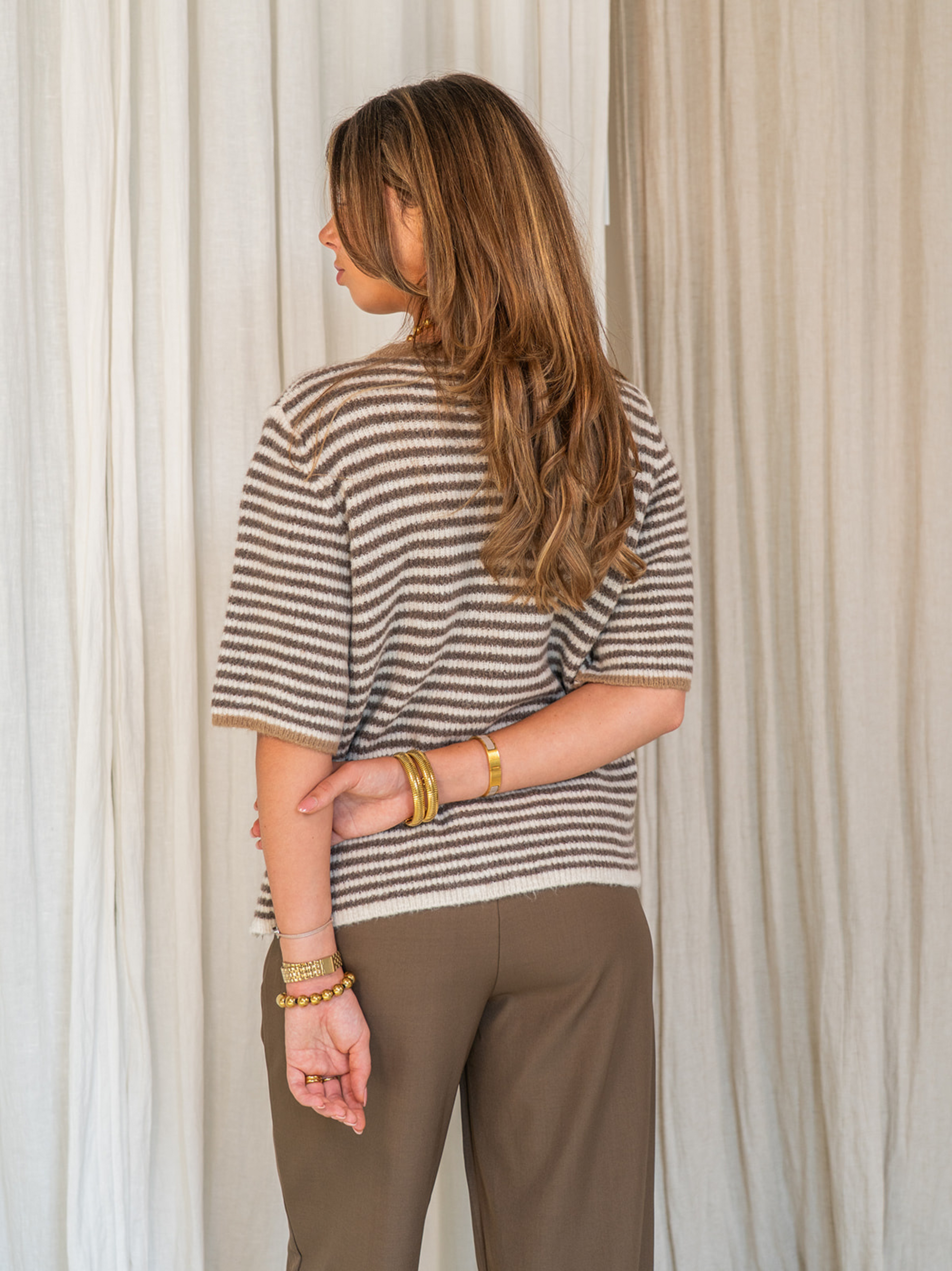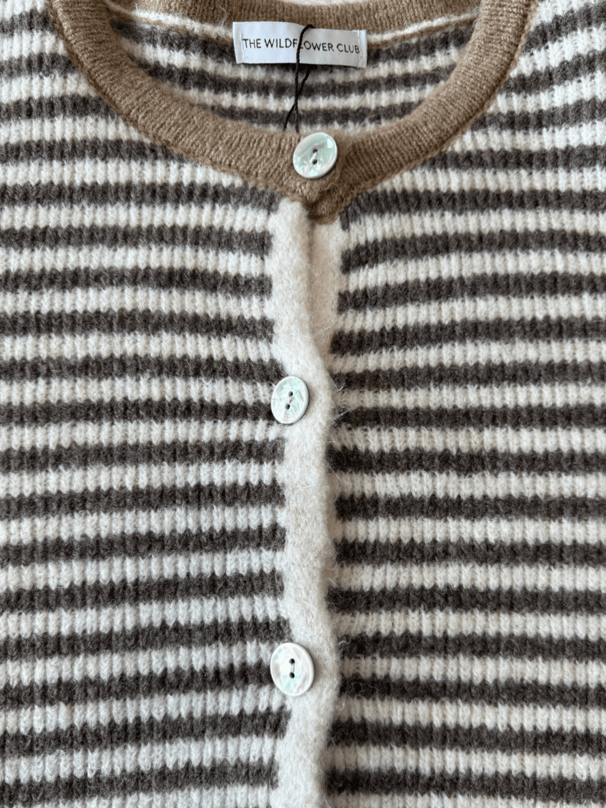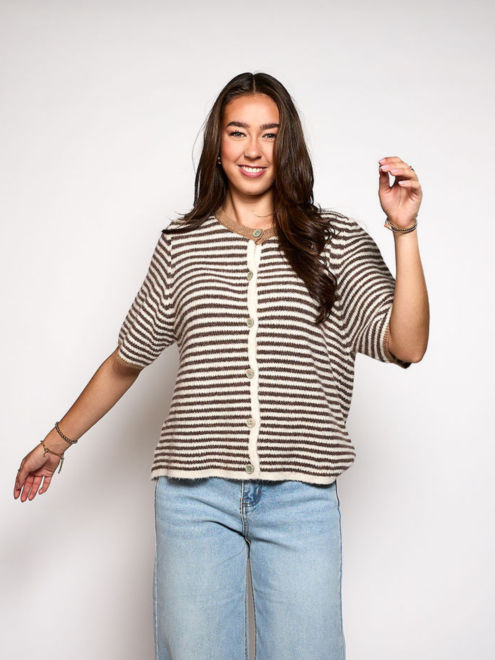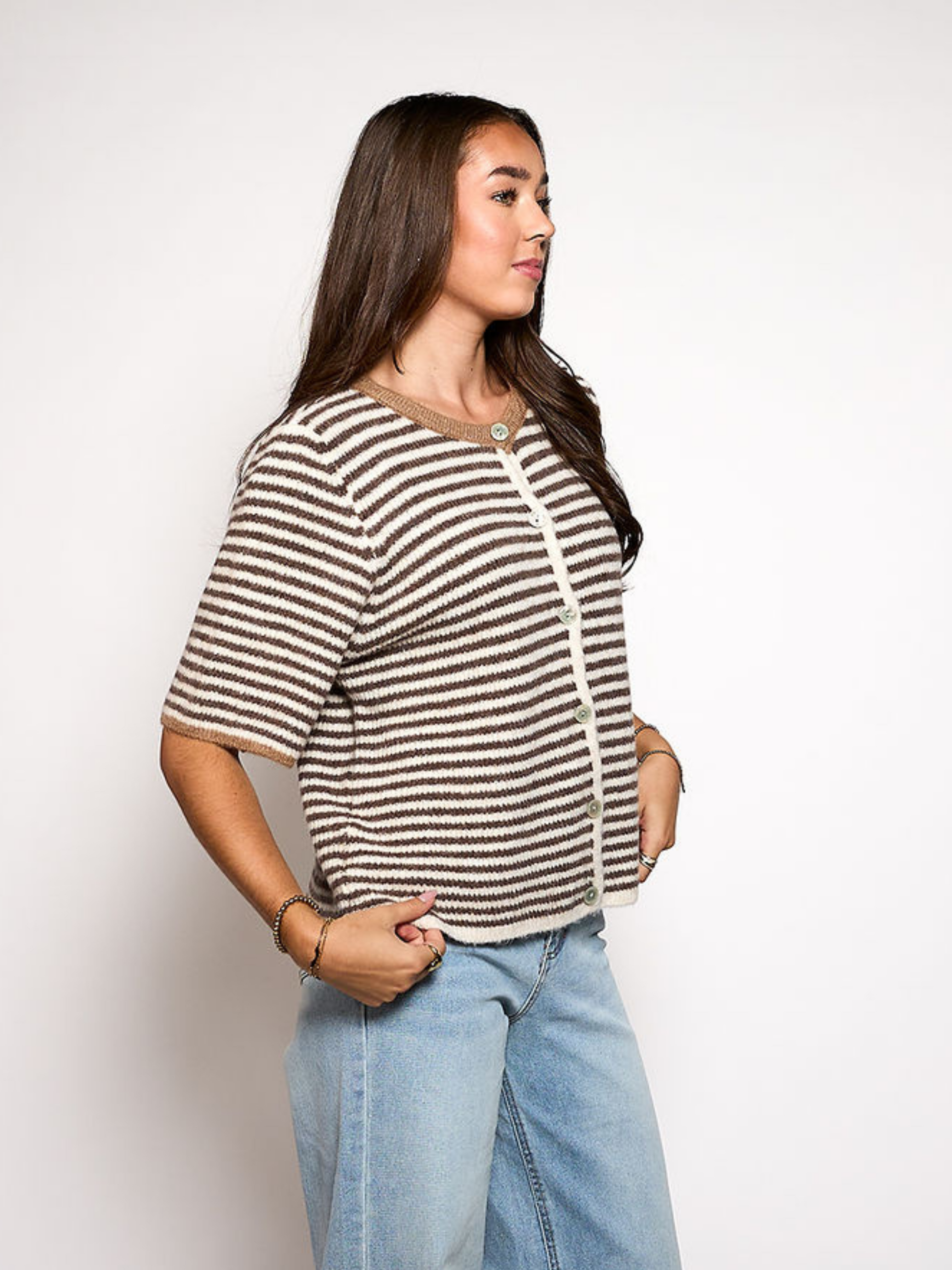 Lena Knitted Cardigan with Buttons | White brown striped | Tall