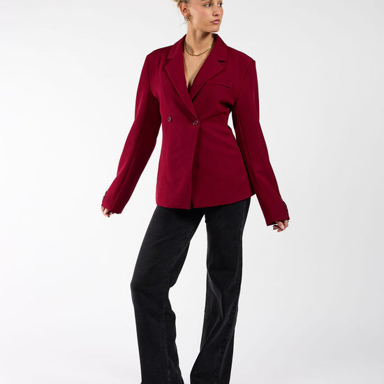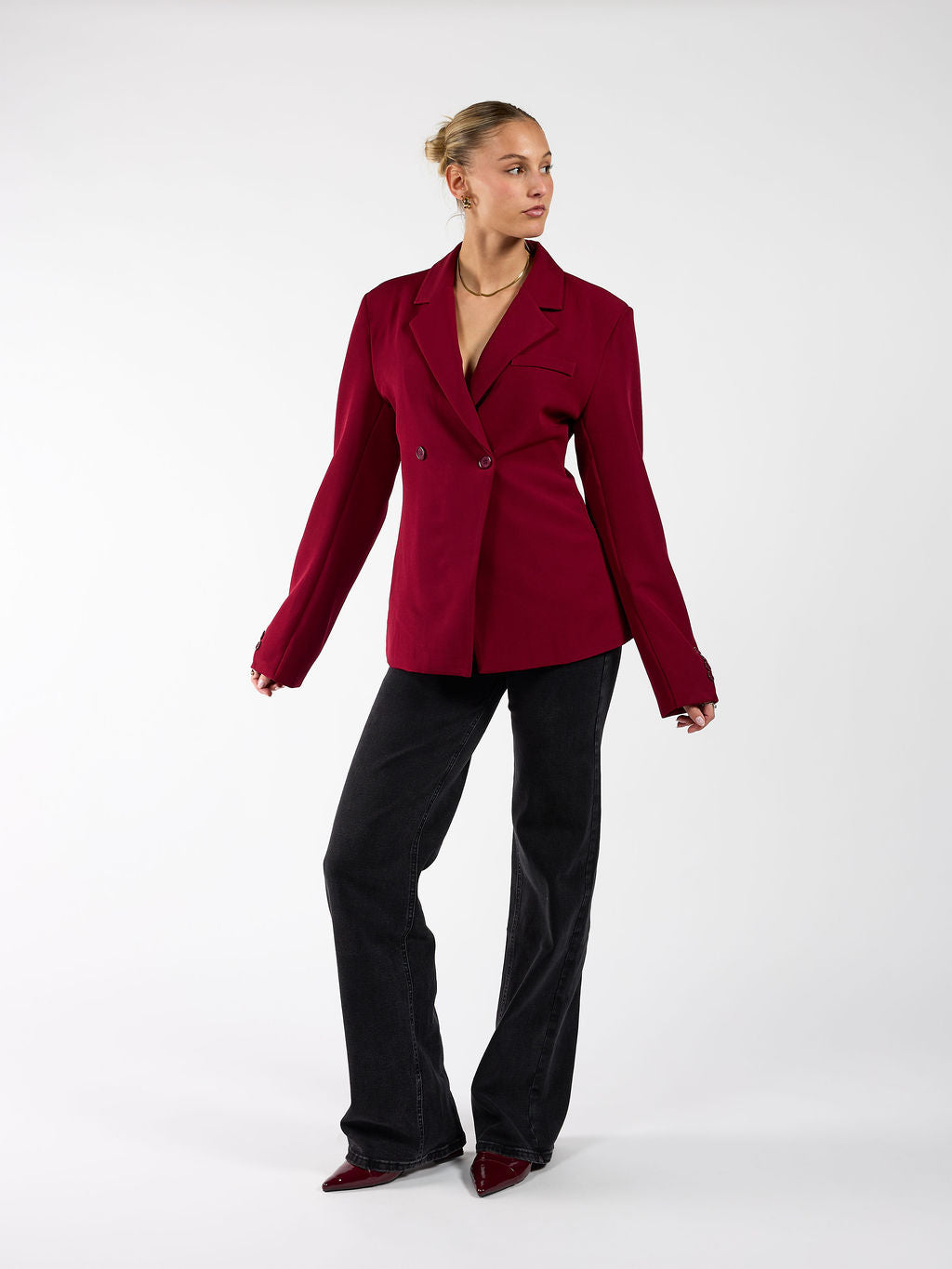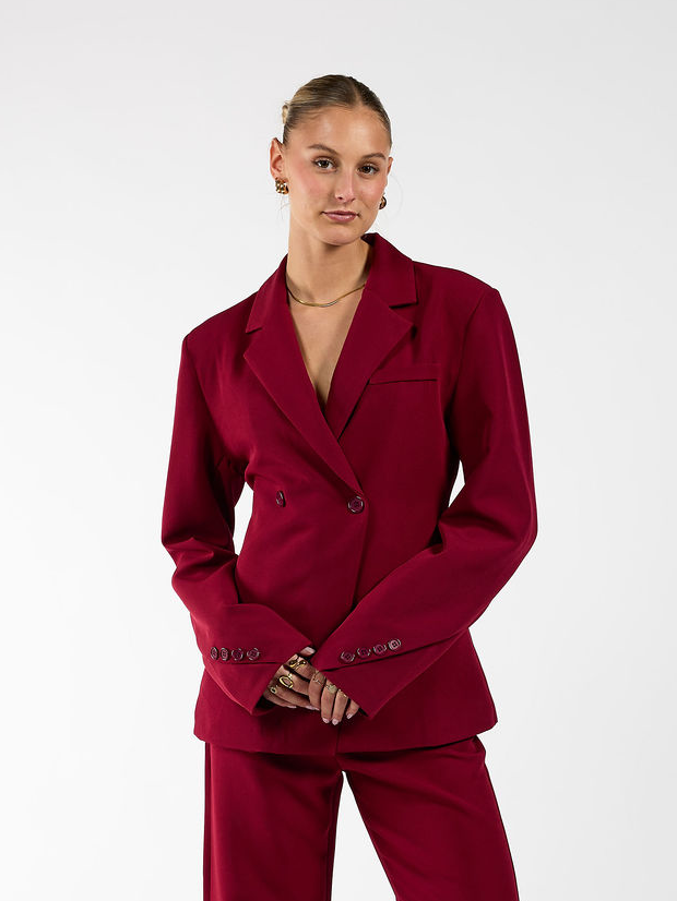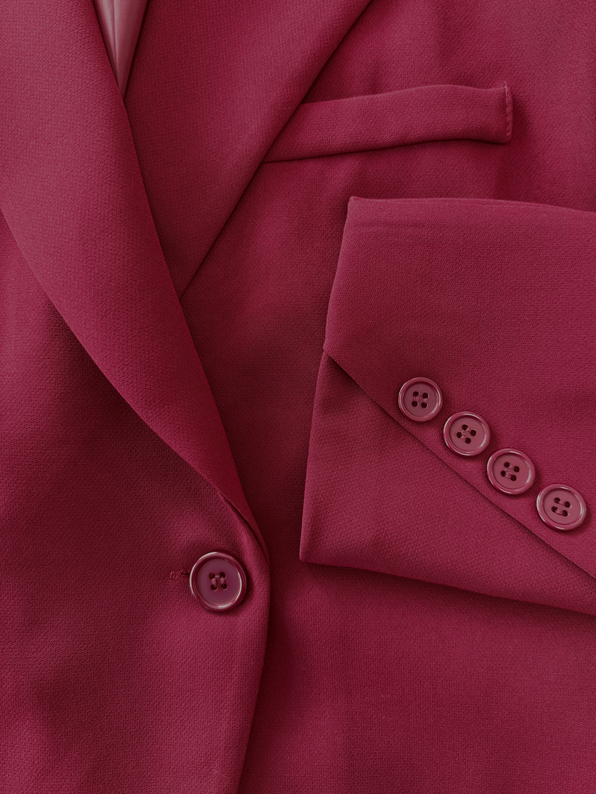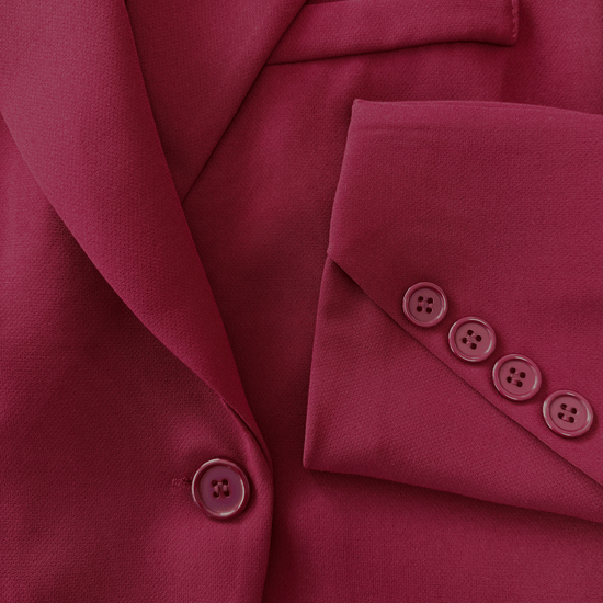 This blazer is the perfect blend of feminine and classy. It accentuates your waist with two front buttons and has a subtly flared fit that drapes beautifully over your body. The shoulders are slightly wider for an elegant, powerful look, while the waist is nicely fitted.