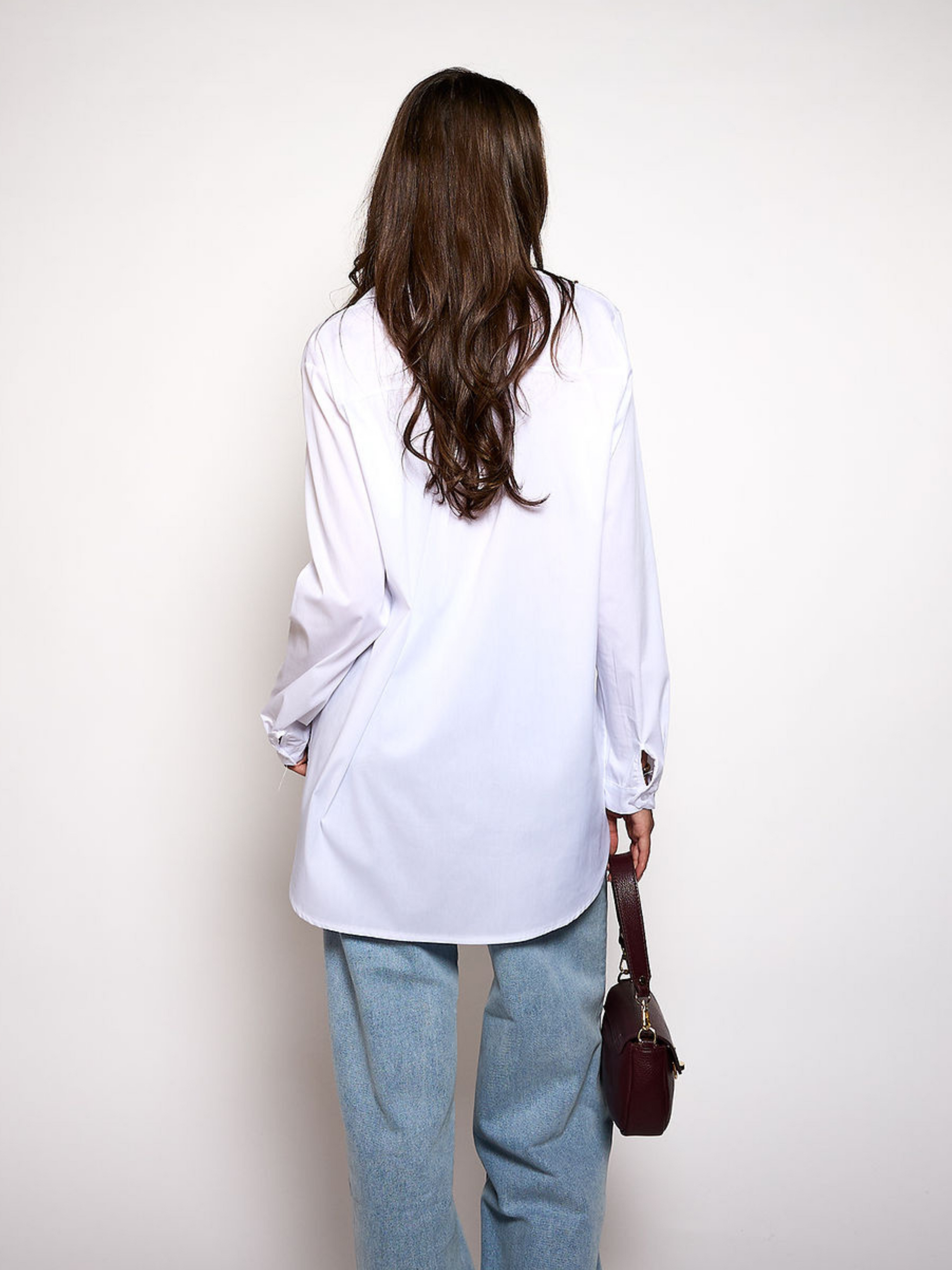 The blouse has extra-long sleeves especially for tall girls and is slightly longer at the back for a playful and flattering look. Made of a comfortable, breathable fabric that you can wear year-round.