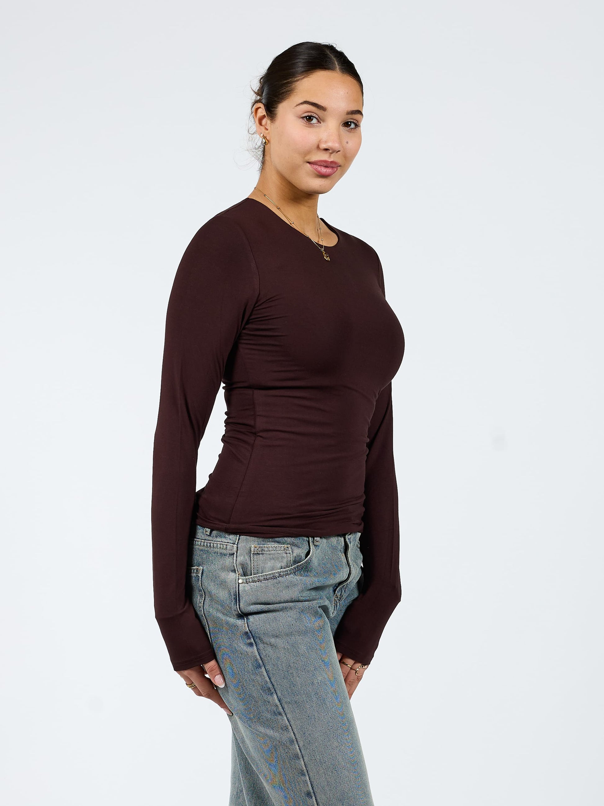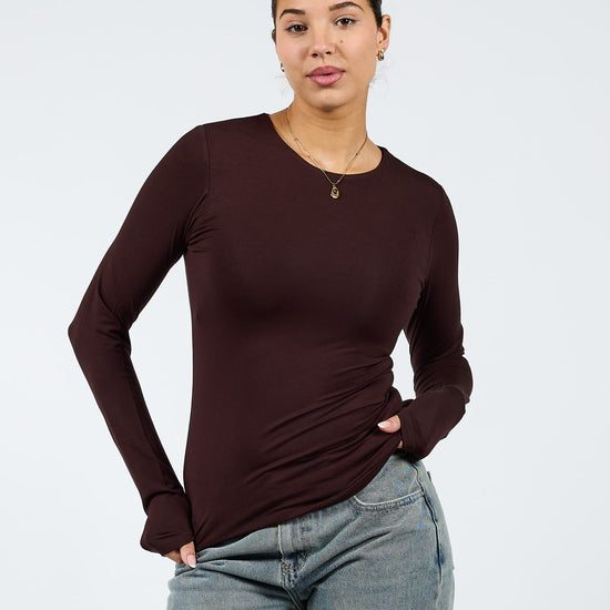 The Liza Long Sleeve Top is a true everyday favorite! Specially designed for tall girls, it features extra-long sleeves and a choice of two lengths. The round neckline gives the top a clean, polished look, while the double-layered fabric at the body ensures a beautiful drape and is opaque. Made from a wonderfully stretchy fabric that feels comfortable and provides a lovely, flattering fit.