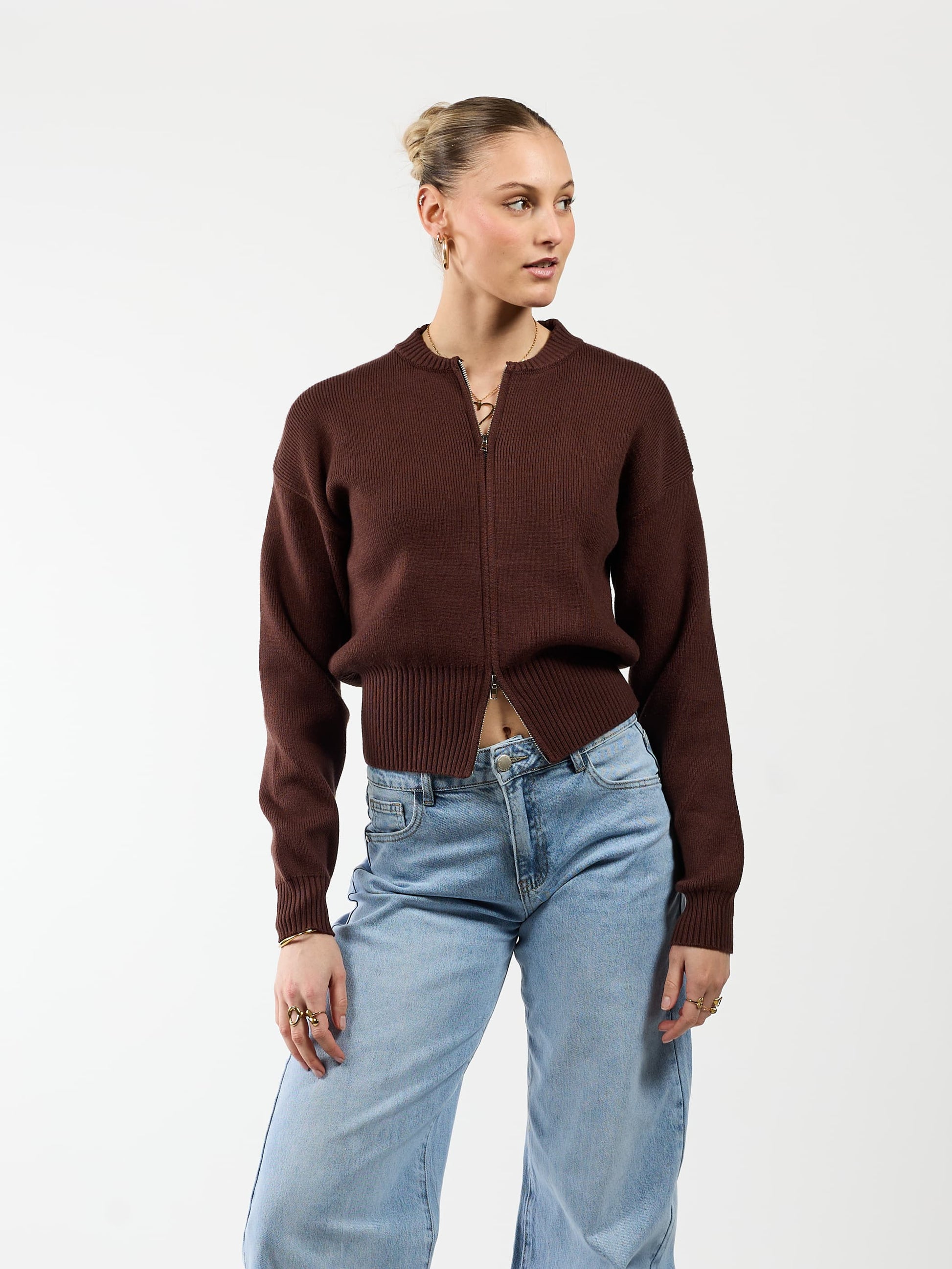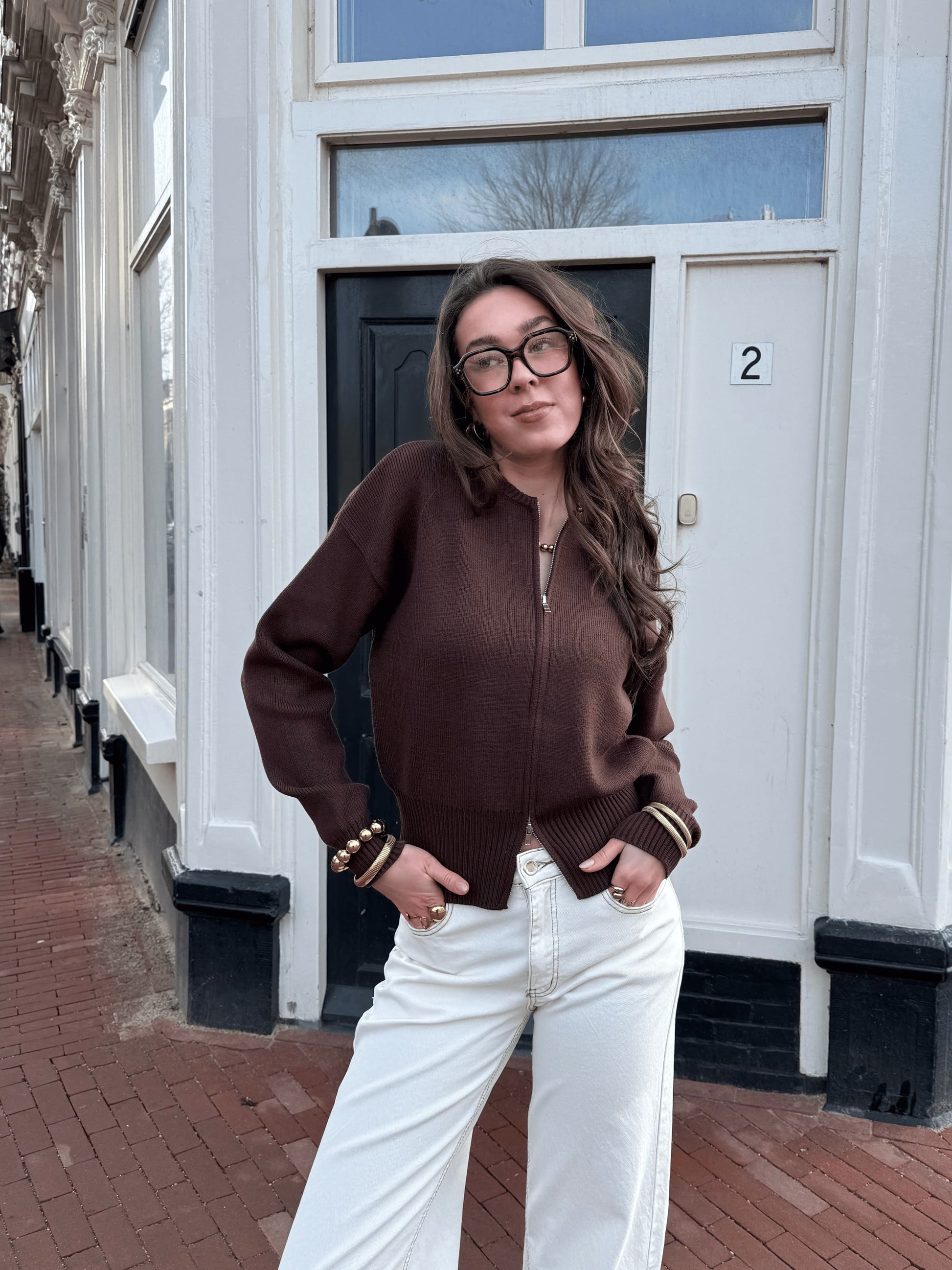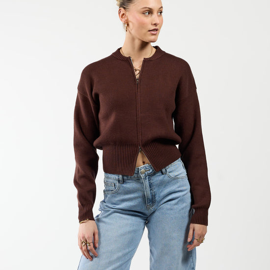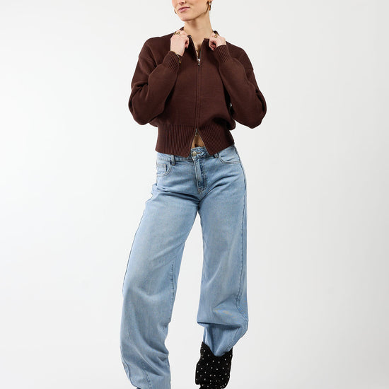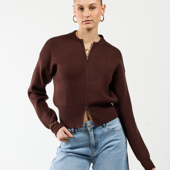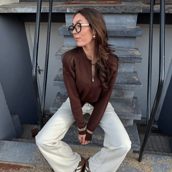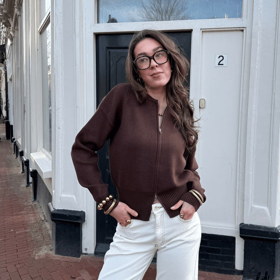 Lizzy cardigan with zipper | Dark brown | Tall