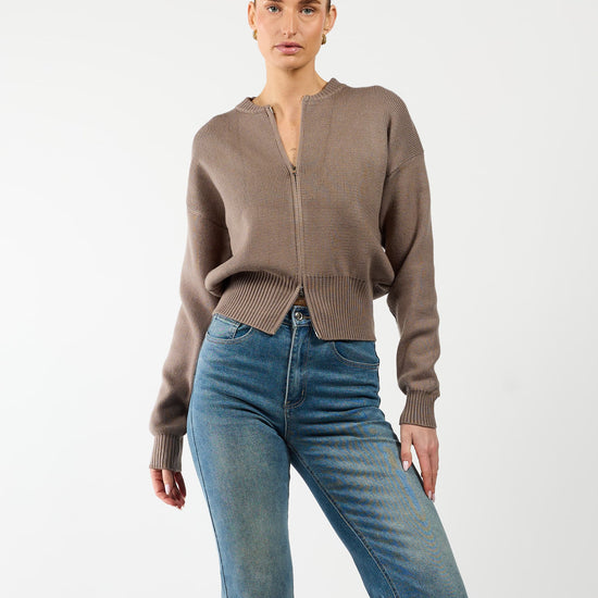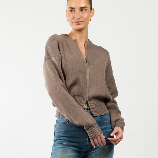 Lizzy cardigan with zipper | Taupe | Tall