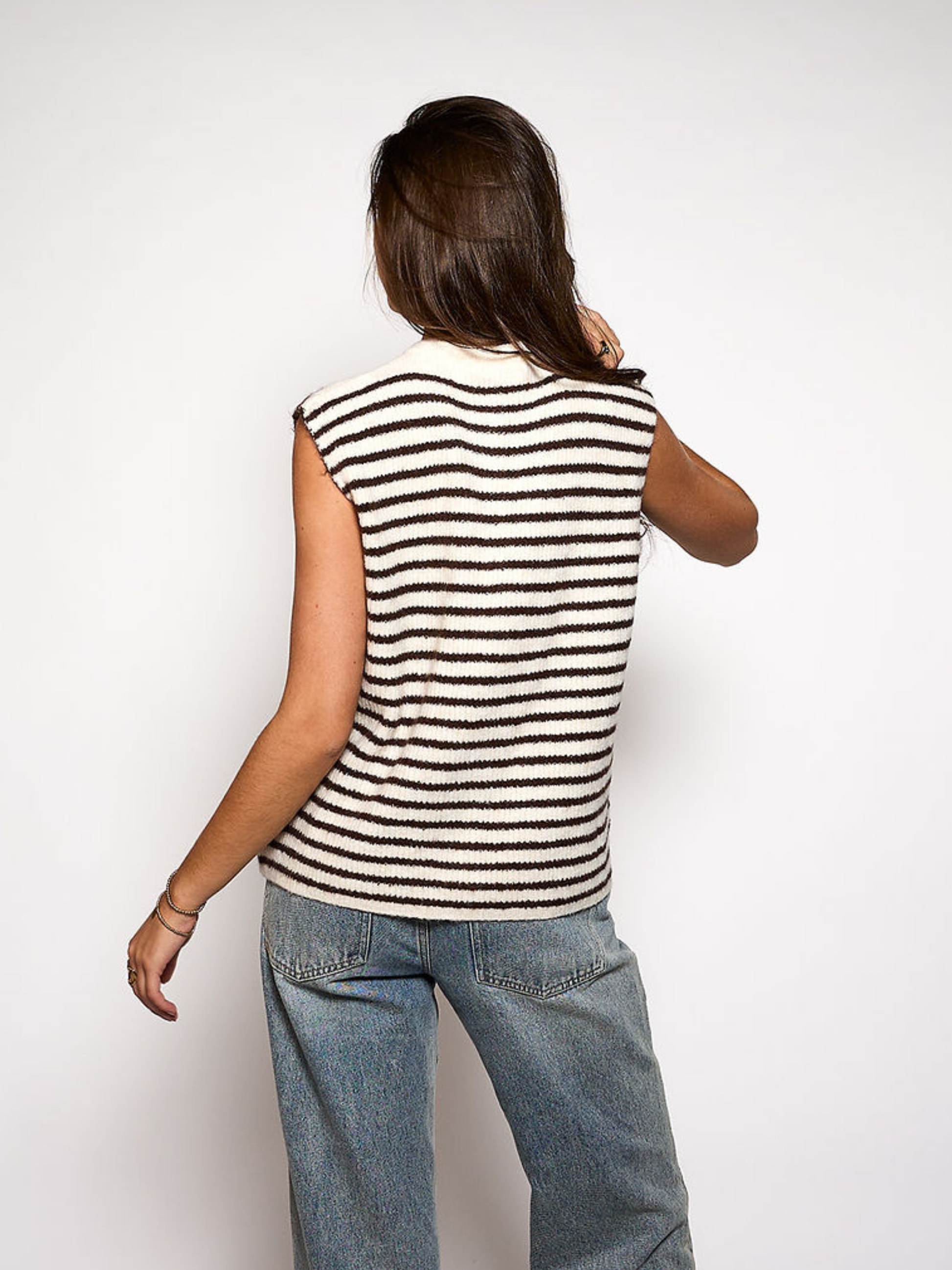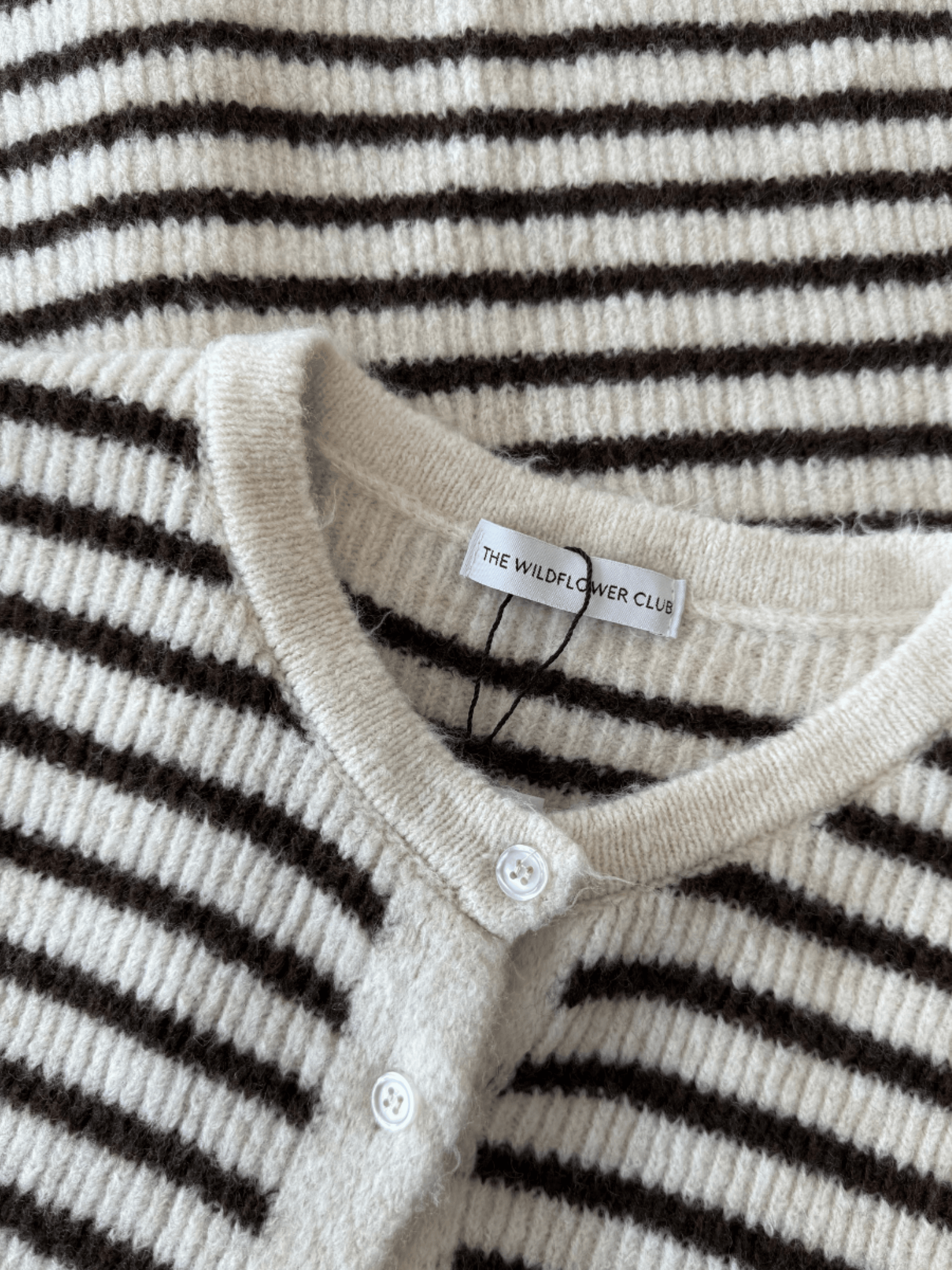 Lola Knitted Spencer with Buttons | White brown striped | Tall