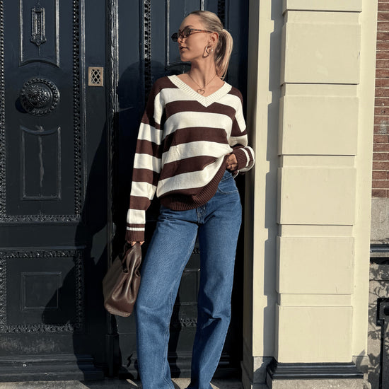 Ella | Knitted sweater | Brown striped | Tall