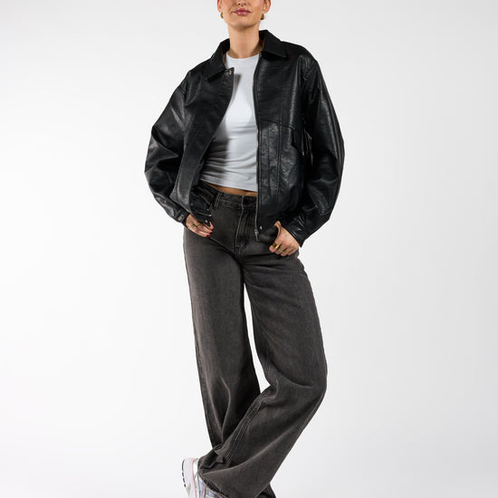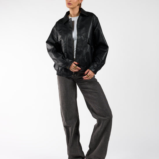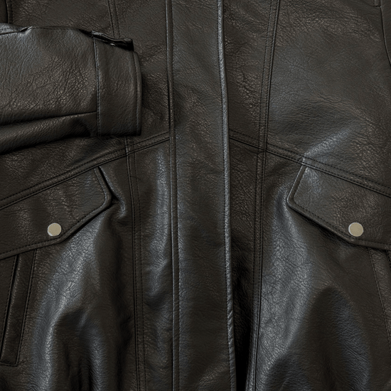 The Loua Leather Jacket is a bold statement piece for tall girls. This leather jacket features an oversized fit, extra-long sleeves, and an elasticated waistband at the bottom for a flattering silhouette. The pockets add an edgy touch, making it not only stylish but also practical. Available in dark brown, black, and burgundy red, you're sure to find the perfect match for your style. A timeless piece that elevates any outfit!