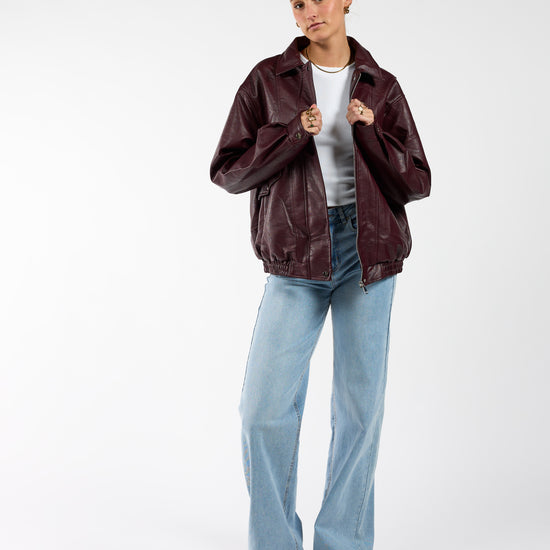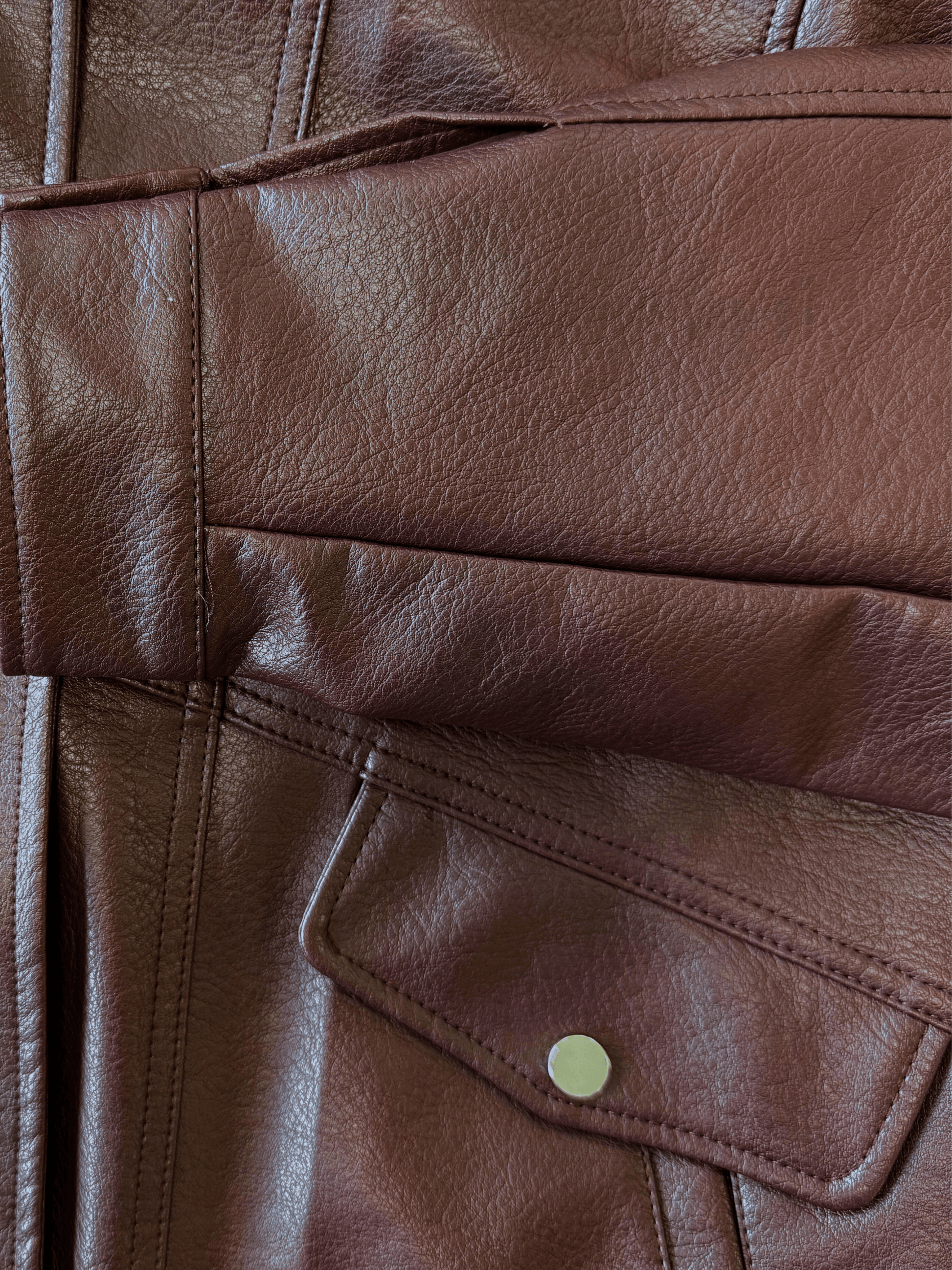 The Loua Leather Jacket is a bold statement piece for tall girls. This leather jacket features an oversized fit, extra-long sleeves, and an elasticated waistband at the bottom for a flattering silhouette. The pockets add an edgy touch, making it not only stylish but also practical. Available in dark brown, black, and burgundy red, you're sure to find the perfect match for your style. A timeless piece that elevates any outfit!