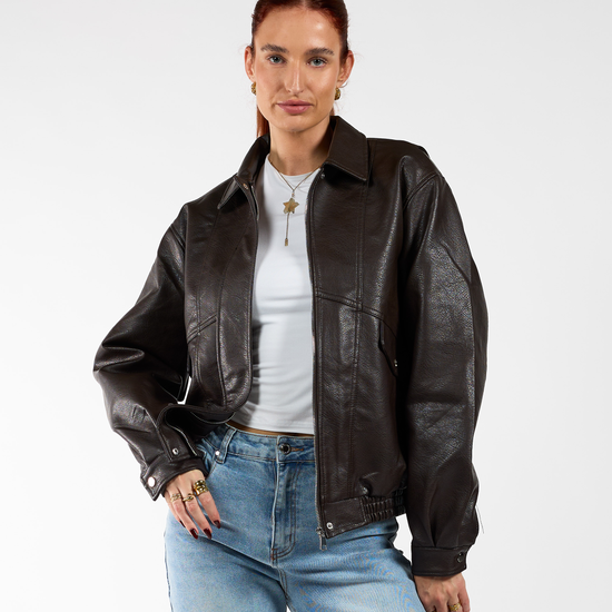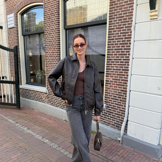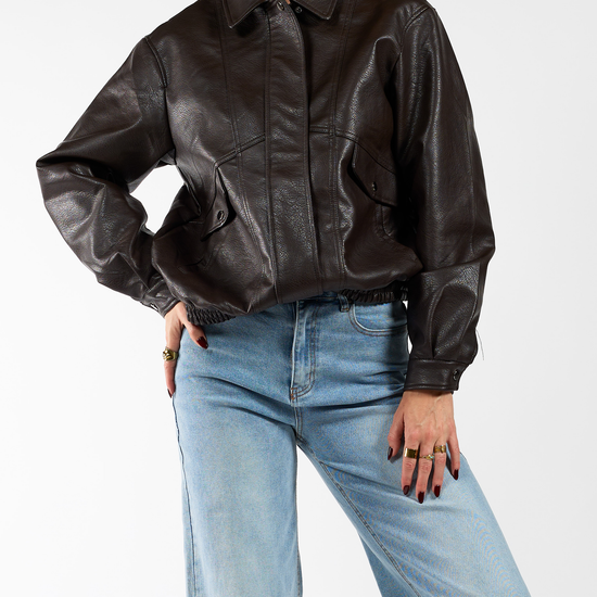 The Loua Leather Jacket is a bold statement piece for tall girls. This leather jacket features an oversized fit, extra-long sleeves, and an elasticated waistband at the bottom for a flattering silhouette. The pockets add an edgy touch, making it not only stylish but also practical. Available in dark brown, black, and burgundy red, you're sure to find the perfect match for your style. A timeless piece that elevates any outfit!