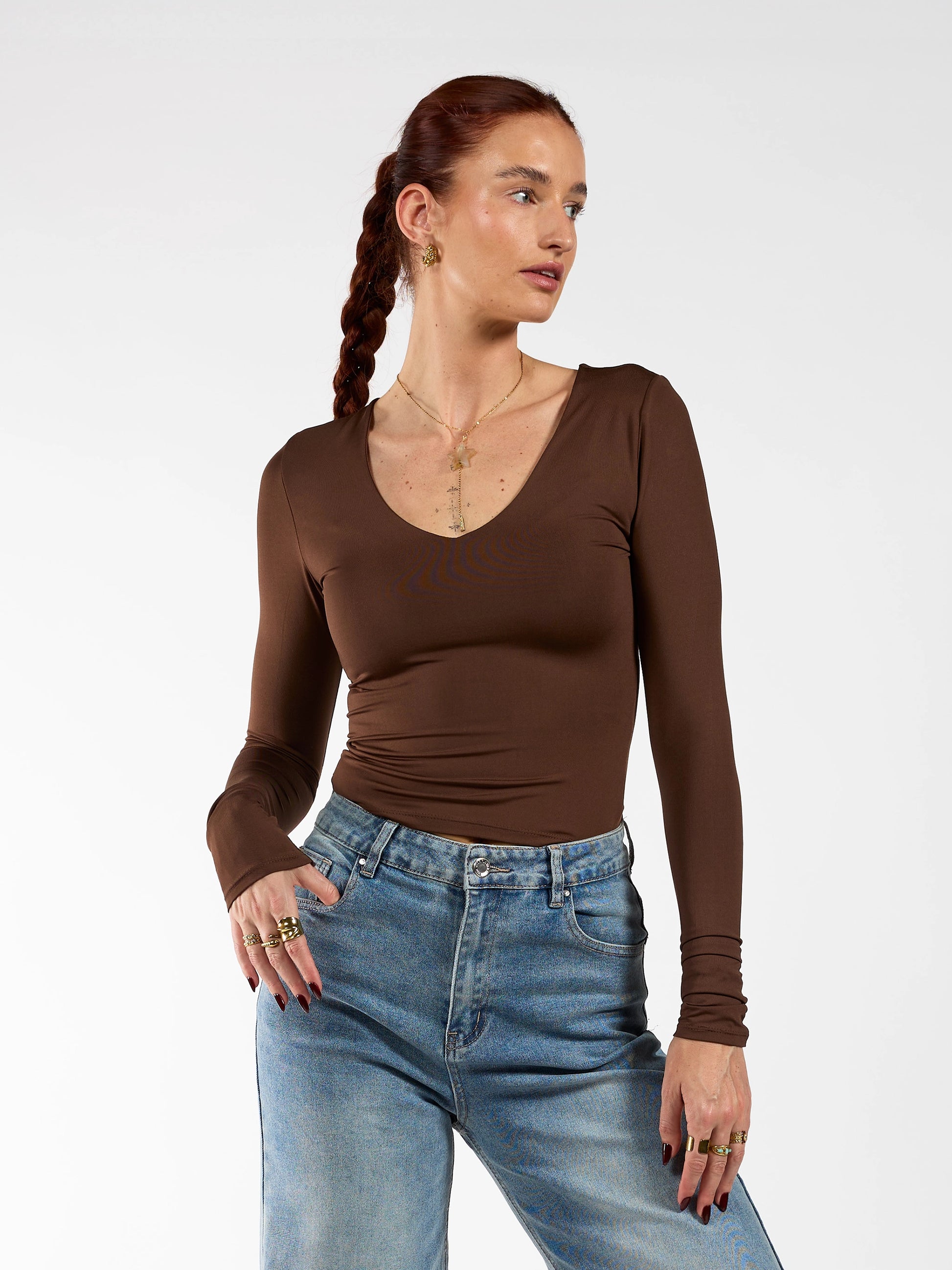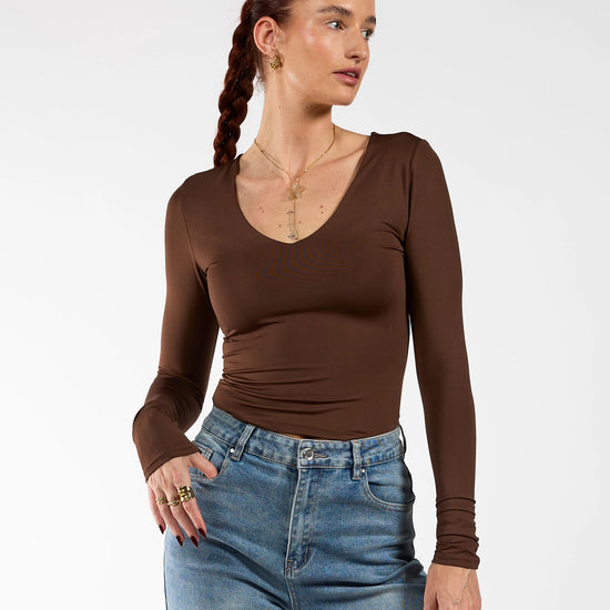 The Lovi V-Top is an essential for tall girls who love comfort and style. This double-lined, long-sleeved top with a V-neck fits beautifully and is opaque. Its mega-stretchy and figure-hugging fit is both flattering and comfortable. The semi-cropped length and extra-long sleeves make it perfect for tall girls!
