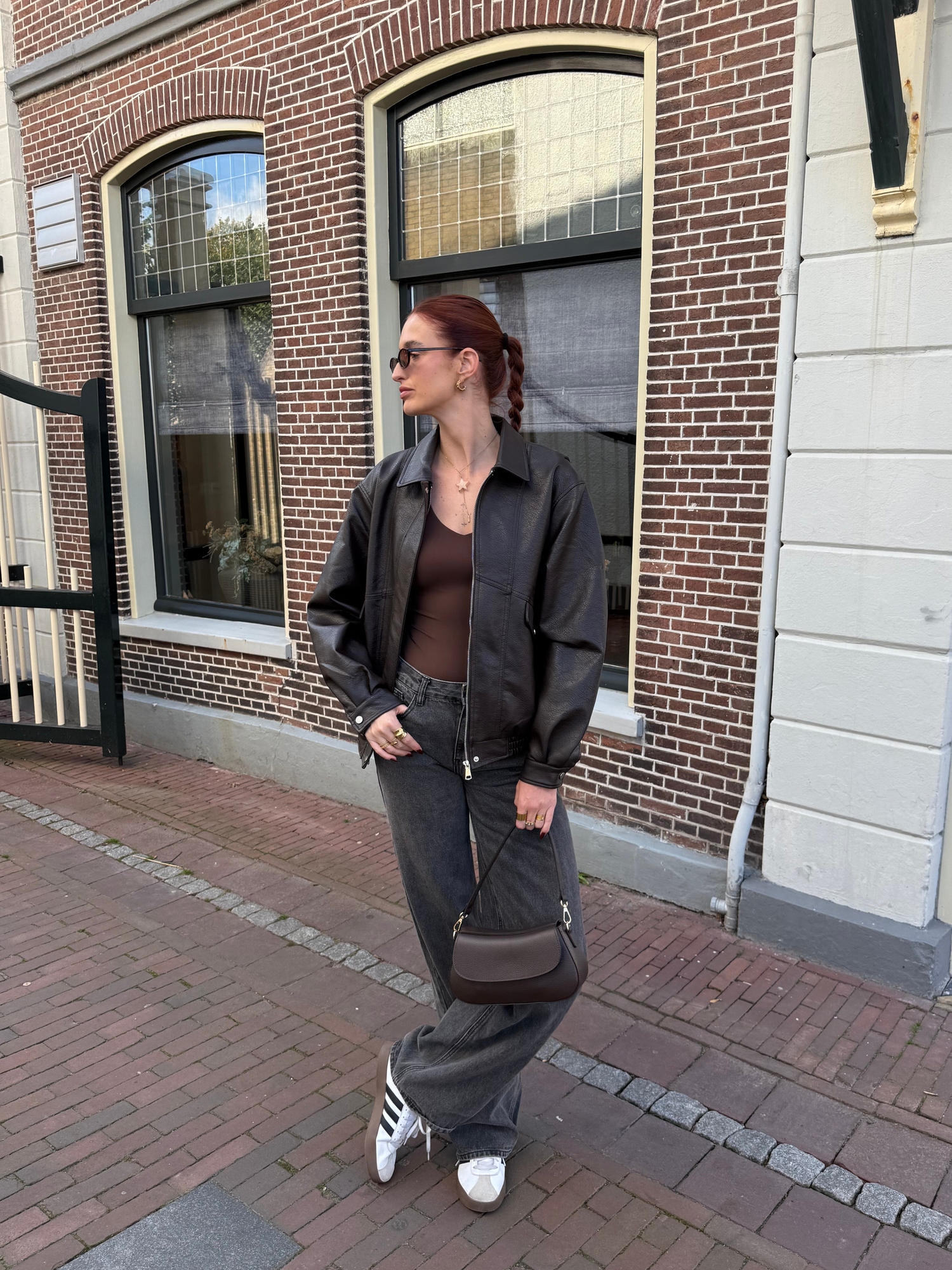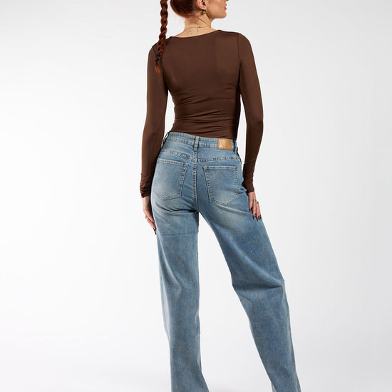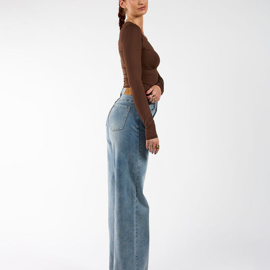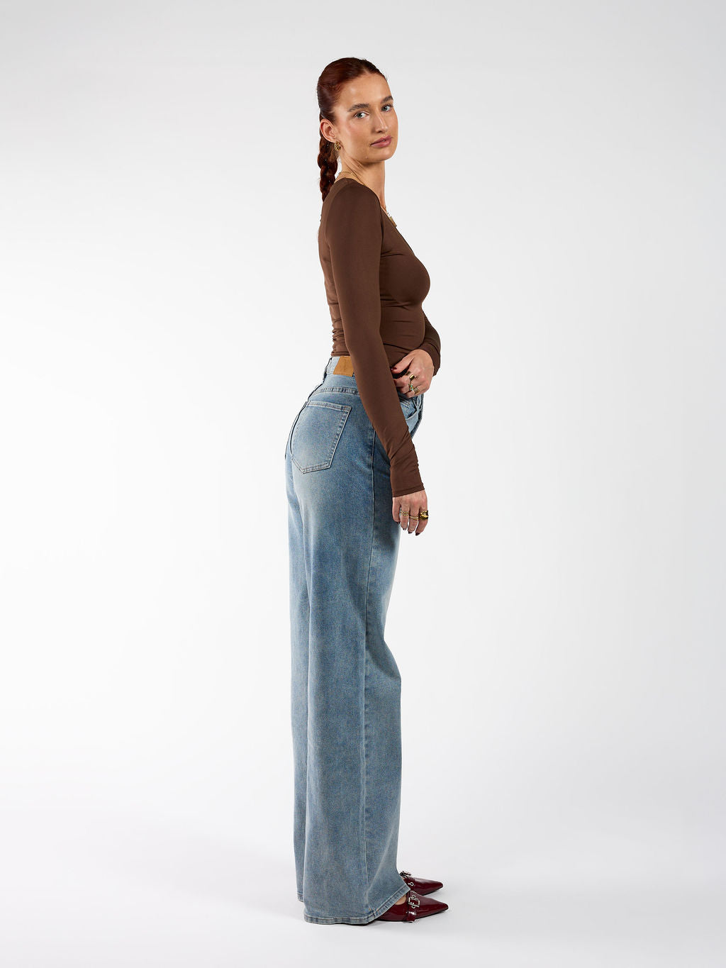 Jade Super Wide Leg Jeans | Mid waist | Dark gray |