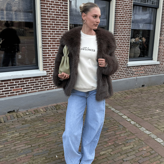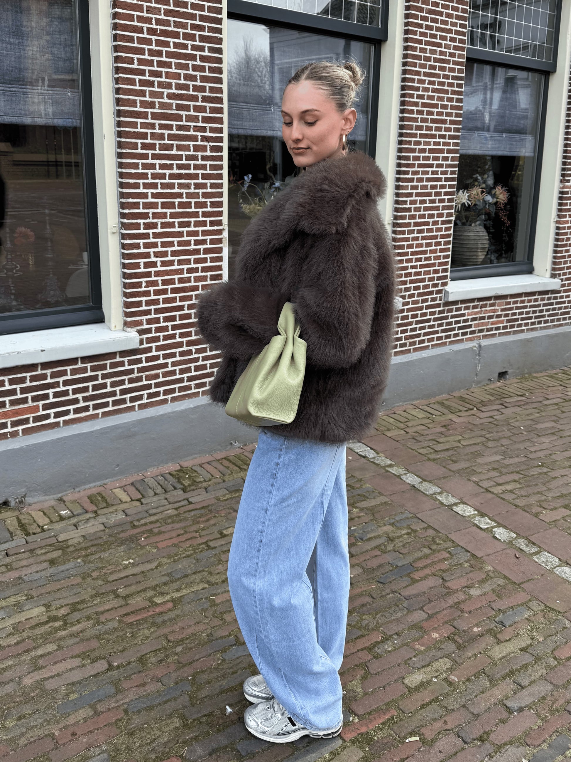The Lune Fur Jacket is the ultimate cozy must-have for this season. Crafted from wonderfully soft faux fur, it has a luxurious look that will stylishly upgrade any outfit. Its short, oversized fit makes it perfect for pairing with high-waisted jeans or stylish trousers.