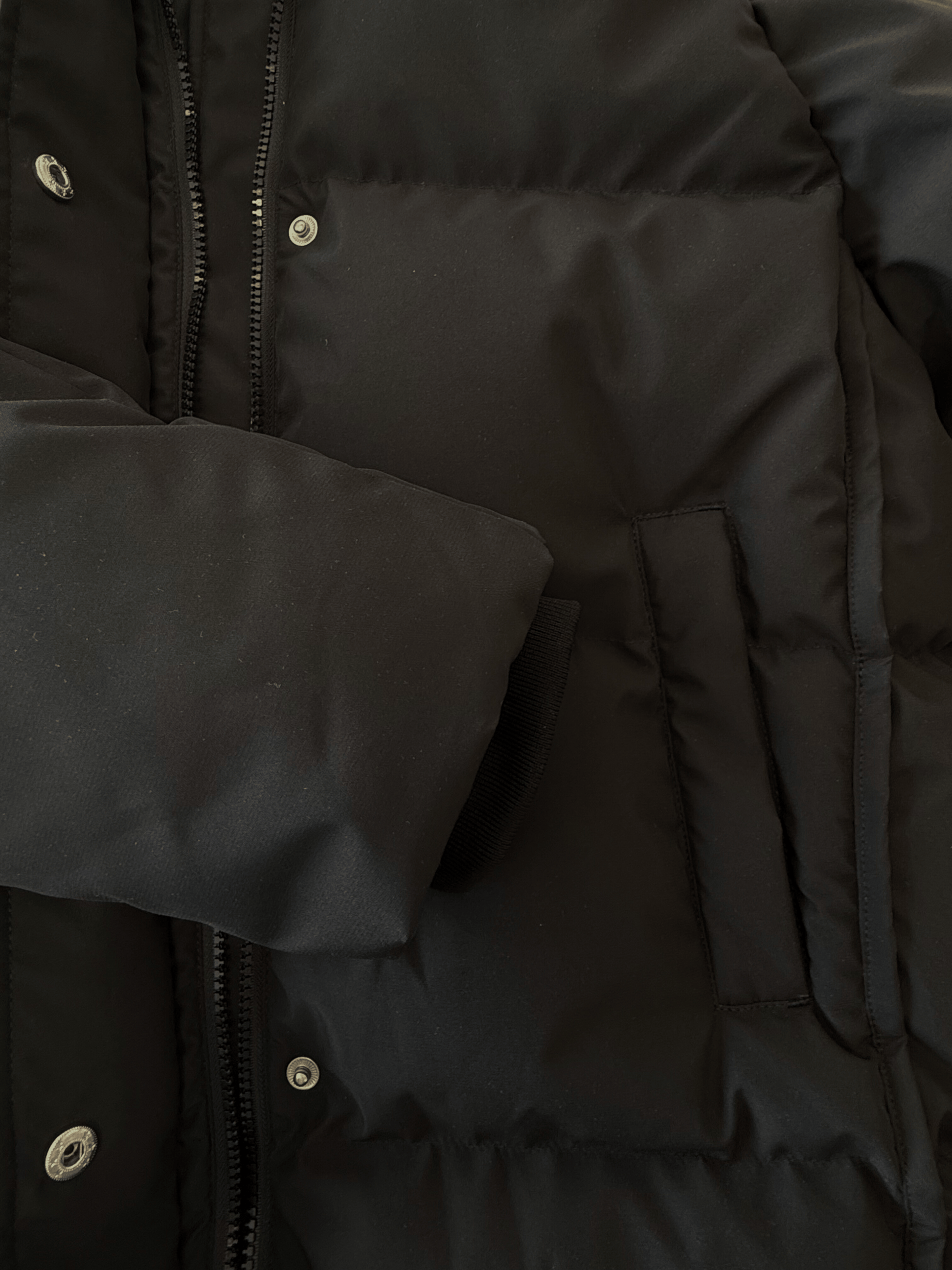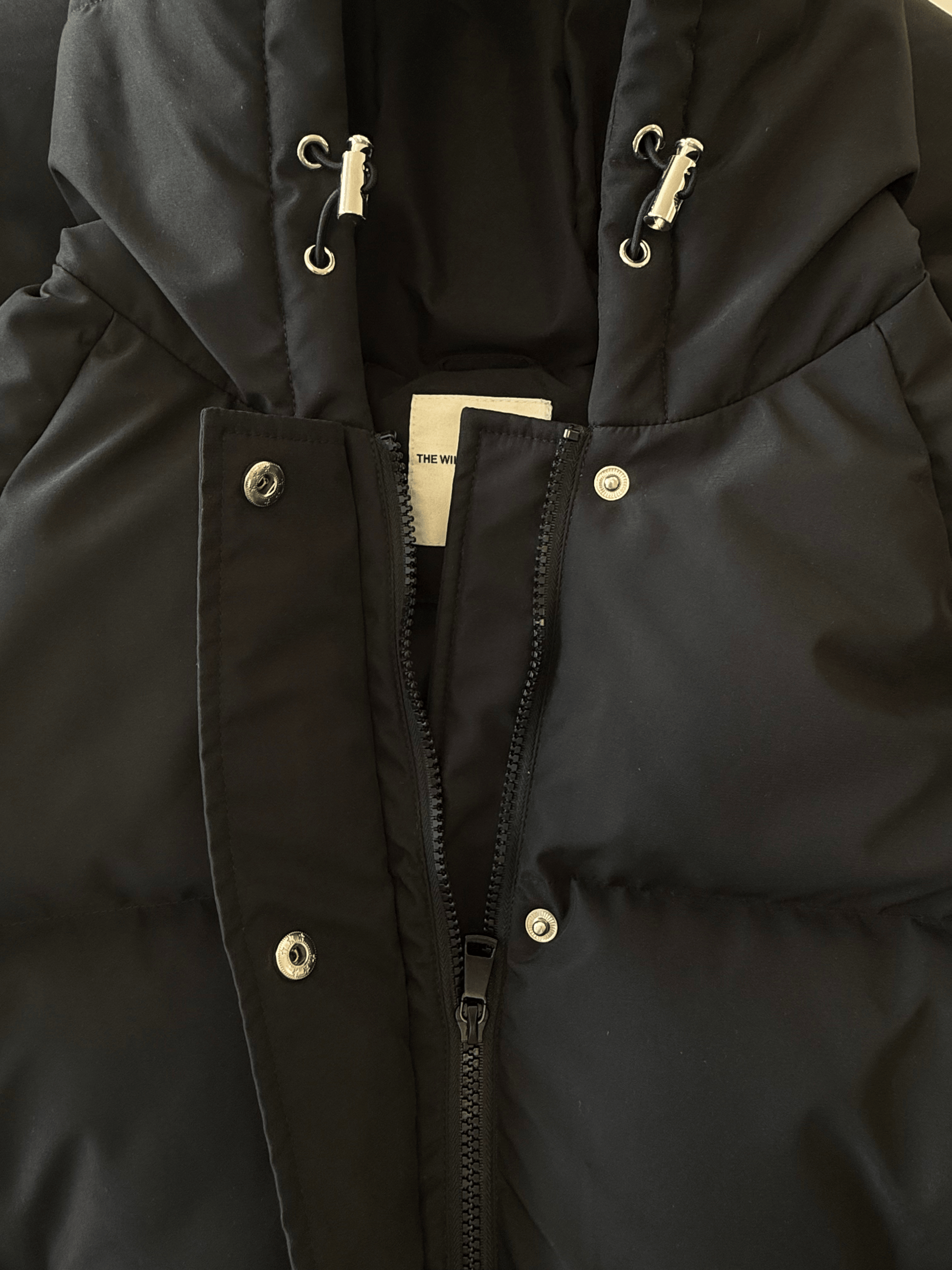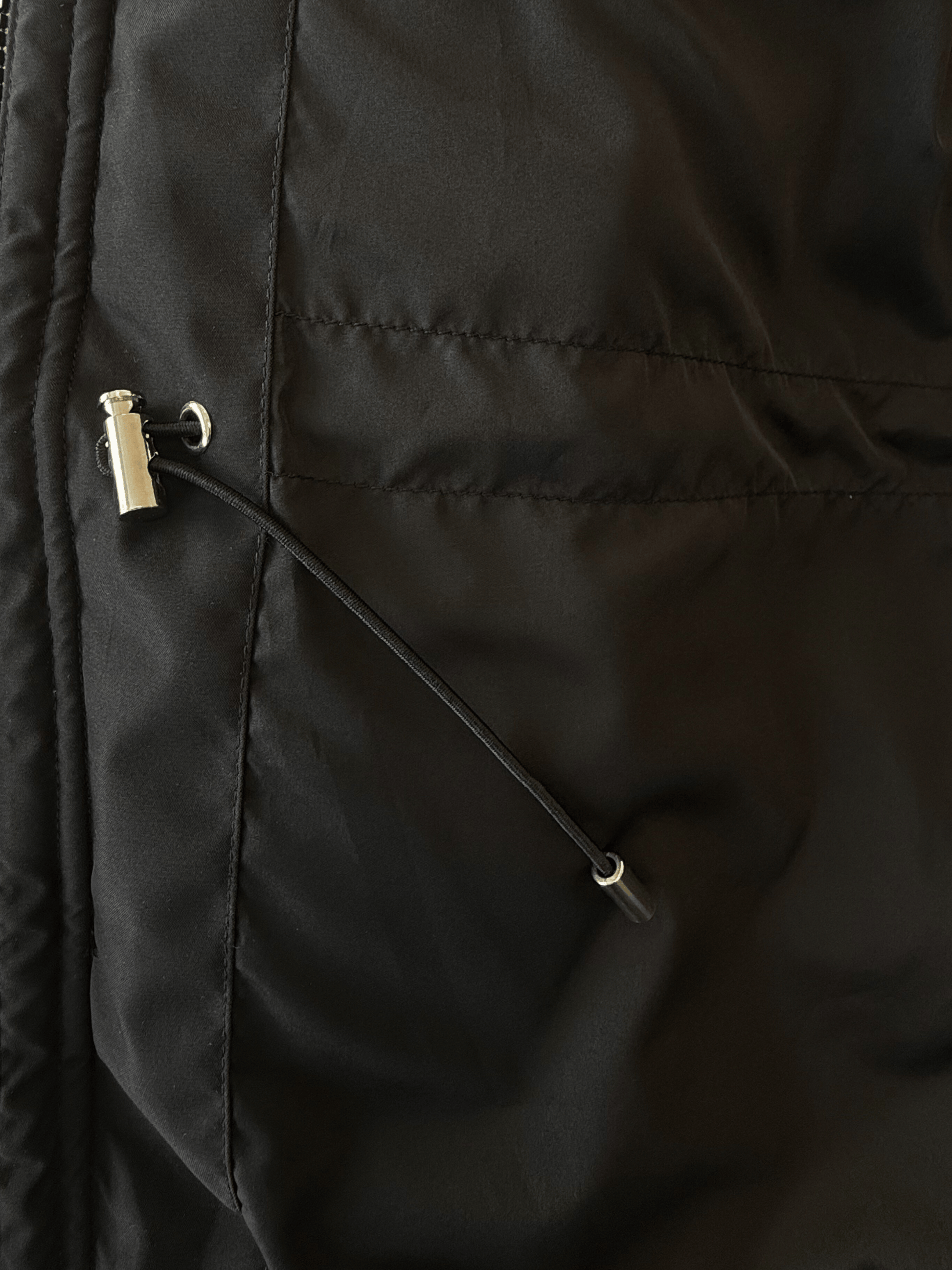 The ultimate winter coat for tall women seeking style and comfort! This black coat is designed with length and fit in mind. The adjustable waist allows for a flattering, tailored fit from the inside. The hood protects you from the elements, while the handy zip pockets securely store your essentials. The wind-catching cuffs keep you extra warm. The coat is specially designed for tall women.