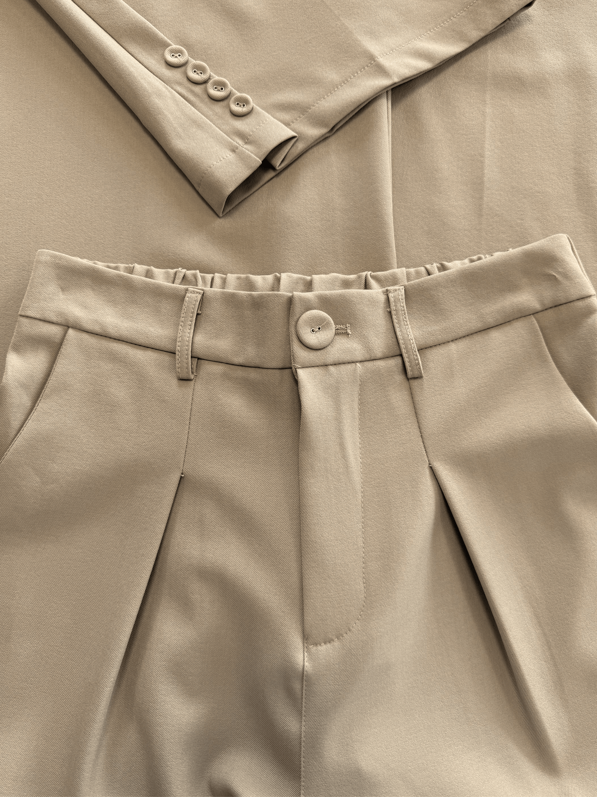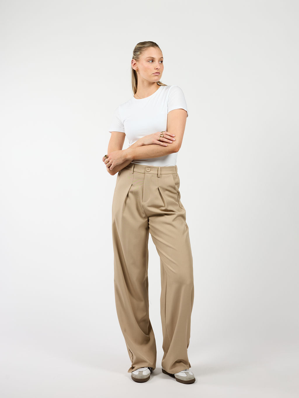 The Mae trousers are the perfect blend of style and comfort. The straight leg and high waist give an elegant, timeless look, while the elastic at the back of the waistband ensures a comfortable and flexible fit. Pleats from the waist subtly accentuate the fit and give the trousers an extra feminine touch.