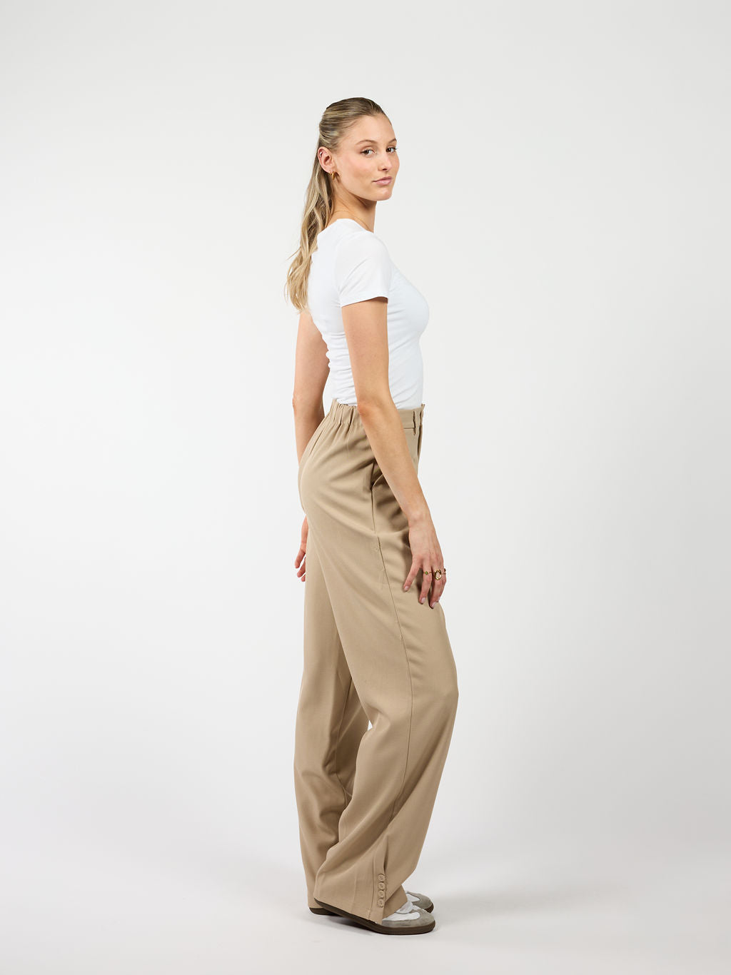 The flowing fabric moves beautifully with you, making these trousers wonderfully comfortable to wear. Whether you have a long workday or a dinner party planned. As a playful detail, the trouser legs are finished with buttons at the bottom. A stylish detail that adds that little extra.