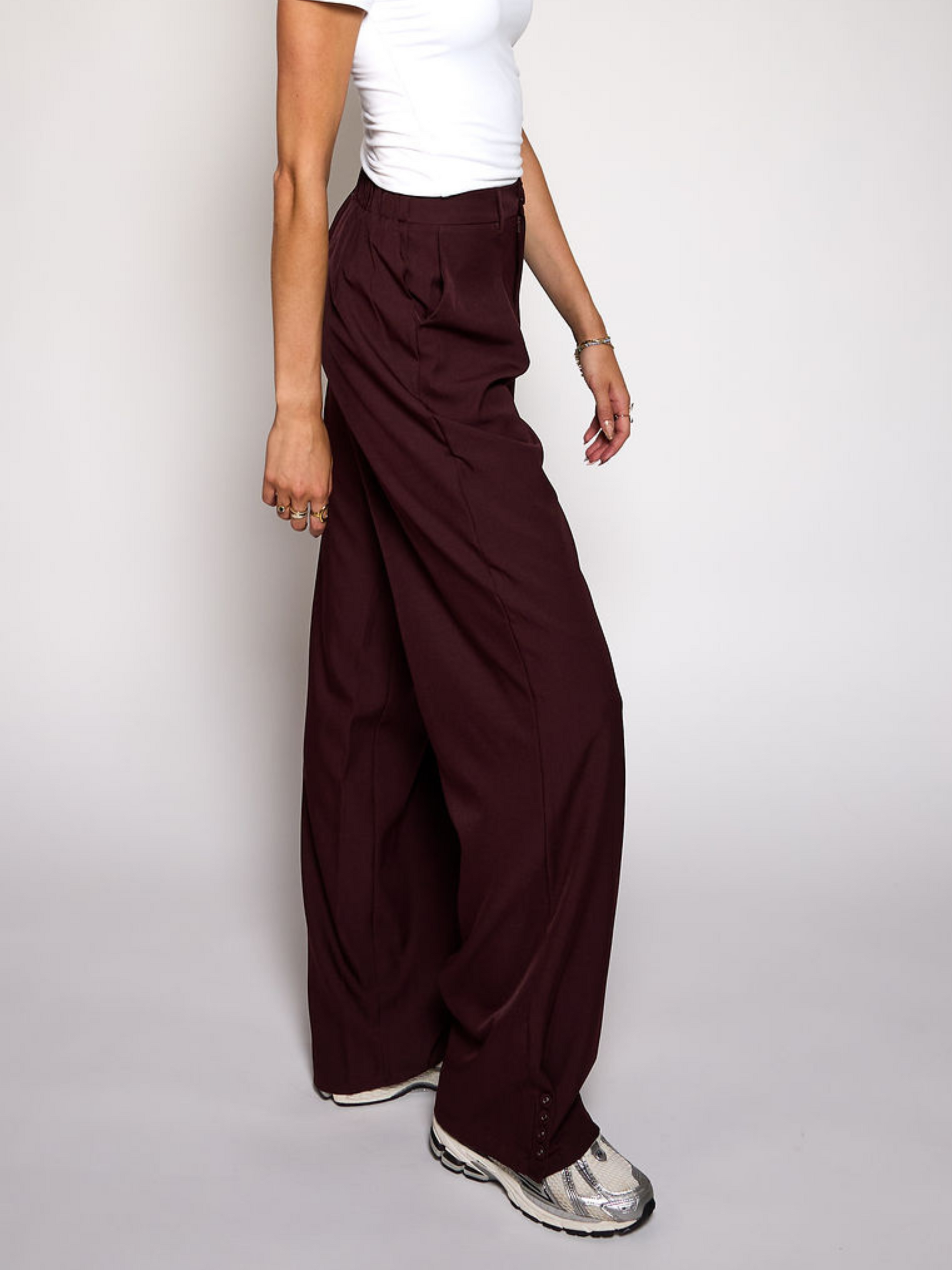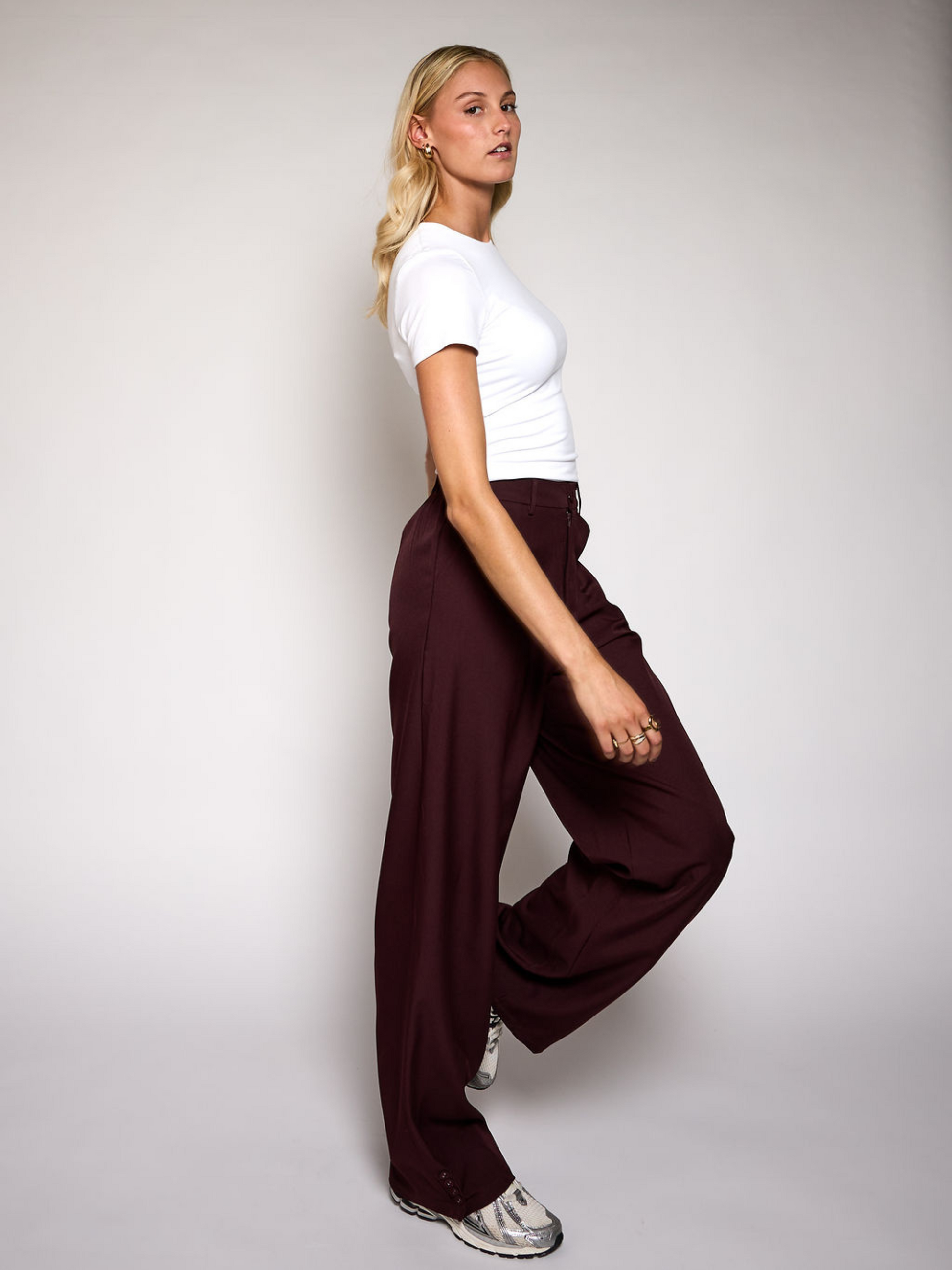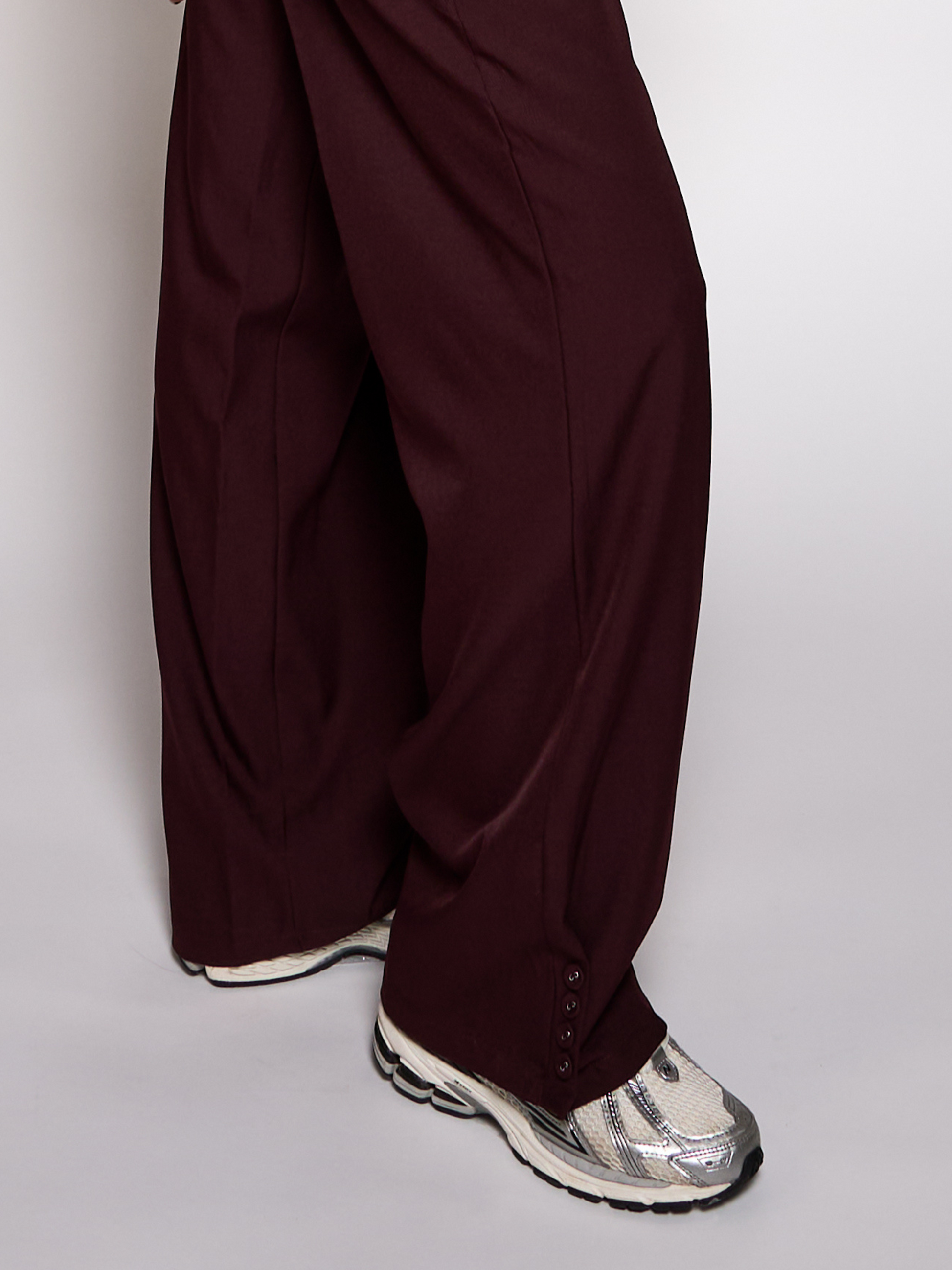 The softly flowing fabric flows beautifully with you, making these trousers incredibly comfortable to wear. Whether you have a long workday or a dinner date planned. As a playful detail, the legs are finished with buttons at the hems. A stylish detail that adds that extra touch.