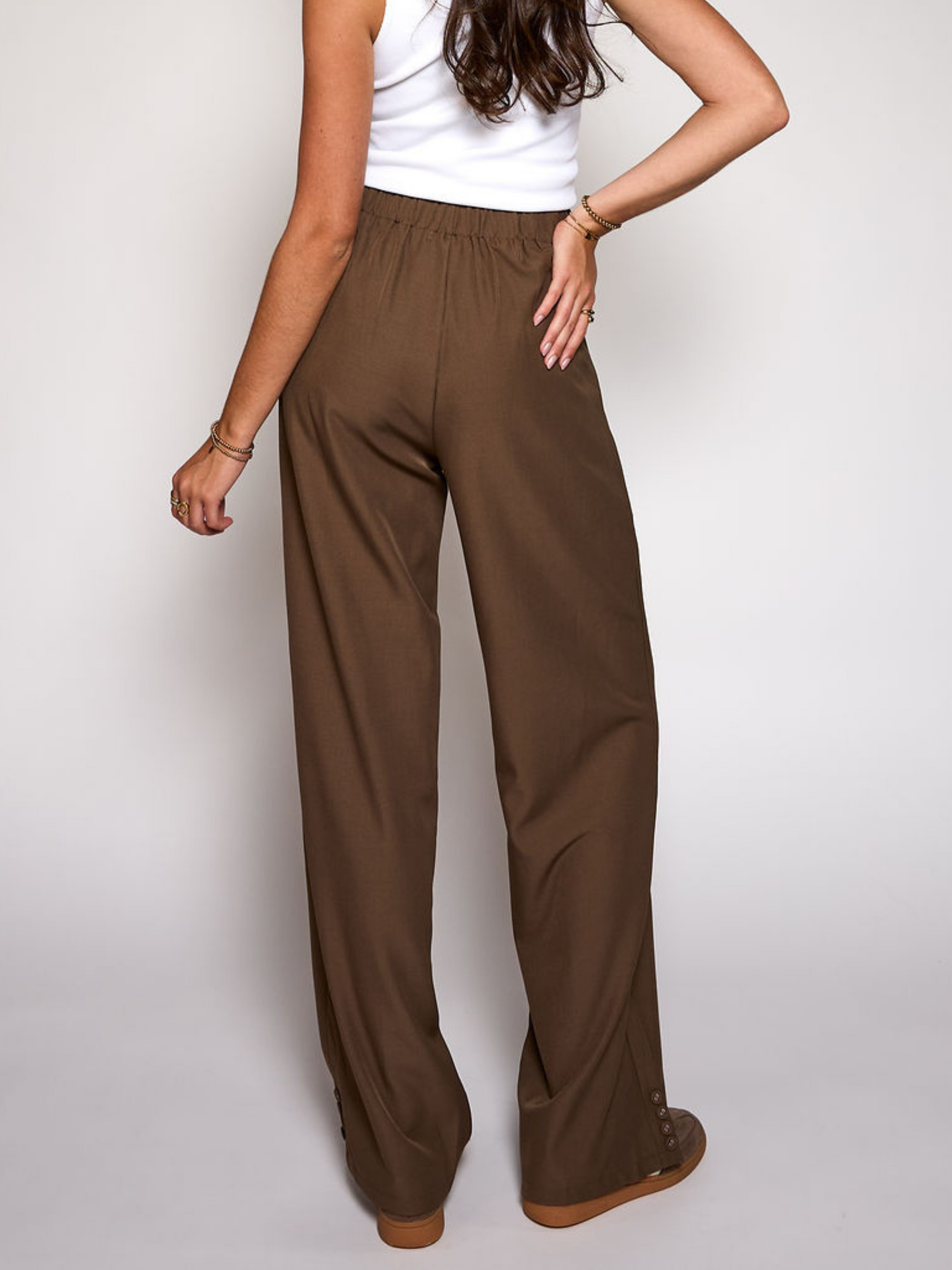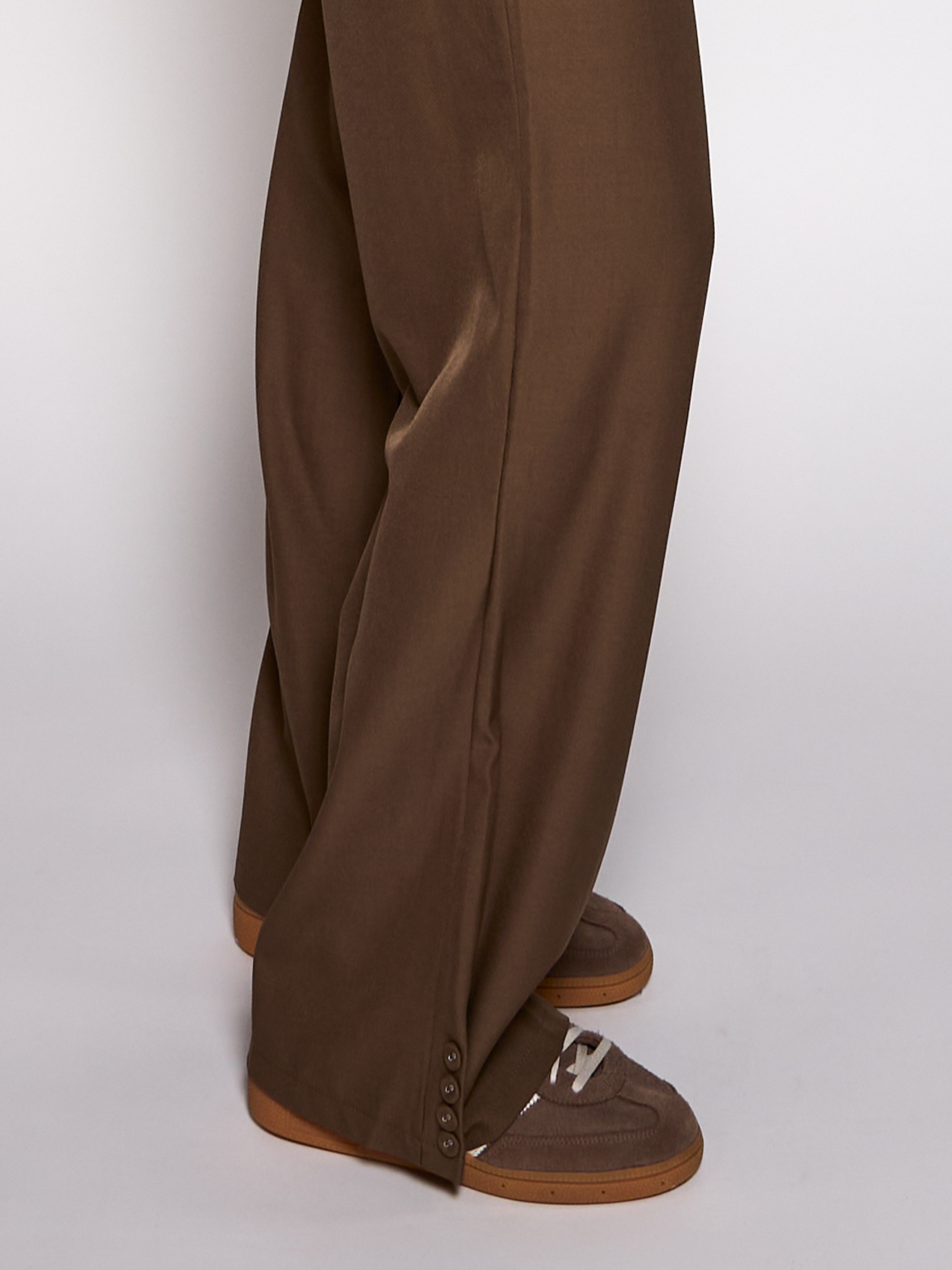 The softly flowing fabric flows beautifully with you, making these trousers incredibly comfortable to wear. Whether you have a long workday or a dinner date planned. As a playful detail, the legs are finished with buttons at the hems. A stylish detail that adds that extra touch.