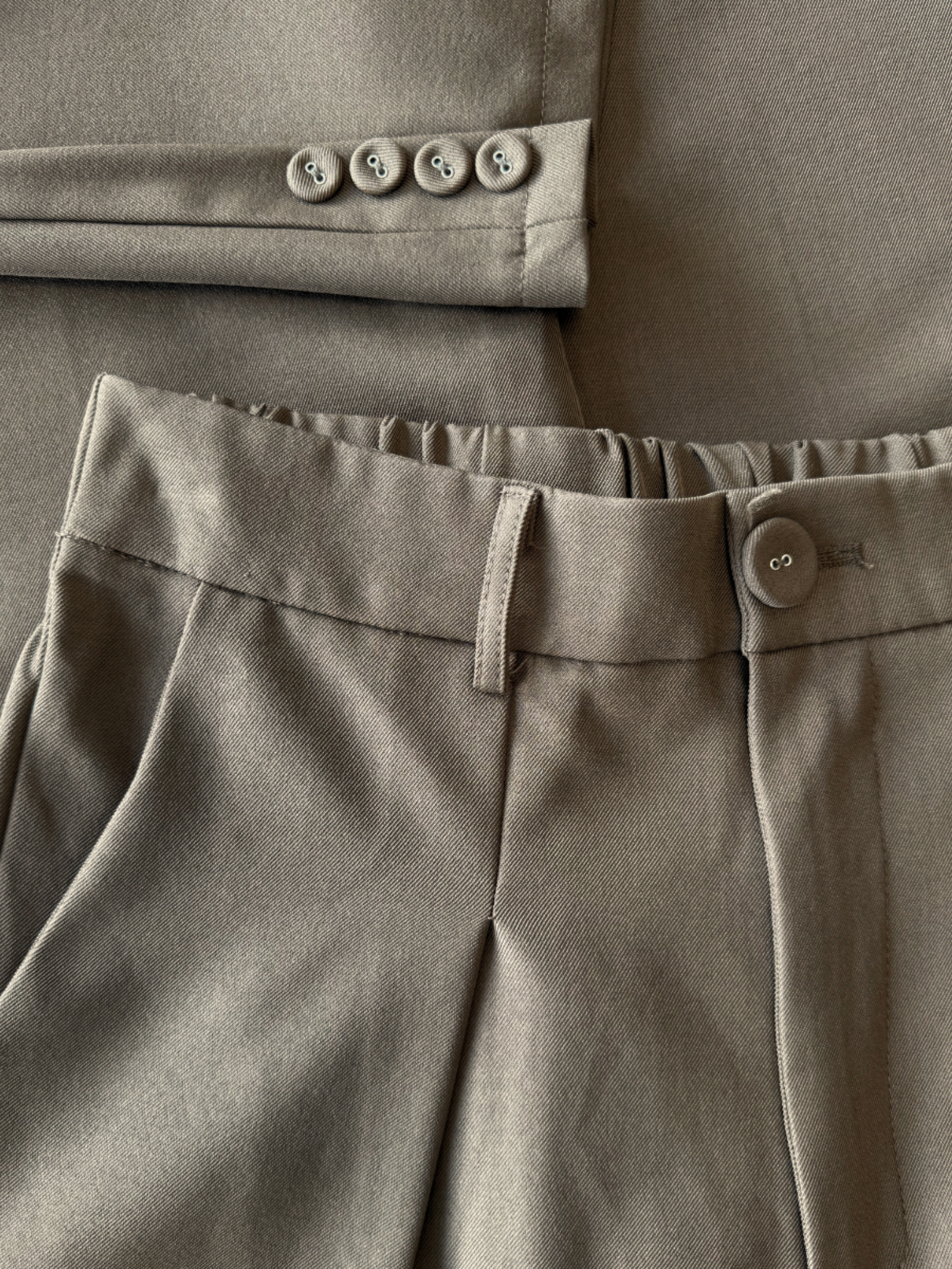 Our latest trousers are the perfect blend of style and comfort. The straight leg and high waist create an elegant, timeless look, while the elastic at the back waistband ensures a comfortable and flexible fit. Pleats from the waist subtly accentuate the fit and give the trousers an extra feminine touch.