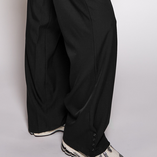 De soepel vallende stof beweegt mooi met je mee, waardoor deze pantalon heerlijk draagt. Of je nu een lange werkdag hebt of een etentje op de planning staat. Als speels detail zijn de broekspijpen afgewerkt met knoopjes aan de onderkant. Een stijlvol detail dat net dat beetje extra geeft.
