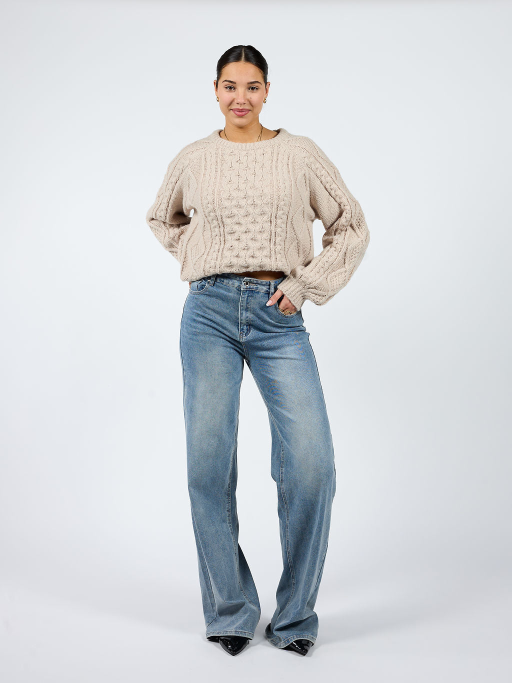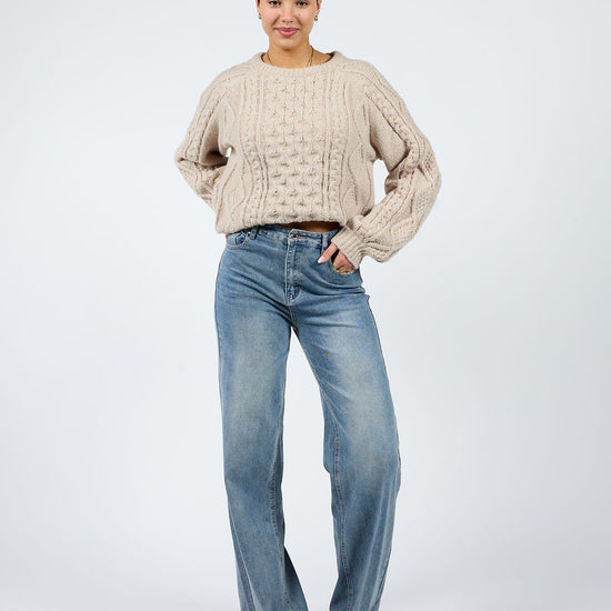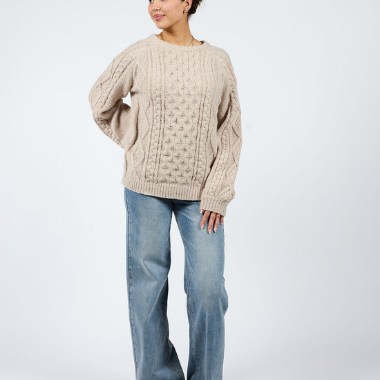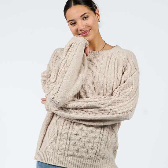 The Mira Cable Knit is the chunky knit you'll want to wear all winter long The chunky cable knit gives the sweater a warm, cozy feel, while the round, chunky neckline creates a soft and modern look.