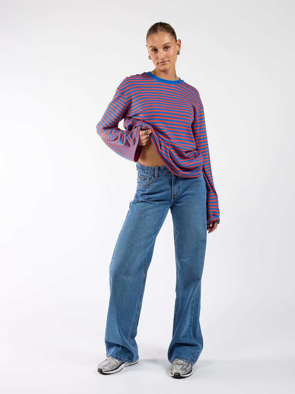 Nine Tee | Wide-sleeved | Striped blue and orange | Tall