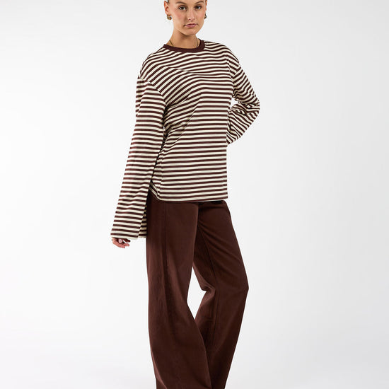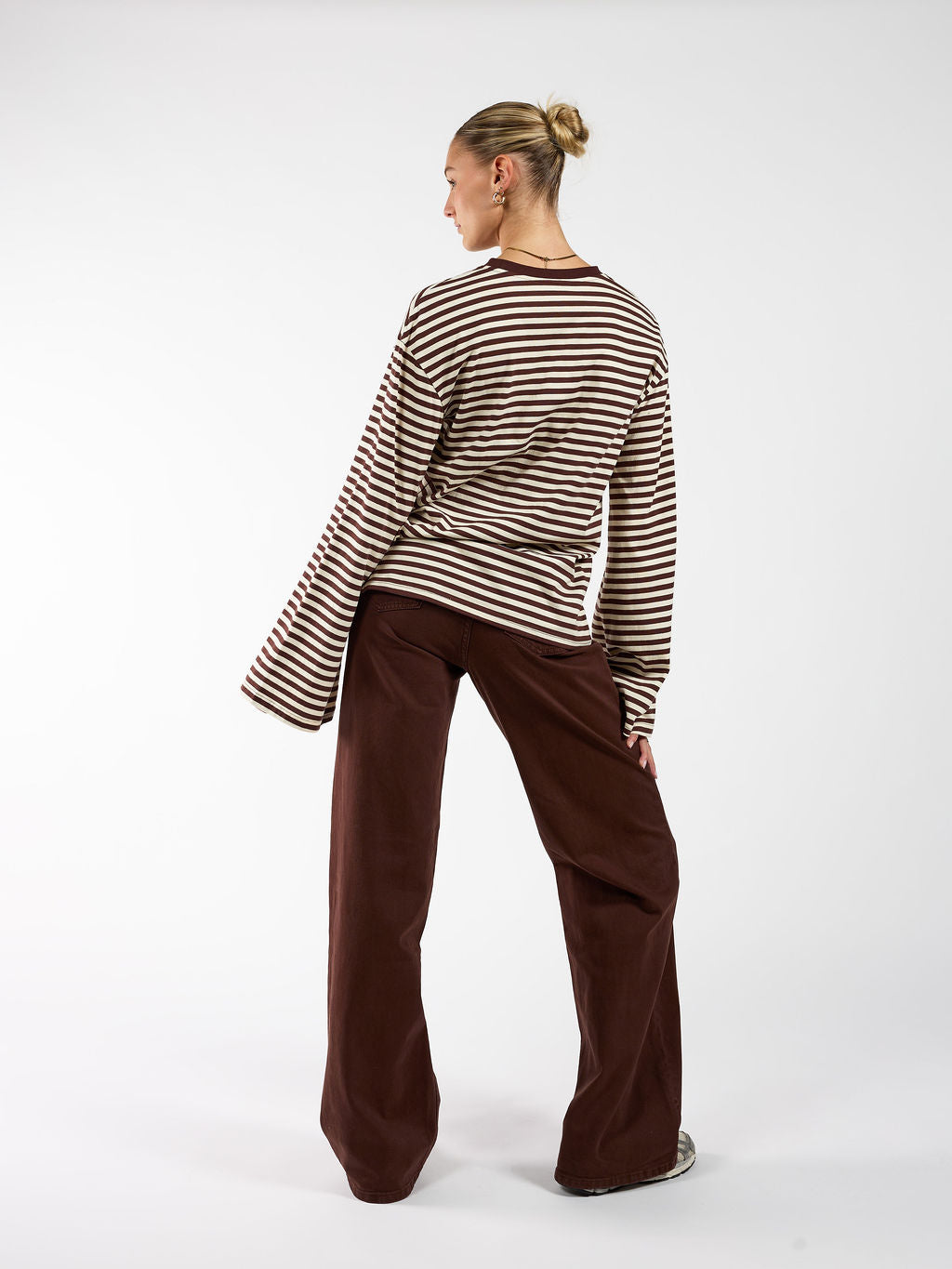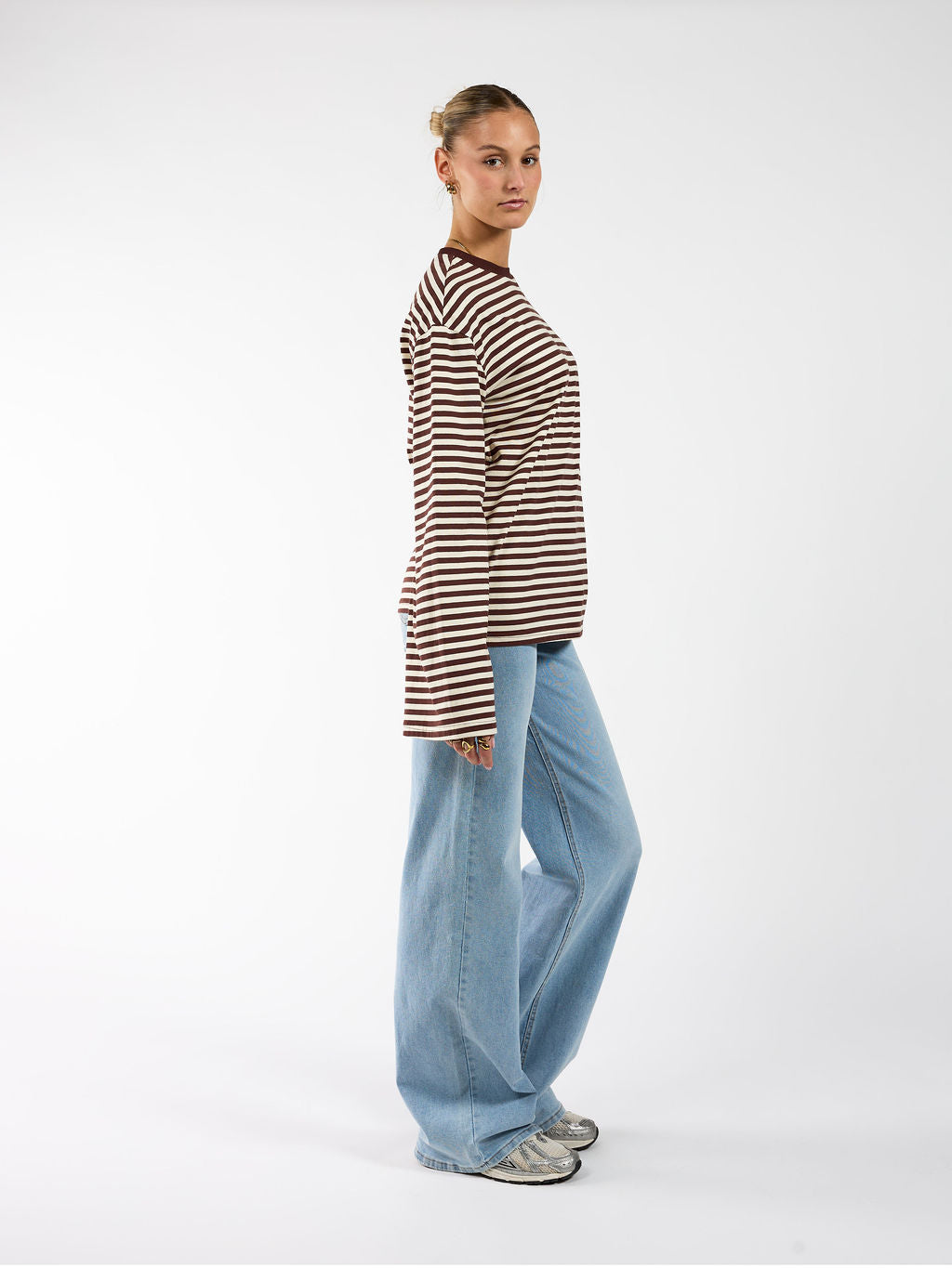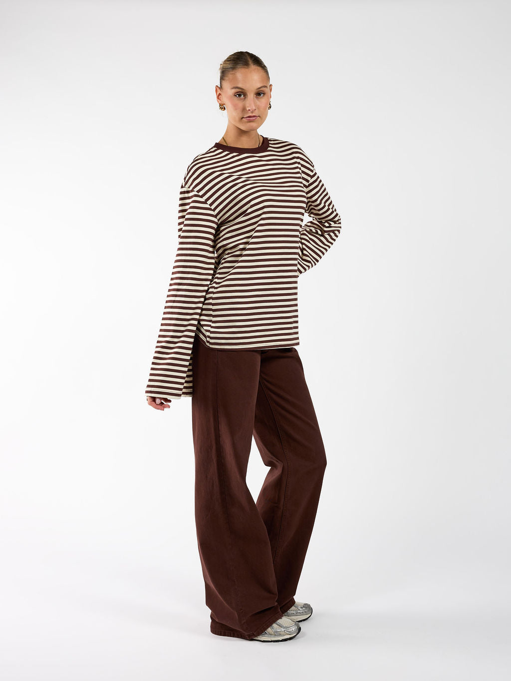 This cream and brown striped tee is a must-have for your tall wardrobe. Made from a soft, comfortable fabric, it features extra-long, wide-sleeved details for a playful, feminine touch.