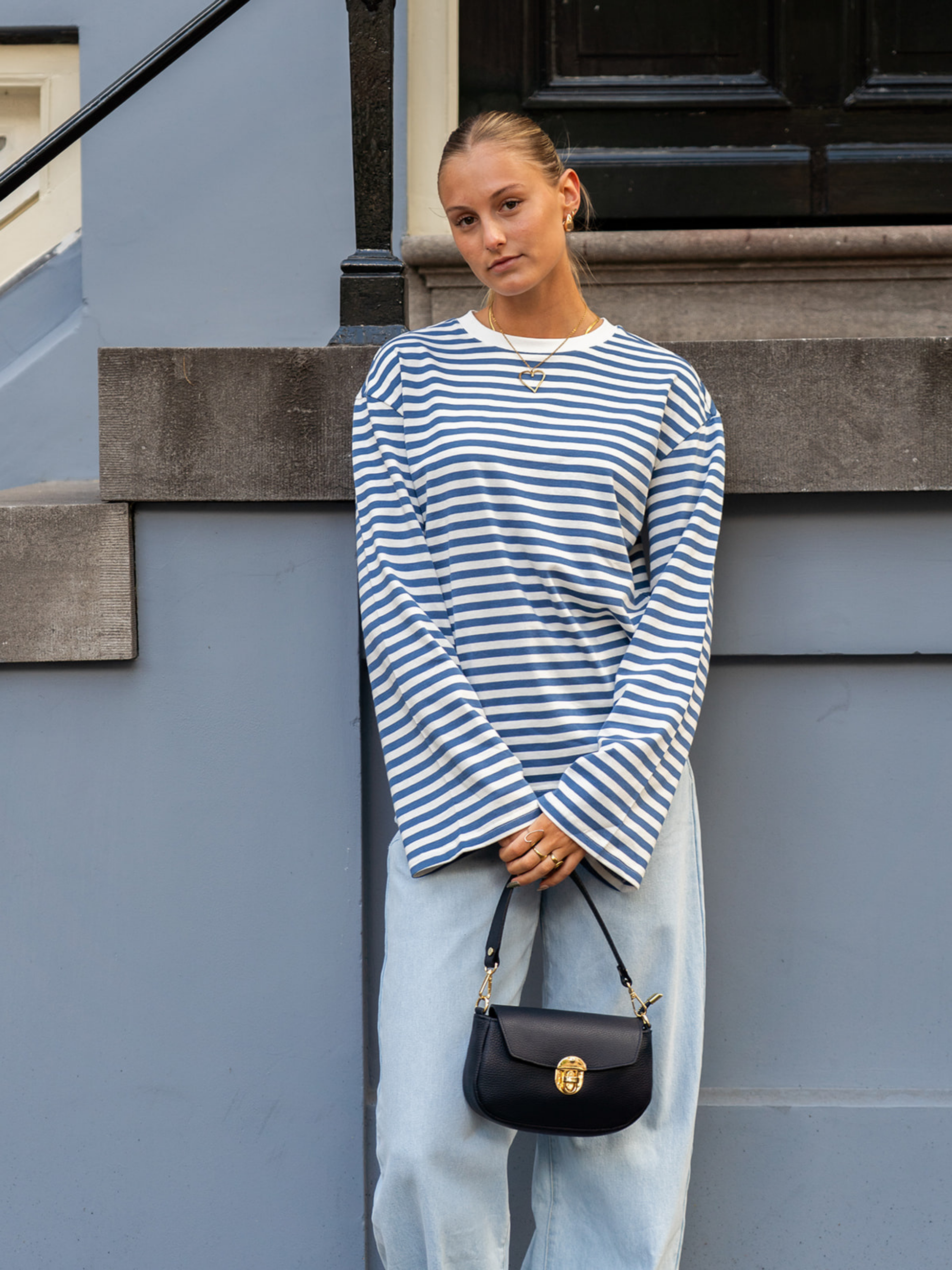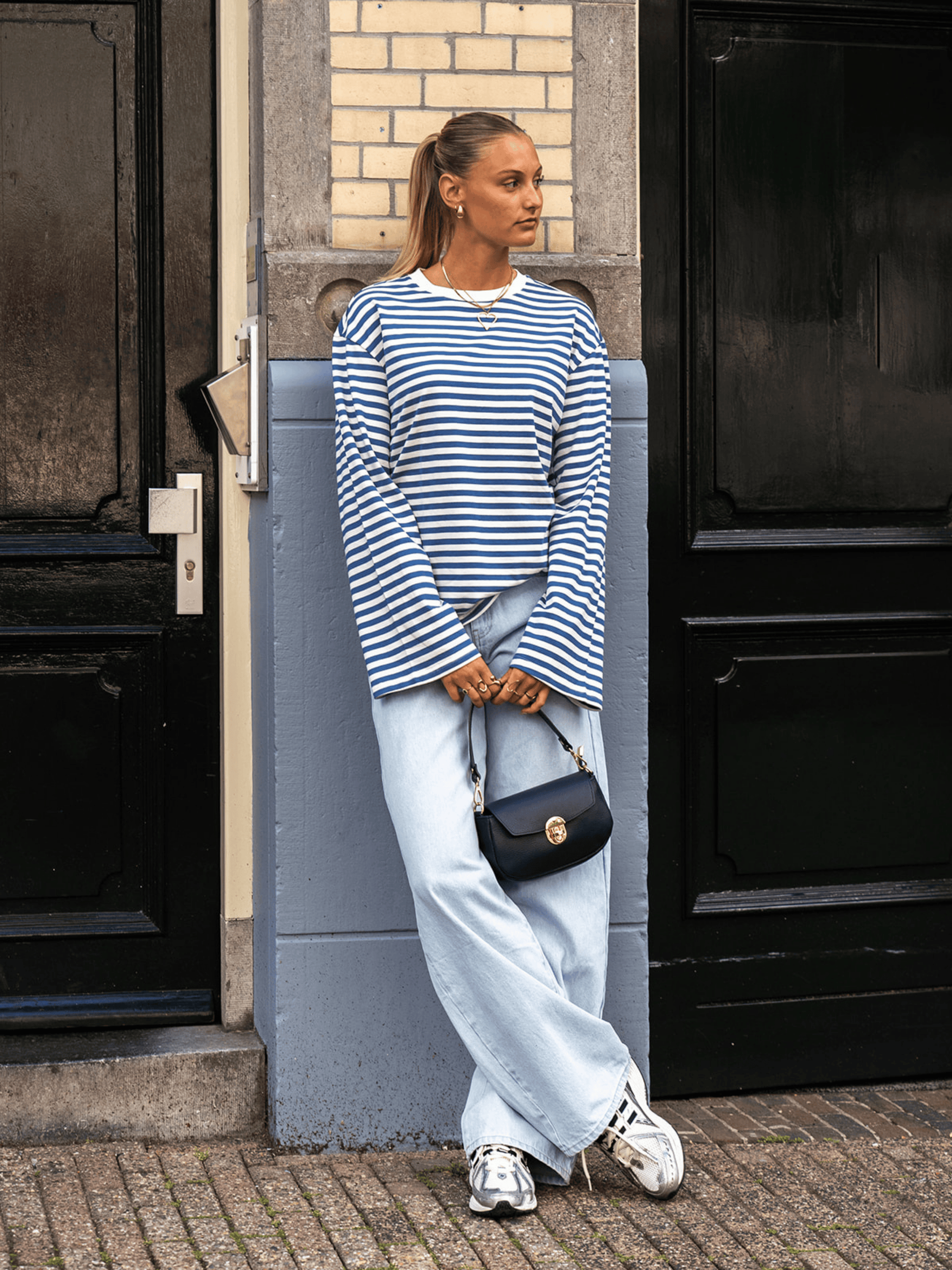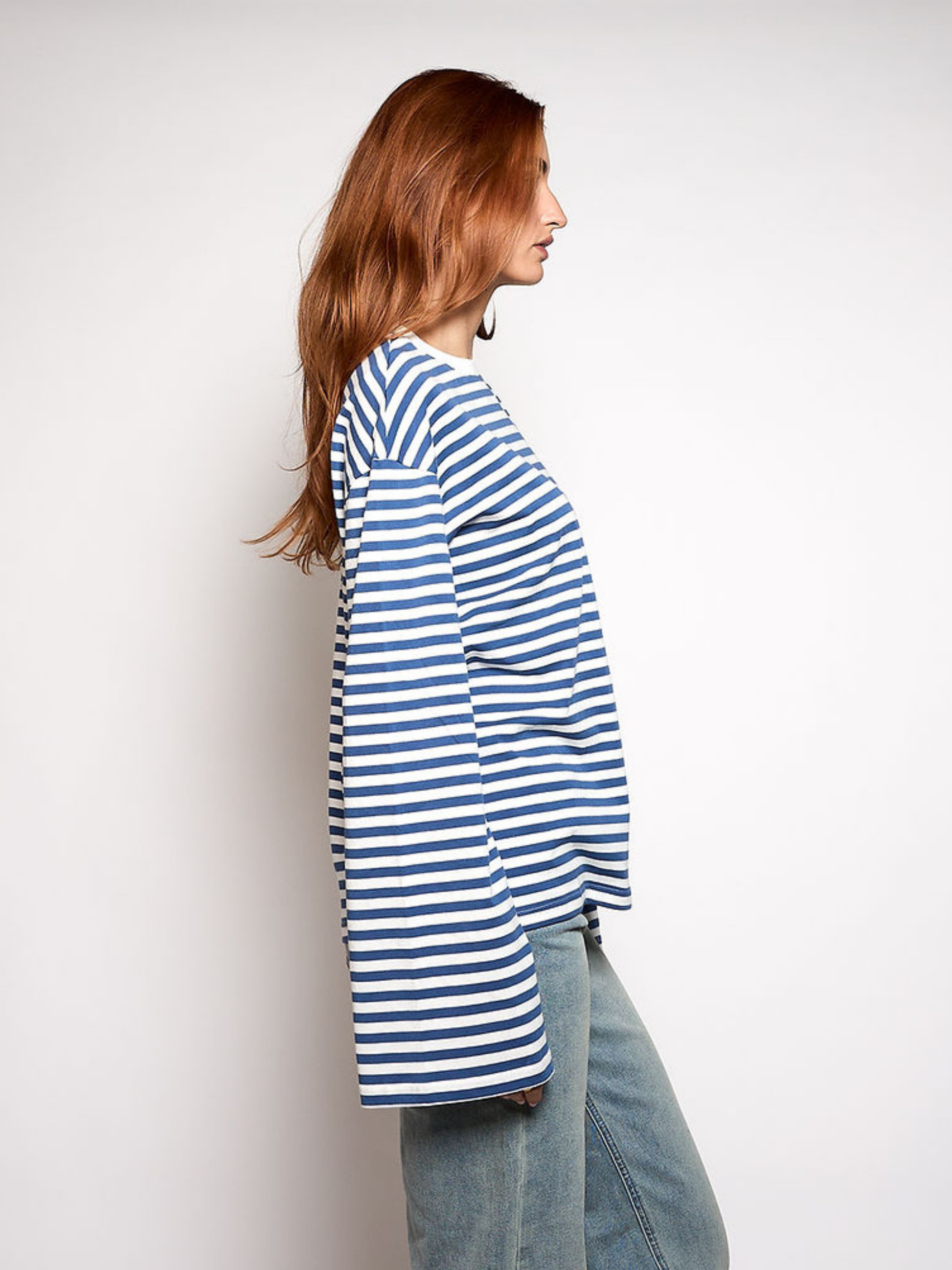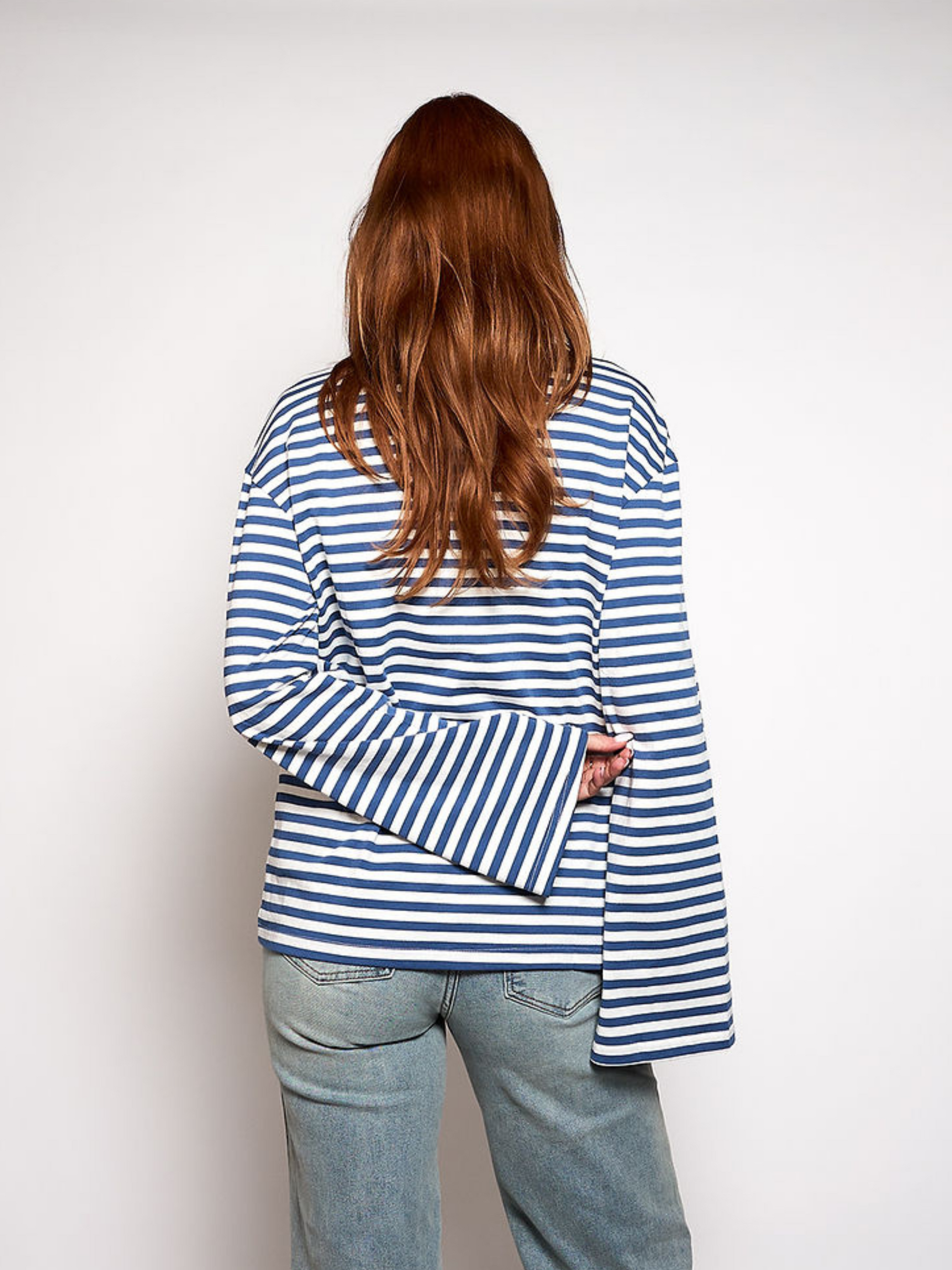 Nine Tee | Flared Sleeve | Striped White Blue | Tall