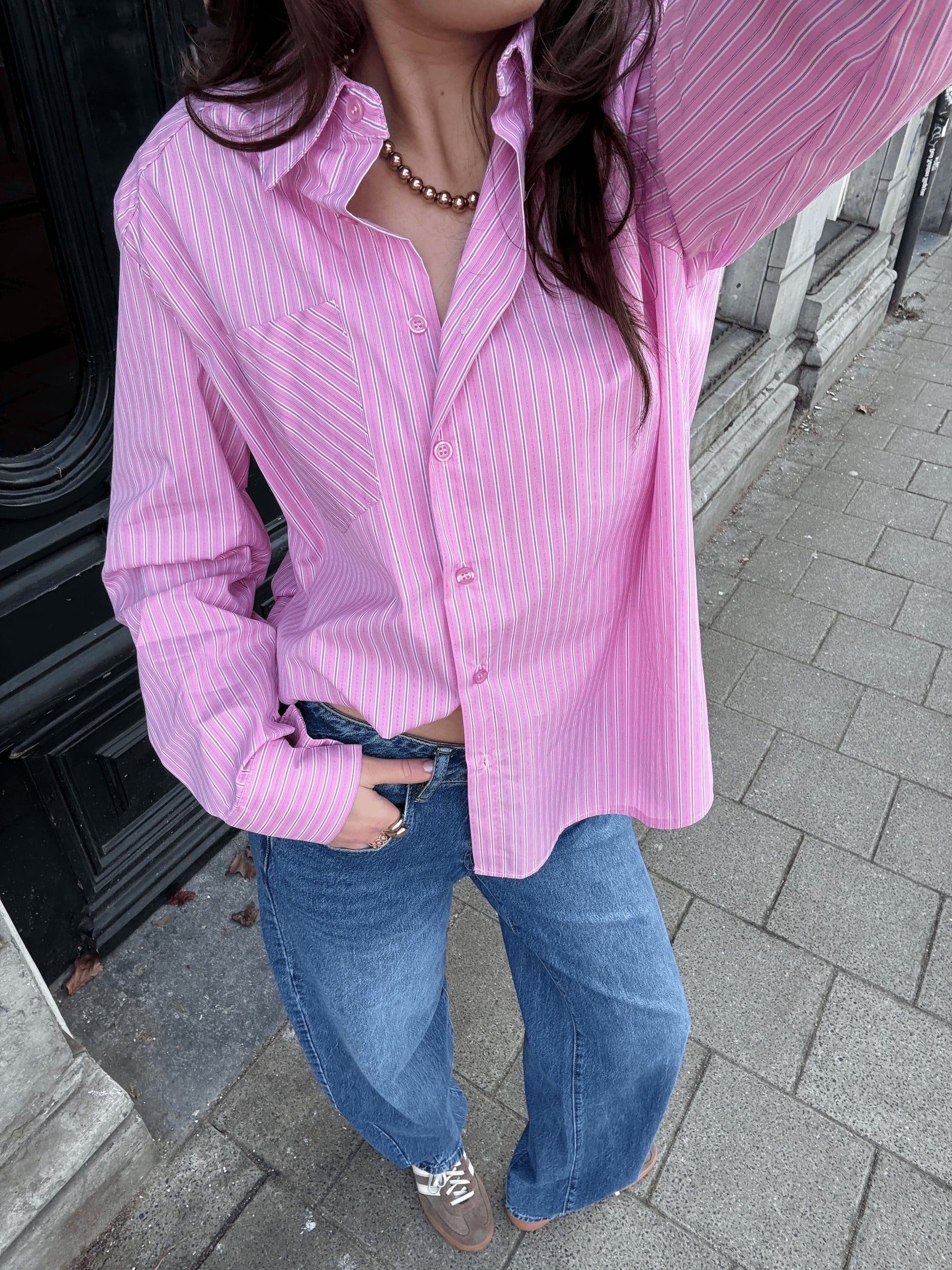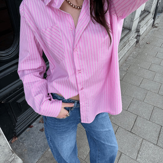 The Noah blouse is one of those pieces you'll want to add to your wardrobe immediately! A true must-have for your tall wardrobe. The pink stripe pattern gives the blouse a stylish look and makes it incredibly easy to style. Wear it closed for an effortlessly chic look or open with a top underneath for a more casual vibe.