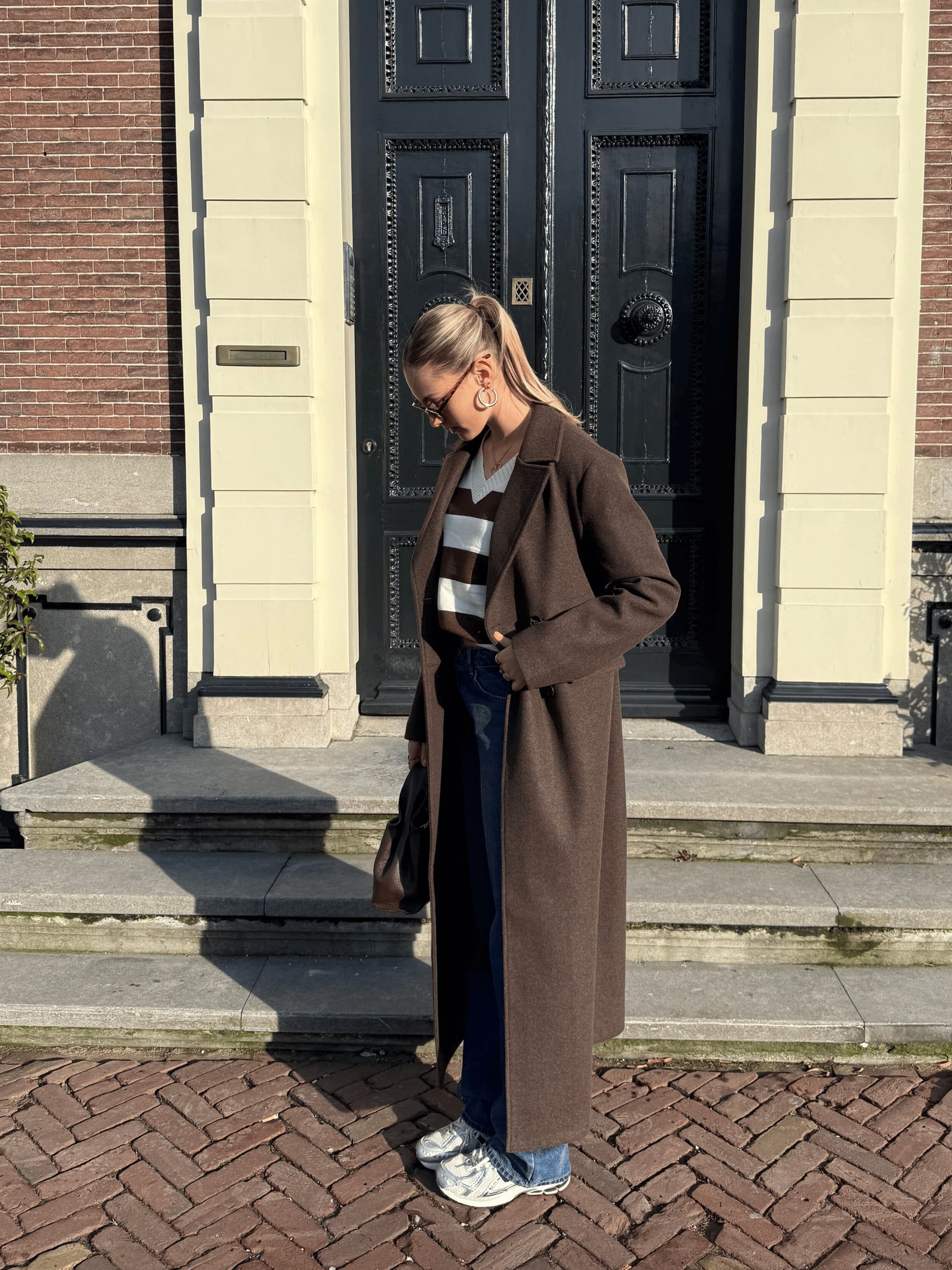 Trend alert! This long coat completes your outfit. The warm color and super soft fabric instantly give you a cozy feeling. You'll never want to take this piece off again. The coat has a comfortable, oversized fit and is extra long, both in length and sleeves—perfect for tall girls!