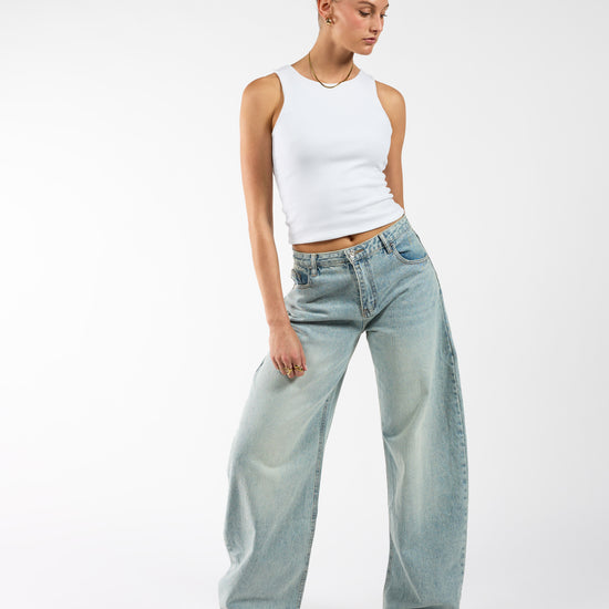 Meet our Rae Balloon Jeans in Vintage Blue : your new tall girl fave đ