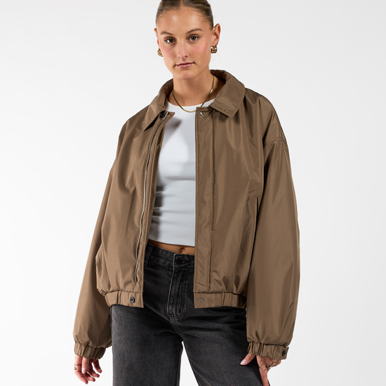 The bomber jacket you'll grab every day. This Tall Bomber Jacket is specially designed for tall girls, with extra length in the sleeves and a nicely balanced fit so it doesn't look too short. The pointed collar gives a fresh, feminine touch and the zipper has playful buttons at the top and bottom as a detail. Practical and stylish thanks to the handy pockets.