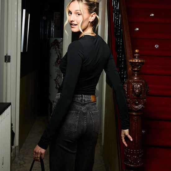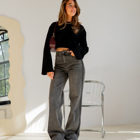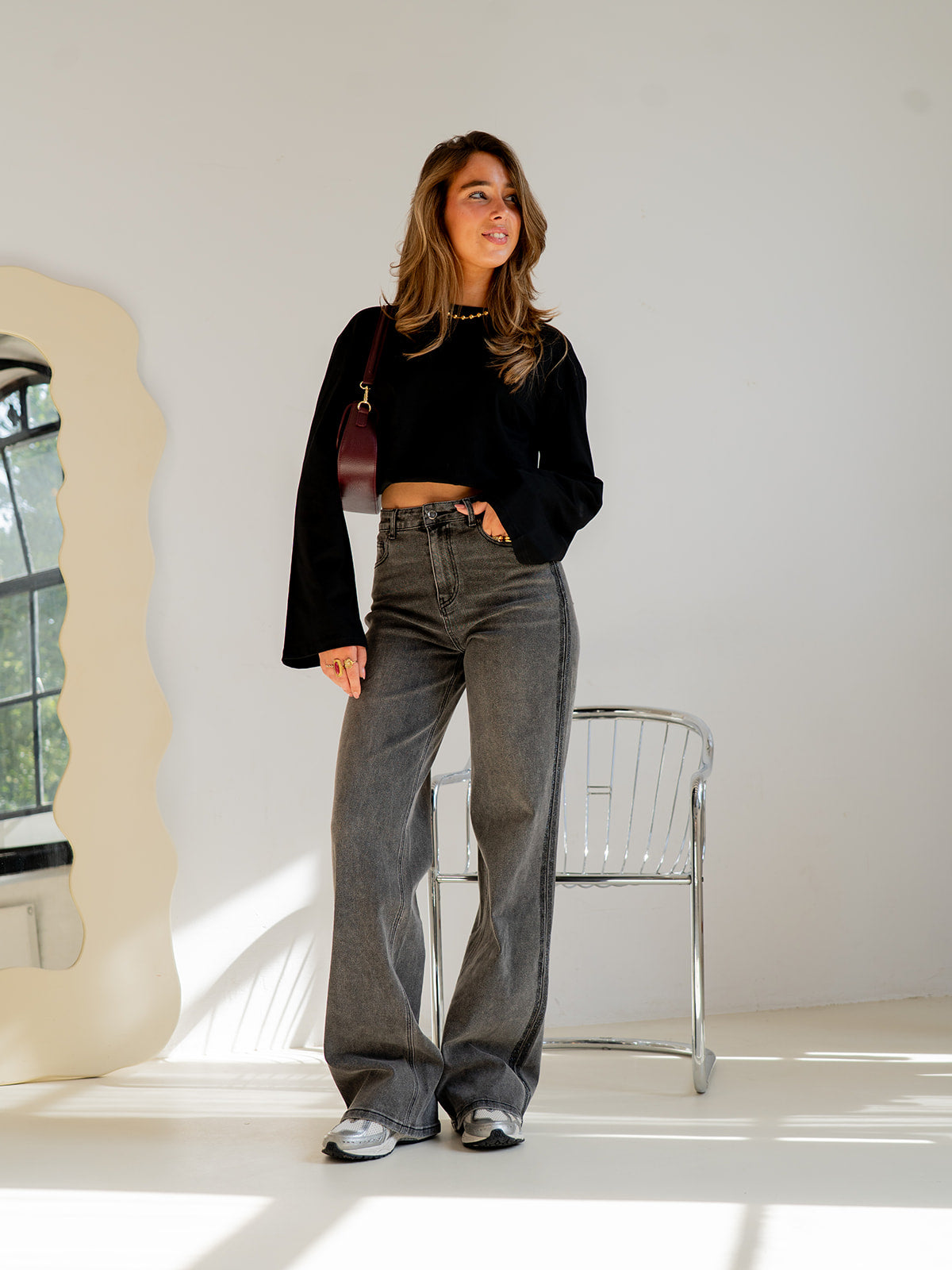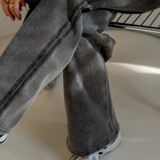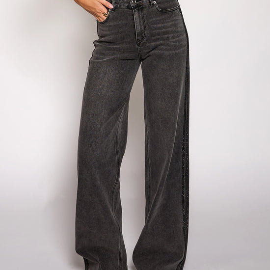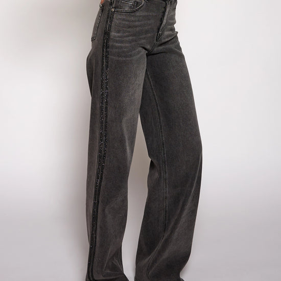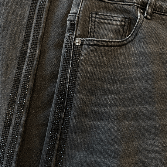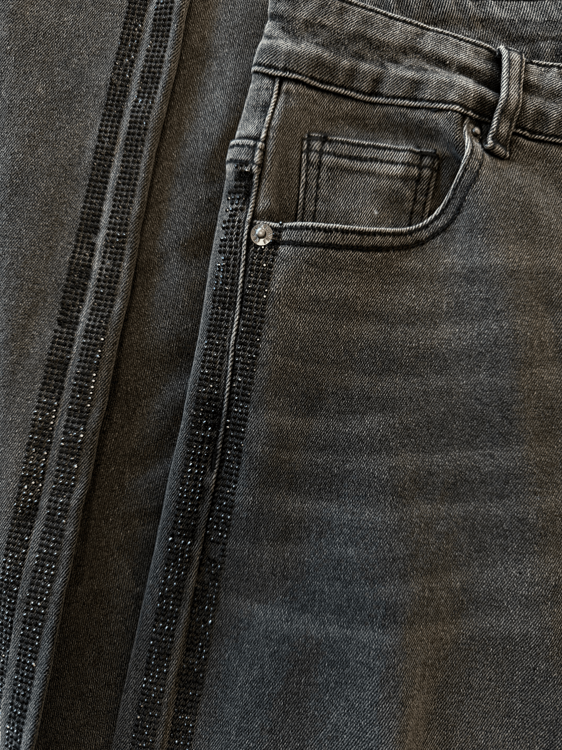 These eye-catching jeans are everything a tall woman with a sense of style needs! Designed specifically for women between 1.75m and 2.00m tall, the Sassy Super Wide Leg Jeans in stretch washed black combine ultimate comfort with a striking look. The two rhinestone stripes along the sides give these jeans a luxurious sparkle that instantly elevates your outfit.