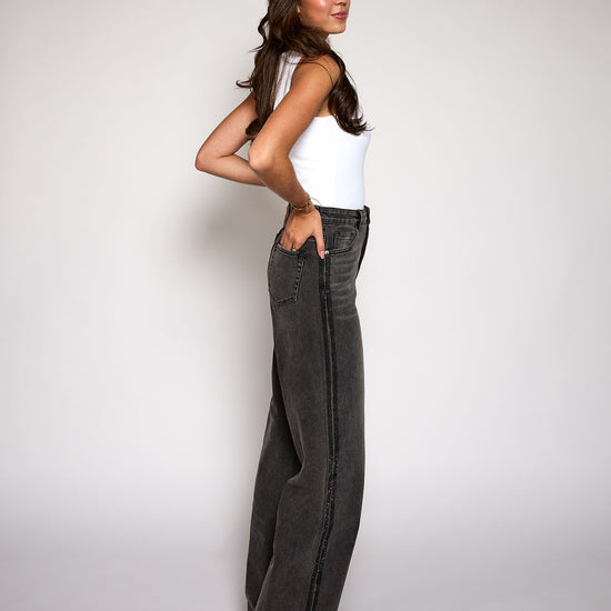 Sassy | Super Wide Leg Jeans | Diamond Stripes | Stretch | Washed Black | Tall